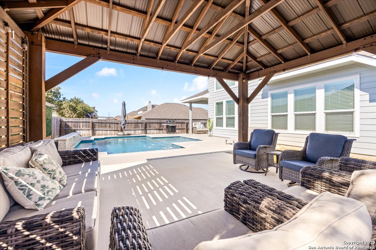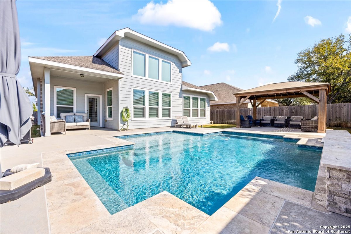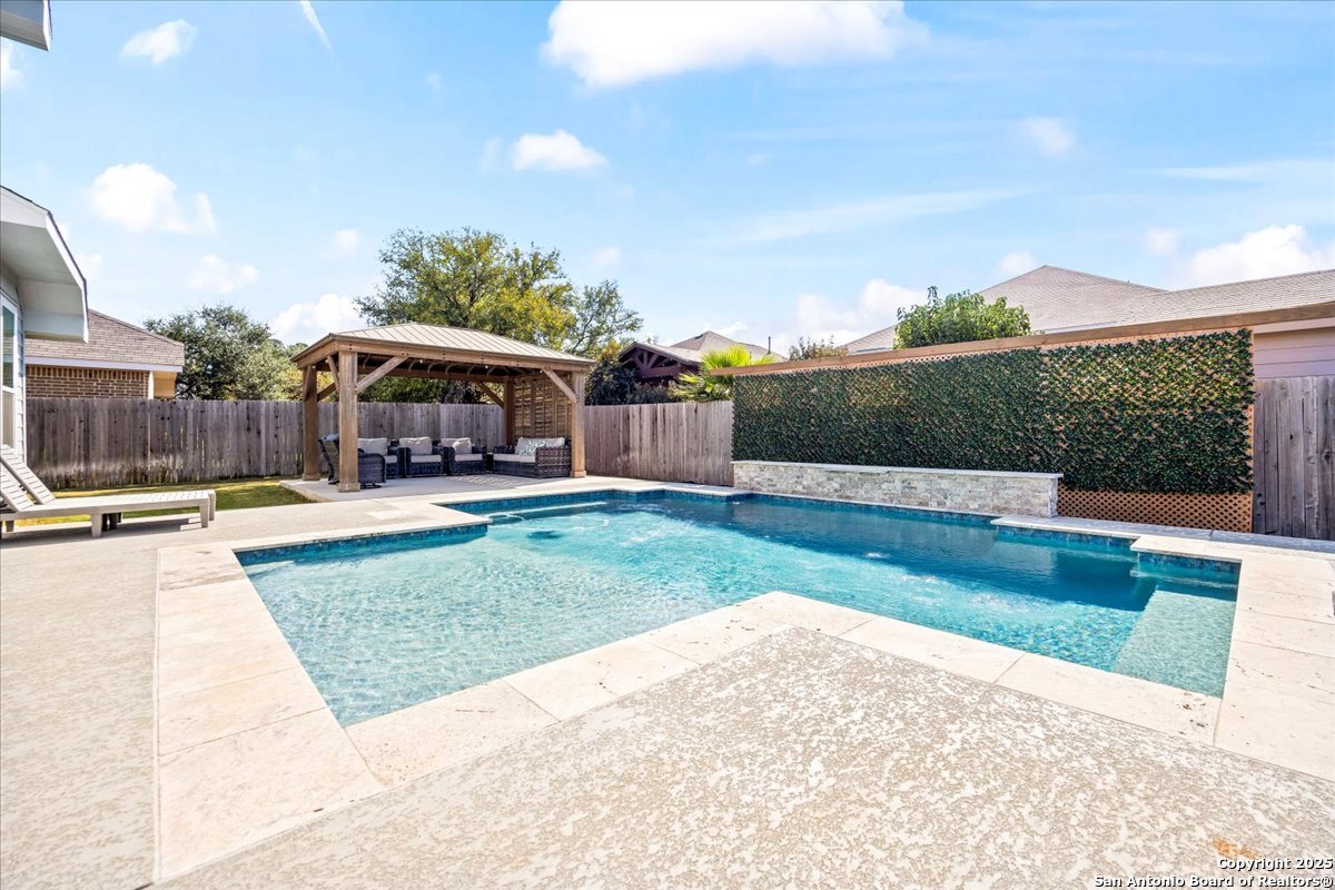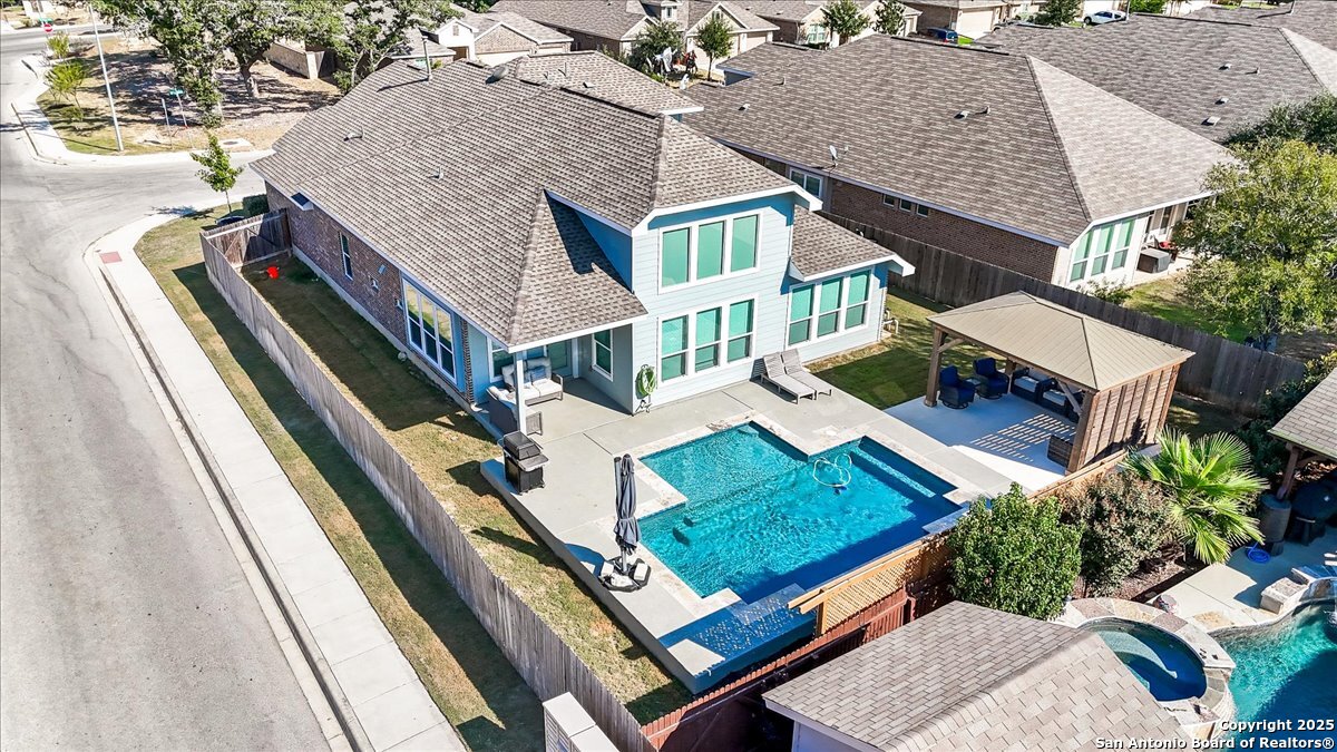 Located in Hidden Trails, this meticulously maintained 1.5-story home offers a luxurious and tranquil retreat for its residents. Featuring 4 bedrooms and 4 bathrooms, this spacious residence is perfect for families or those who love to entertain. As you step through the front entry, you'll immediately be drawn to the open-concept floor plan, designed to create a seamless flow between living spaces-perfect for entertaining. Natural light pours into the kitchen and living room through large windows, highlighting the vaulted ceilings and cozy fireplace that make this home both bright and inviting. The beautifully designed kitchen boasts quartz countertops, stainless steel appliances, and gas cooking, making it a dream for any home chef. Generous storage space can be found throughout the home, including a spacious three-car garage that offers ample room for vehicles and additional storage. The primary suite, located on the first floor, includes a large walk-in closet and a luxurious bath. Three additional bedrooms on the main level provide plenty of space for everyone in the family. Upstairs, a spacious and versatile loft area with a full bathroom makes the perfect guest or in-law suite. Step outside to your private backyard oasis, complete with an inviting pool and gazebo. Whether you're hosting summer gatherings or enjoying a quiet evening by the pool, this outdoor space is designed for relaxation and entertainment. Residents of Hidden Trails enjoy neighborhood amenities such as community pools, sports courts, a pond, and scenic walking trails-ideal for those who enjoy staying active and spending time outdoors. The HOA also hosts community events throughout the year, creating a warm and connected neighborhood atmosphere. Conveniently located near major retailers, grocery stores, local restaurants, small businesses, and top-rated schools, this home offers both luxury and convenience in one of the area's most desirable communities.