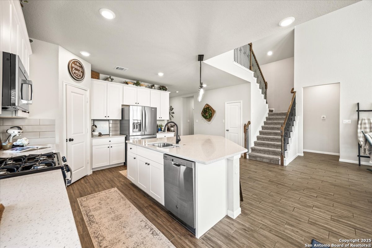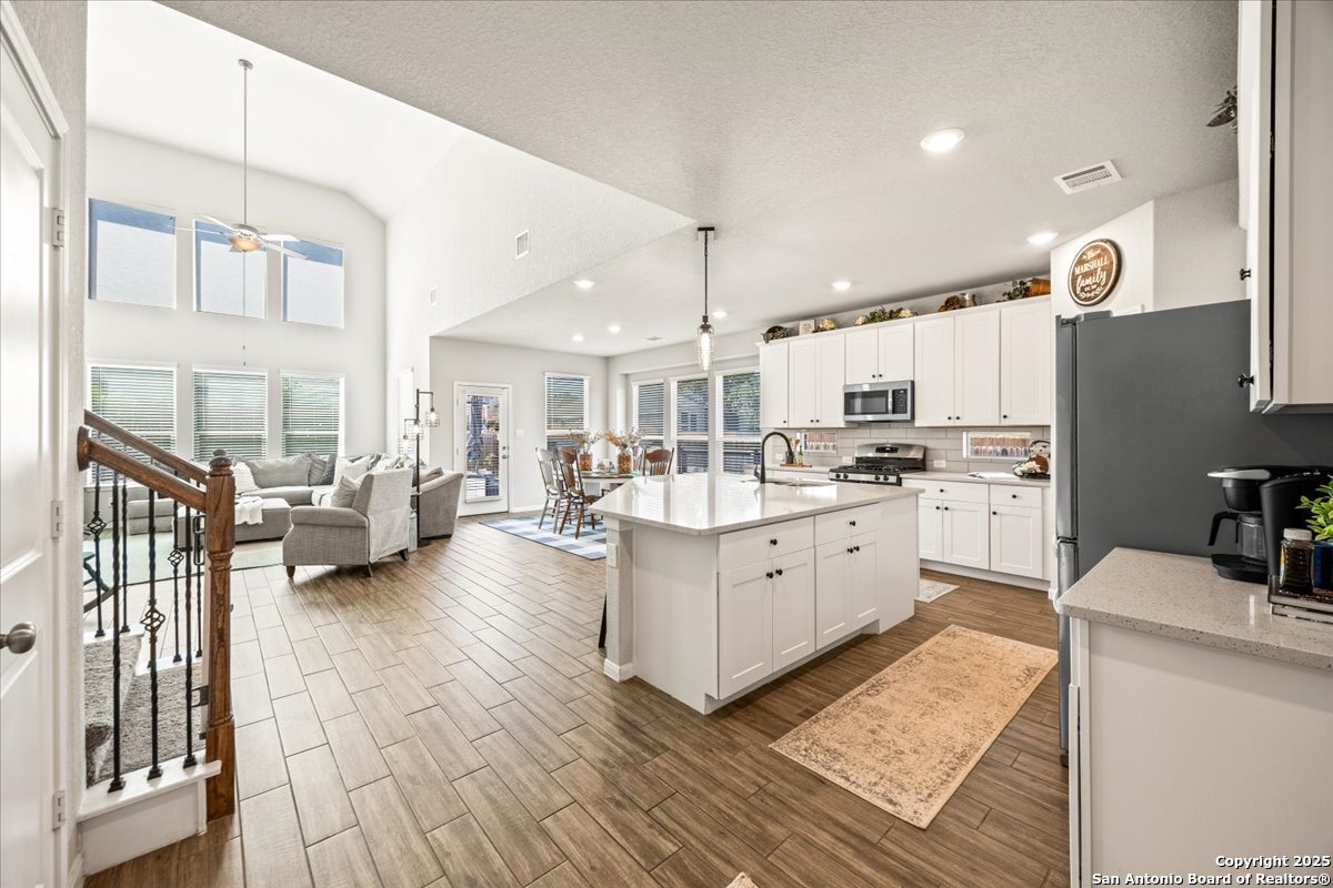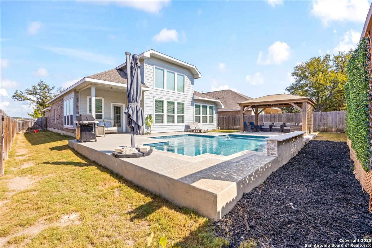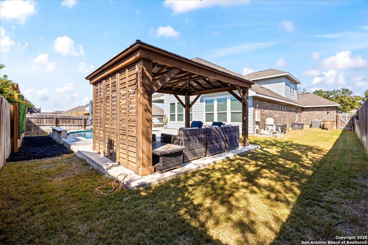 Located in Hidden Trails, this meticulously maintained 1.5-story home offers a luxurious and tranquil retreat for its residents. Featuring 4 bedrooms and 4 bathrooms, this spacious residence is perfect for families or those who love to entertain. As you step through the front entry, you'll immediately be drawn to the open-concept floor plan, designed to create a seamless flow between living spaces-perfect for entertaining. Natural light pours into the kitchen and living room through large windows, highlighting the vaulted ceilings and cozy fireplace that make this home both bright and inviting. The beautifully designed kitchen boasts quartz countertops, stainless steel appliances, and gas cooking, making it a dream for any home chef. Generous storage space can be found throughout the home, including a spacious three-car garage that offers ample room for vehicles and additional storage. The primary suite, located on the first floor, includes a large walk-in closet and a luxurious bath. Three additional bedrooms on the main level provide plenty of space for everyone in the family. Upstairs, a spacious and versatile loft area with a full bathroom makes the perfect guest or in-law suite. Step outside to your private backyard oasis, complete with an inviting pool and gazebo. Whether you're hosting summer gatherings or enjoying a quiet evening by the pool, this outdoor space is designed for relaxation and entertainment. Residents of Hidden Trails enjoy neighborhood amenities such as community pools, sports courts, a pond, and scenic walking trails-ideal for those who enjoy staying active and spending time outdoors. The HOA also hosts community events throughout the year, creating a warm and connected neighborhood atmosphere. Conveniently located near major retailers, grocery stores, local restaurants, small businesses, and top-rated schools, this home offers both luxury and convenience in one of the area's most desirable communities.