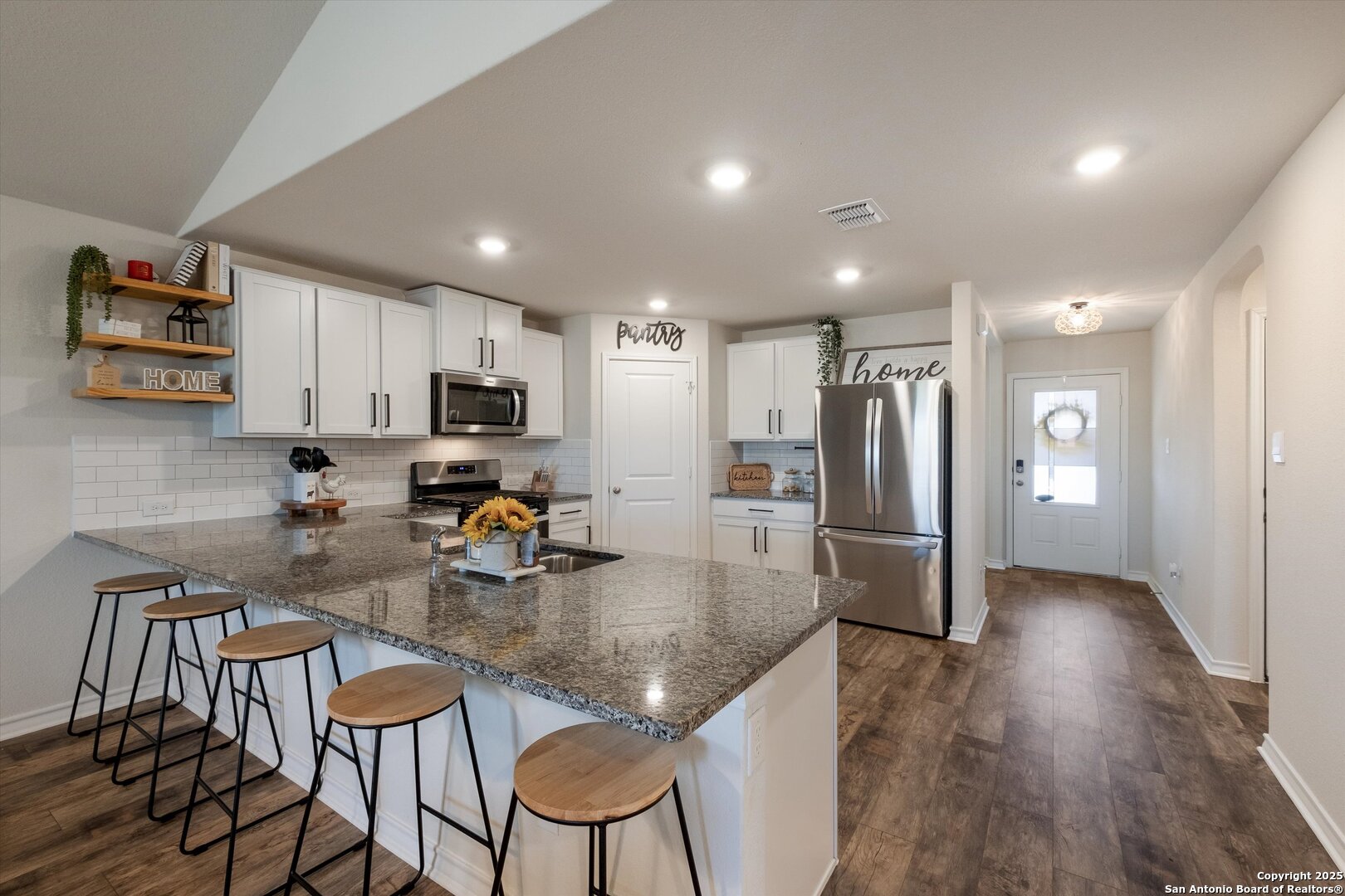 USDA ZERO DOWN PAYMENT ELIGIBLE HOME on a Greenbelt and Cul de sac! Practically new, this beautiful home offers the comforts of a serene home and lots of privacy, as it backs up to a Greenbelt area and in a cul de sac that you can see out of for miles. You will LOVE the quiet setting! Looks & feels like a model home, with its elegant and modern decor. Fabulous covered front porch and back patio. The kitchen is a dream w/stainless steel appliances and a clean, gorgeous tile backsplash! Granite countertops with plenty of cabinets. 2 living areas with a huge loft/game room area upstairs, plenty of room for everyone to enjoy causal family & friends gatherings. Beautiful vaulted ceiling in living room. Bedrooms are very spacious and have walk in closets, especially the primary bedroom closet- you will love the space! Don't miss out on making this beautiful and welcoming home yours! USDA ZERO DOWN PAYMENT for qualified applicants. Ask me about this!!