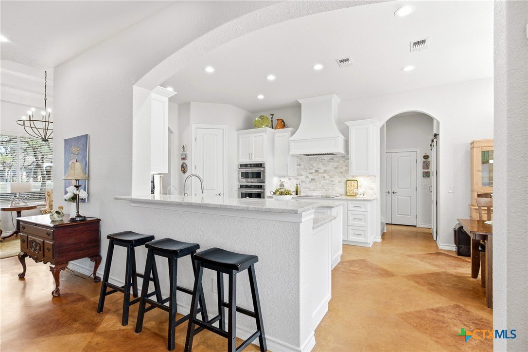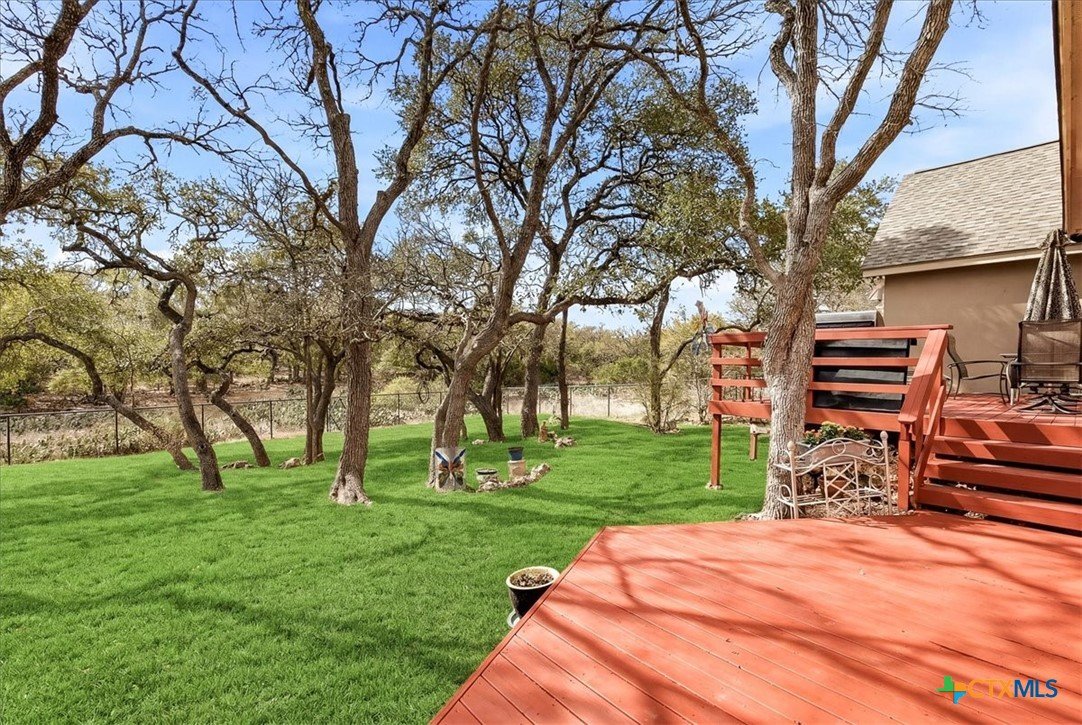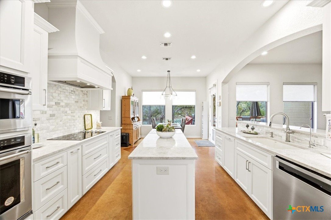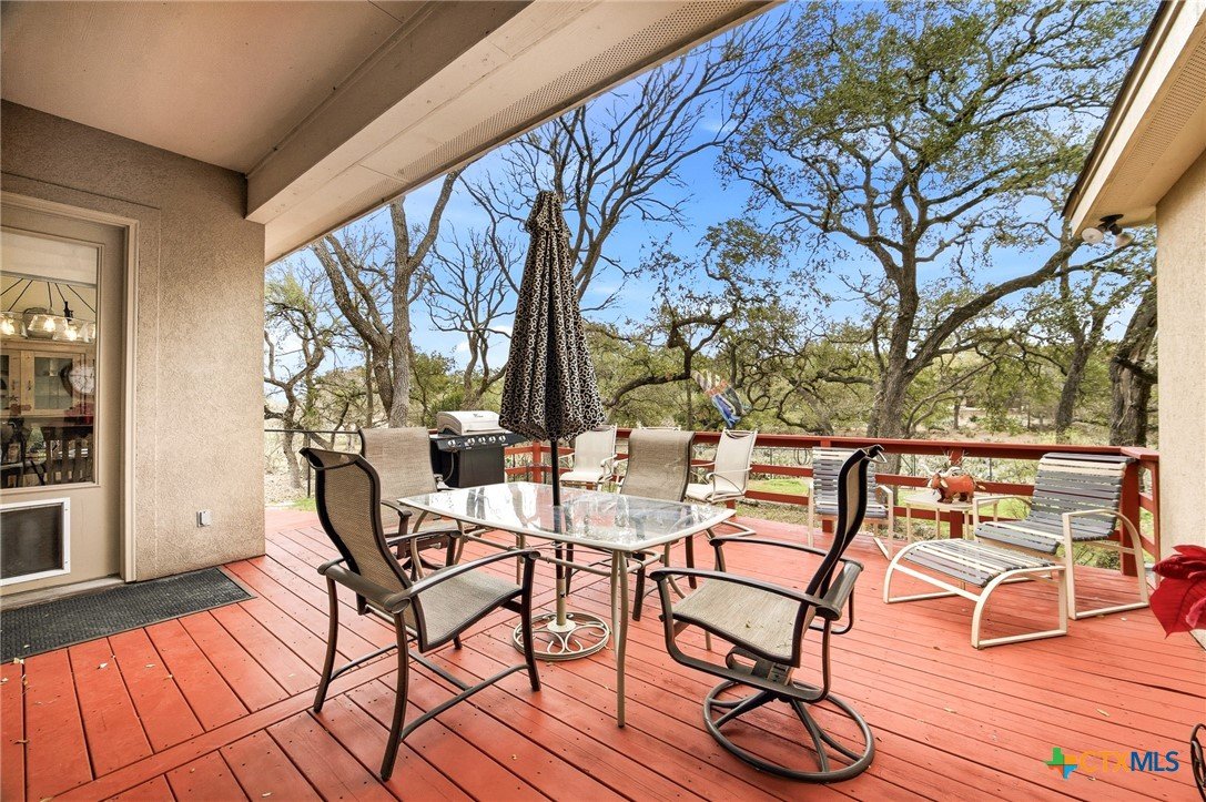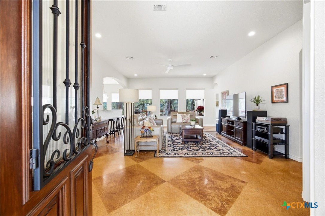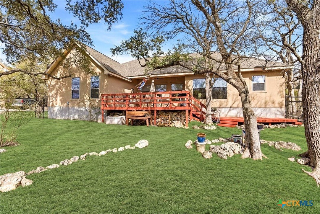 COMPLETELY RENOVATED 1.5-story home on a 1-acre wooded lot, redesigned by JM Design / Stone Masters in October 2023 with high-end finishes and major system upgrades throughout. With over $180,000 in improvements, nearly every detail has been updated, including a renovated kitchen and primary bathroom, updated systems, and a whole-house repipe for peace of mind. The open-concept floor plan features stained concrete flooring, designer lighting, and a spacious layout ideal for everyday living and entertaining. The chef’s kitchen is the centerpiece, showcasing Taj Mahal quartz countertops, soft-close cabinetry, tumbled marble backsplash, decorative vent hood, and new KitchenAid appliances. A butler’s pantry provides excellent storage and prep space. At the front of the home, the oversized office features a dramatic floor-to-ceiling Hill Country stone fireplace, ideal for a work-from-home space or flex room. The luxury primary suite includes a spa-inspired bathroom with a large walk-in shower, entry controls, instant hot water, hydroseal glass for easier cleaning, and soft-close cabinetry. The first-floor secondary bathroom also features quartz countertops and modern finishes. Additional updates include lighting, ceiling fans, closet lighting, and new blinds along the back of the home. Major upgrades include a 5-ton HVAC system (2017), AC updated in 2025, and a REME HALO in-duct air purification system installed in 2022. The roof was replaced in 2016, and the deck added in 2021. Situated on a private 1-acre wooded lot, the home offers a covered patio and spacious deck overlooking a peaceful backyard—perfect for relaxing or entertaining Located in The Crossing at Spring Creek, this fully renovated home lets you skip the time and cost of upgrades. Simply move in and enjoy. An extensive list of updates is available in the attached documents.