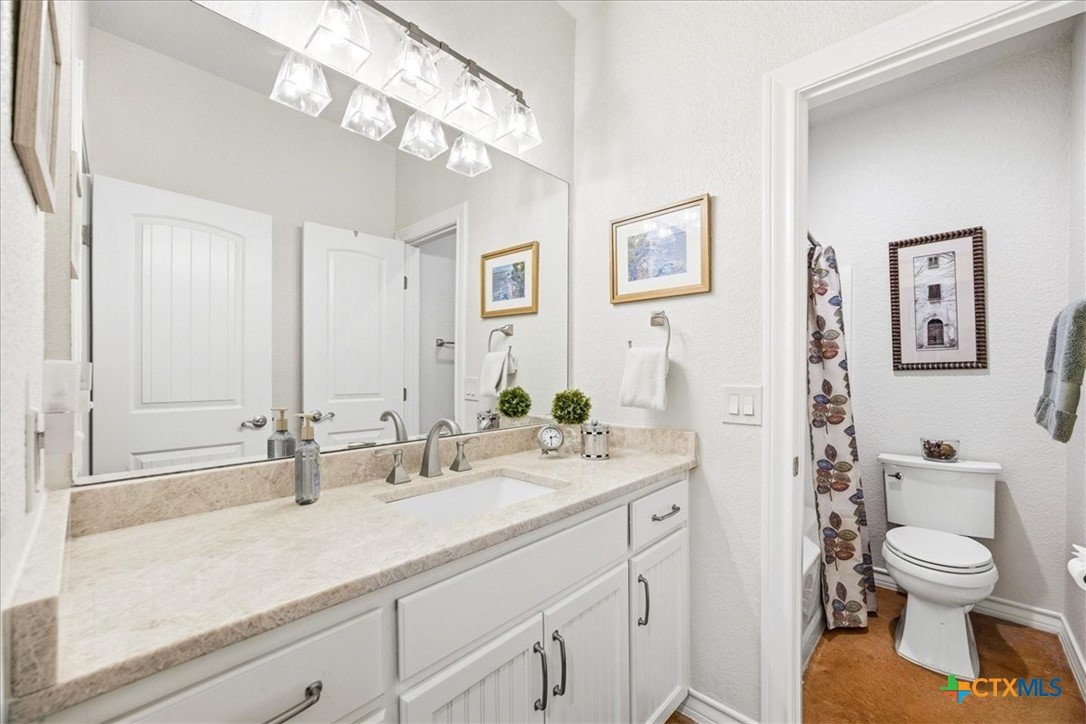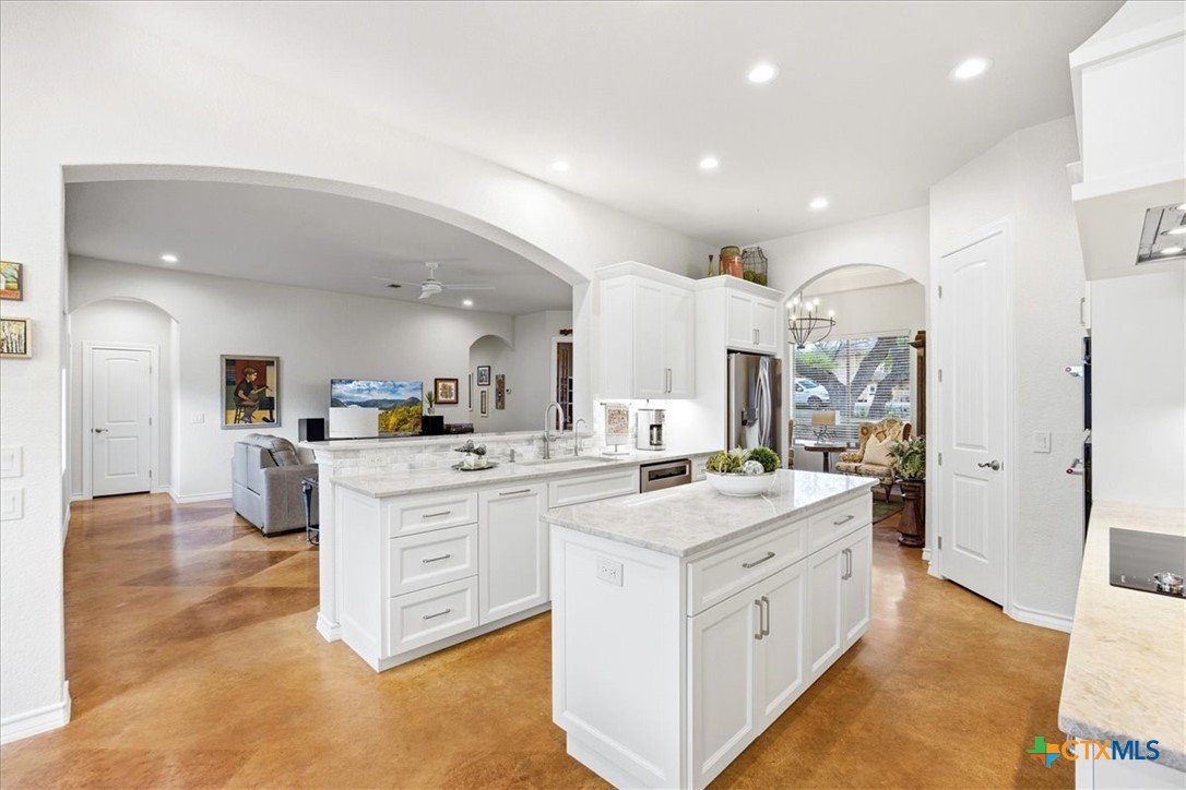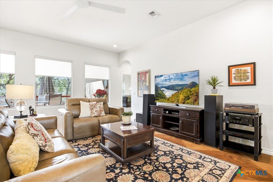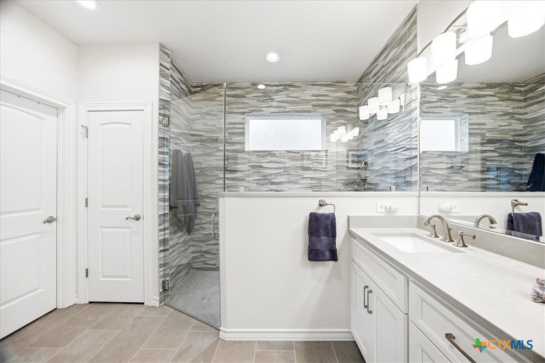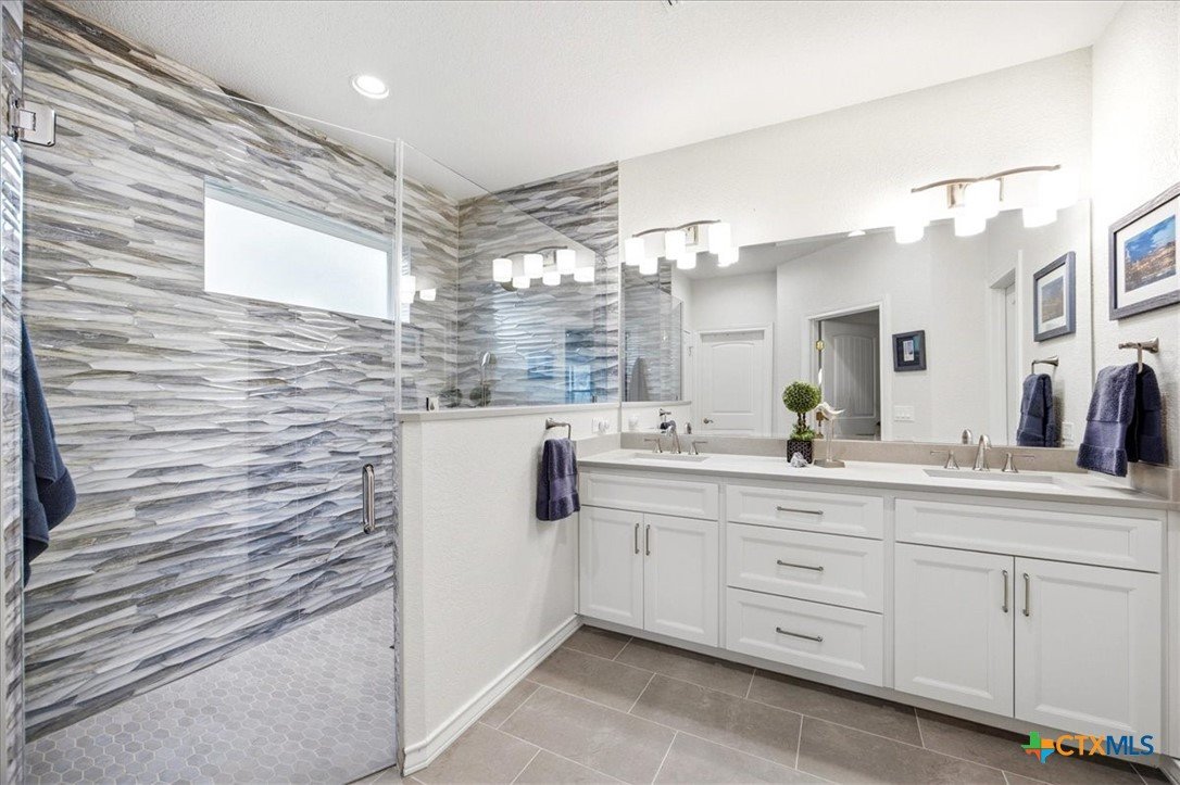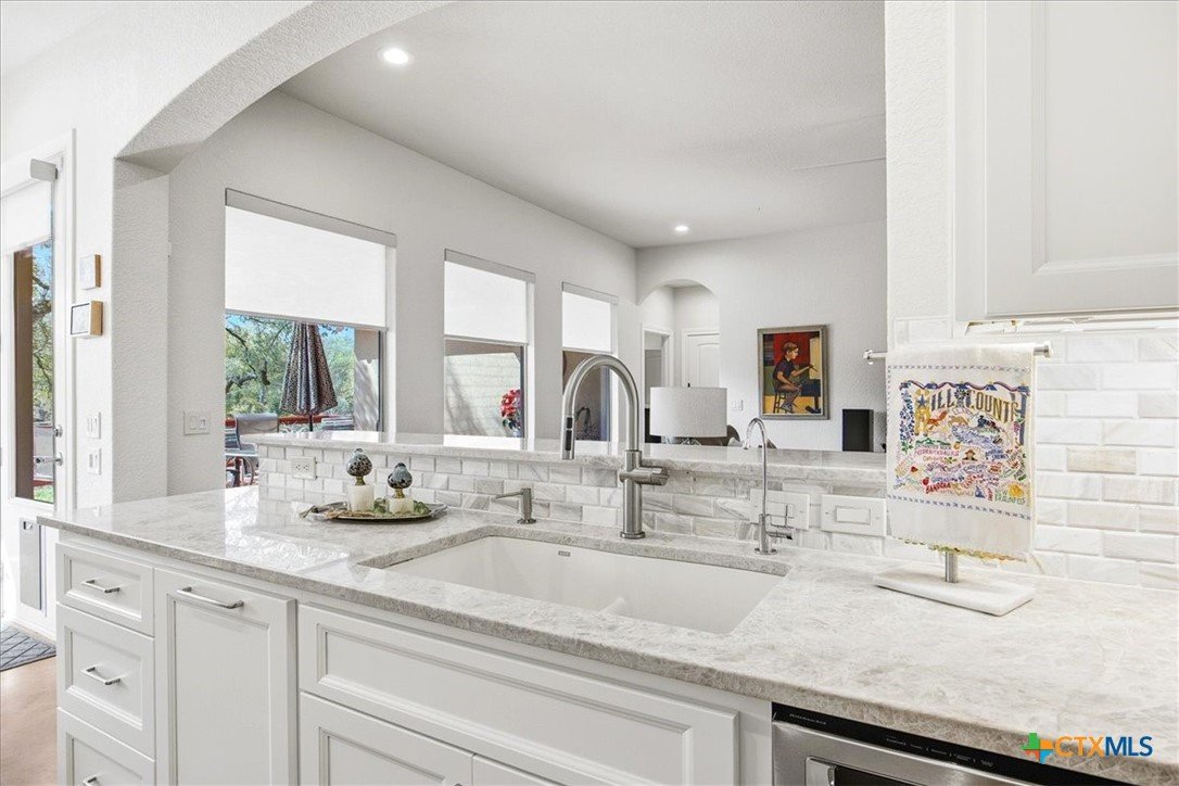 COMPLETELY RENOVATED 1.5-story home on a 1-acre wooded lot, redesigned by JM Design / Stone Masters in October 2023 with high-end finishes and major system upgrades throughout. With over $180,000 in improvements, nearly every detail has been updated, including a renovated kitchen and primary bathroom, updated systems, and a whole-house repipe for peace of mind. The open-concept floor plan features stained concrete flooring, designer lighting, and a spacious layout ideal for everyday living and entertaining. The chef’s kitchen is the centerpiece, showcasing Taj Mahal quartz countertops, soft-close cabinetry, tumbled marble backsplash, decorative vent hood, and new KitchenAid appliances. A butler’s pantry provides excellent storage and prep space. At the front of the home, the oversized office features a dramatic floor-to-ceiling Hill Country stone fireplace, ideal for a work-from-home space or flex room. The luxury primary suite includes a spa-inspired bathroom with a large walk-in shower, entry controls, instant hot water, hydroseal glass for easier cleaning, and soft-close cabinetry. The first-floor secondary bathroom also features quartz countertops and modern finishes. Additional updates include lighting, ceiling fans, closet lighting, and new blinds along the back of the home. Major upgrades include a 5-ton HVAC system (2017), AC updated in 2025, and a REME HALO in-duct air purification system installed in 2022. The roof was replaced in 2016, and the deck added in 2021. Situated on a private 1-acre wooded lot, the home offers a covered patio and spacious deck overlooking a peaceful backyard—perfect for relaxing or entertaining Located in The Crossing at Spring Creek, this fully renovated home lets you skip the time and cost of upgrades. Simply move in and enjoy. An extensive list of updates is available in the attached documents.
