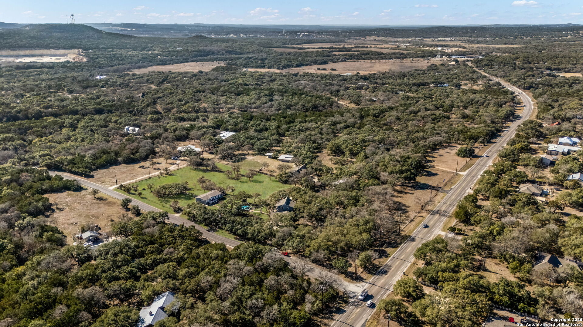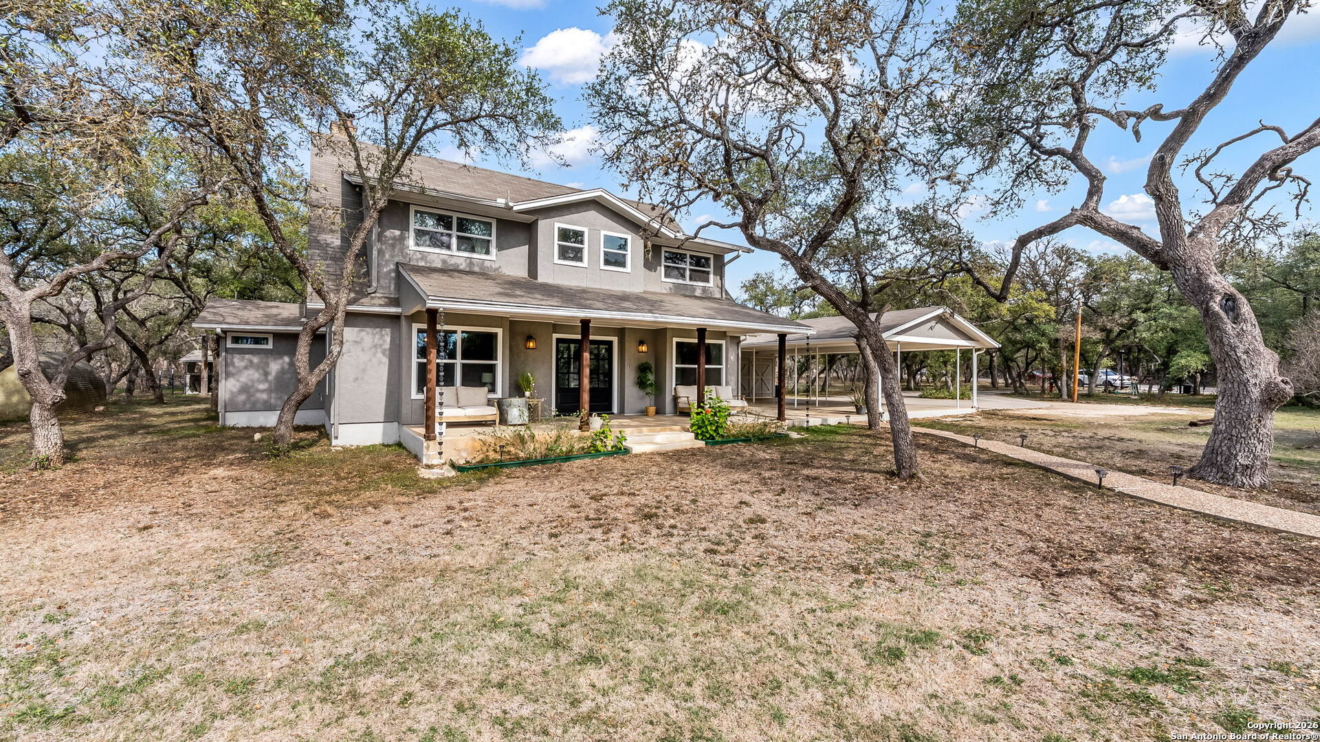 The Hill Country is calling you home!Discover refined Hill Country living in this exceptional estate nestled on a private 5-acre tract off FM 1863 in the heart of Bulverde. Offering breathtaking country views and a serene setting, this 5-bedroom, 3.5-bath residence spans 2,896 square feet and delivers the perfect balance of luxury, space, and lifestyle freedom with no restrictions. Designed for both everyday comfort and elevated entertaining, the property features a resort-style pool, expansive outdoor living areas, and endless room to enjoy the natural beauty of the Texas Hill Country. Significant recent upgrades include a new septic system, new windows, and updated HVAC units, providing peace of mind and modern efficiency. Equestrian and hobby farm amenities include a horse barn, goat pen, and chicken coop, making this a truly rare and versatile offering. A secondary residence featuring 3 bedrooms and 2 bathrooms with 1,730 square feet enhances the property's value and versatility, ideal for a private guest house, multigenerational living, or an income-producing Airbnb opportunity. Located within the highly sought-after Comal ISD, this estate offers the privacy of country living while remaining just minutes from Stone Oak shopping and dining, Bulverde and Spring Branch conveniences, and only 30 minutes from Canyon Lake and the Guadalupe River. This is a rare opportunity to own a luxury Hill Country property that seamlessly blends upscale living, thoughtful upgrades, investment potential, and unmatched lifestyle appeal.