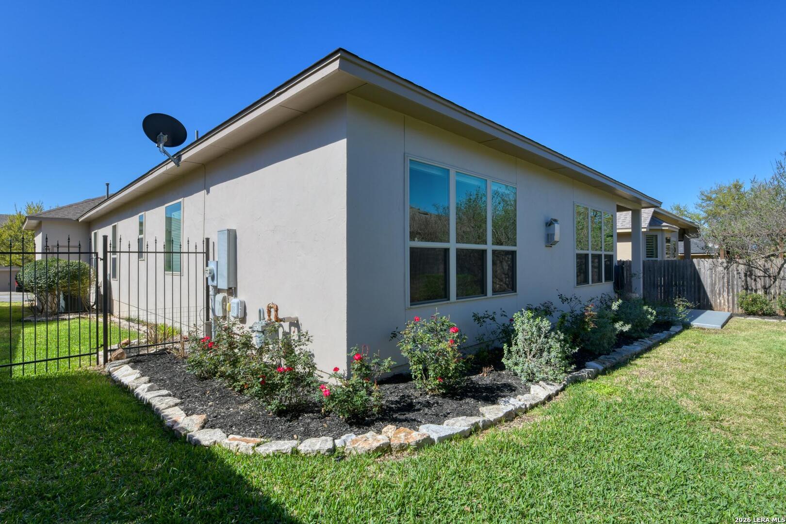 Exceptional turnkey Sitterle garden home in the gated Heights of Stone Oak. This beautifully maintained 3-bedroom, 2-bath, 1 half bath home with a dedicated study/office, is just 10 years old and offers a thoughtfully designed open floor plan. The custom island kitchen features granite countertops, stainless steel appliances, and gas cooking. Perfect for both everyday meals and entertaining, the chef's kitchen (seller is a chef!) is exceptionally functional and well-equipped. The split primary bedroom layout provides privacy, while the laundry room is conveniently located just off the kitchen. Enjoy a lovely, manageable backyard ideal for relaxing or light gardening. Additional highlights include a garage storage lift, included with the sale, adding valuable and convenient storage. This lovely home has been well cared for and is move-in ready!