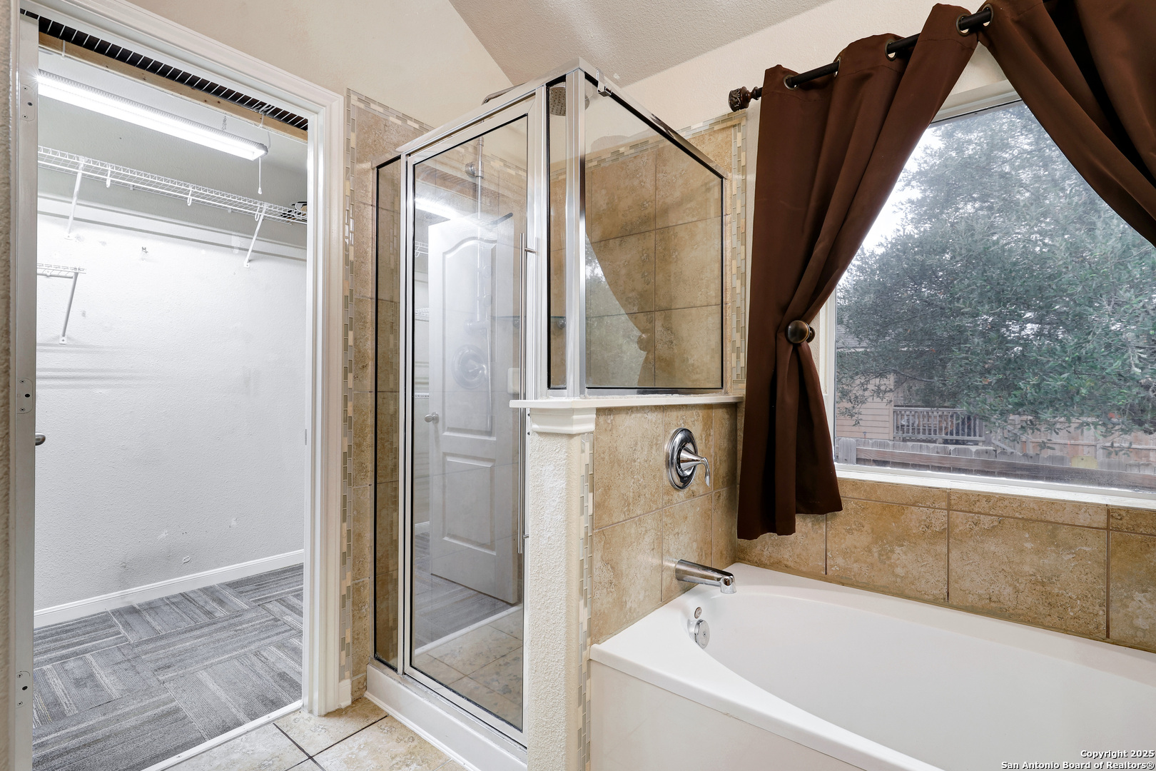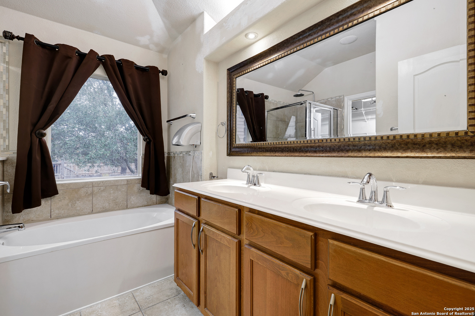 BEAUTIFUL SINGLE-STORY HOME IN THE HIGHLY DESIRABLE GATED COMMUNITY OF WORTHAM OAKS! THIS WELL-MAINTAINED, LIGHTLY LIVED-IN HOME OFFERS AN OPEN CONCEPT LAYOUT WITH APPROX. 1,624 SQ FT OF LIVING SPACE. ENJOY DESIGNER DETAILS THROUGHOUT INCLUDING ARCHED ENTRYWAYS, MODERN LIGHT FIXTURES & ELEGANT FINISHES. THE SPLIT BEDROOM PLAN FEATURES A PRIVATE MASTER RETREAT WITH A SPACIOUS BATH INCLUDING A GARDEN TUB & SEPARATE SHOWER. FORMAL DINING ROOM AND TWO EATING AREAS PROVIDE AMPLE SPACE FOR ENTERTAINING. STEP OUT TO A COVERED PATIO AND ENJOY THE LARGE BACKYARD PERFECT FOR OUTDOOR GATHERINGS. WATER SOFTENER INCLUDED. CONVENIENT LOCATION WITH EASY ACCESS TO 1604, 281 & IH-35, SHOPPING AND SCHOOLS.