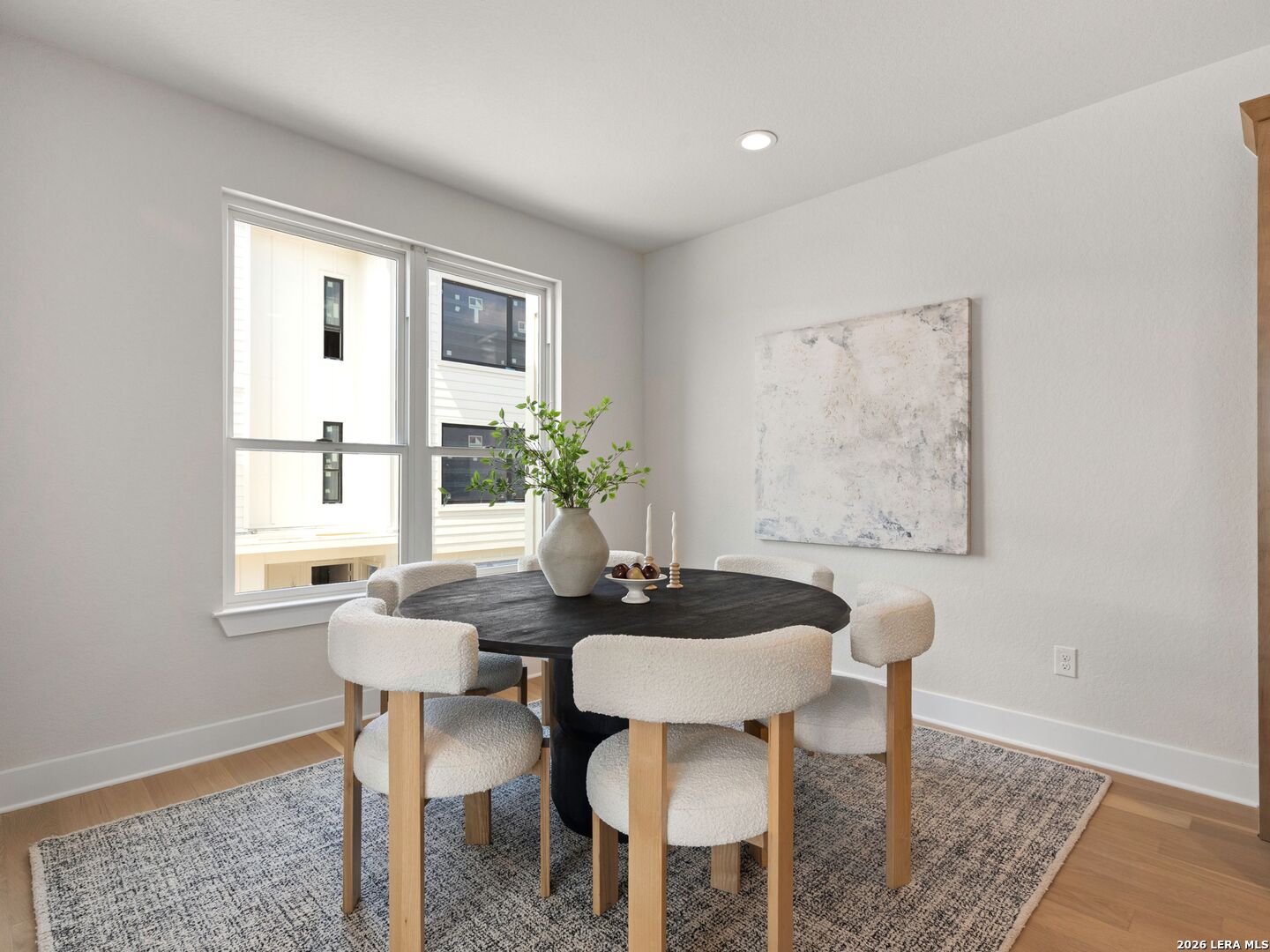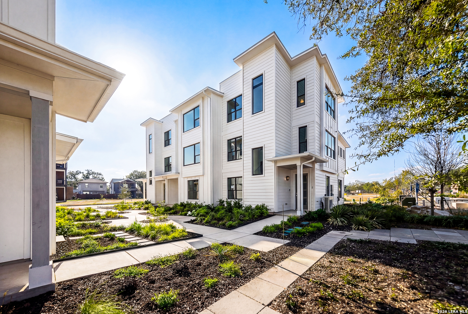 Welcome to Victoria Commons, located in the culturally rich and vibrant Lavaca Neighborhood part of Southtown. Steps from everything Downtown San Antonio has to offer, including award-winning restaurants, cocktail lounges, coffee shops, vibrant arts scene, theater and music venues, Alamodome, Hemisphere-Civic Park, Riverwalk, Blue Star Arts Complex, Museum and Mission Reach, and ease of access to major expressways. Don't miss out on the chance to experience the best of city living in this truly exceptional home. Experience the Granada floor plan, a seamless blend of contemporary design and everyday comfort. The entry level features a private en-suite bedroom with its own entrance perfect for guests or a dedicated home office, plus a convenient two-car garage. An open-concept main floor centers on a bright living area that flows into the dining and kitchen. The kitchen features quartz countertops, a generous island, tasteful backsplash, gas cooking, custom cabinetry, and a pantry. The primary suite offers a tranquil retreat with a dual-vanity bath, walk-in shower, and a generously sized closet. A versatile third level hosts a spacious loft ideal for a movie room or home gym, plus a third bedroom and full bath. Thoughtful design, abundant upgrades, and energy-efficient, low-maintenance features make everyday living effortless. Images for representation purposes.