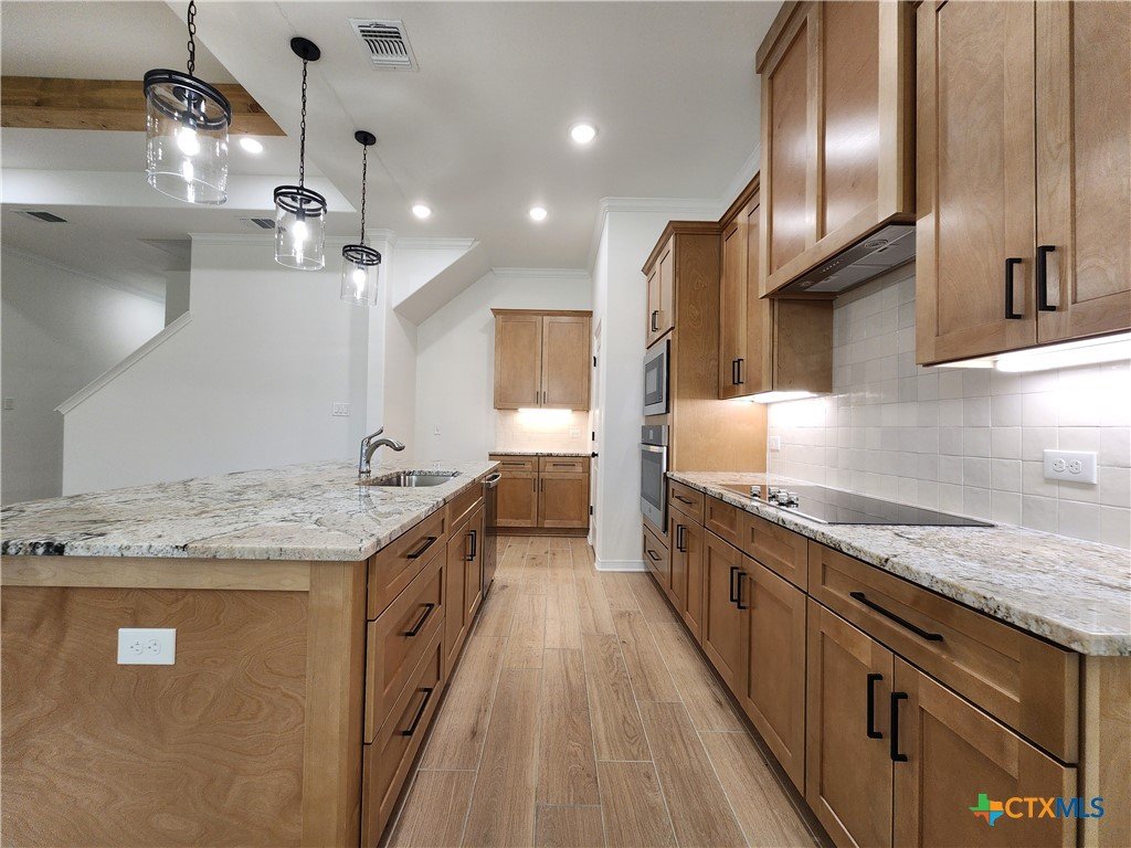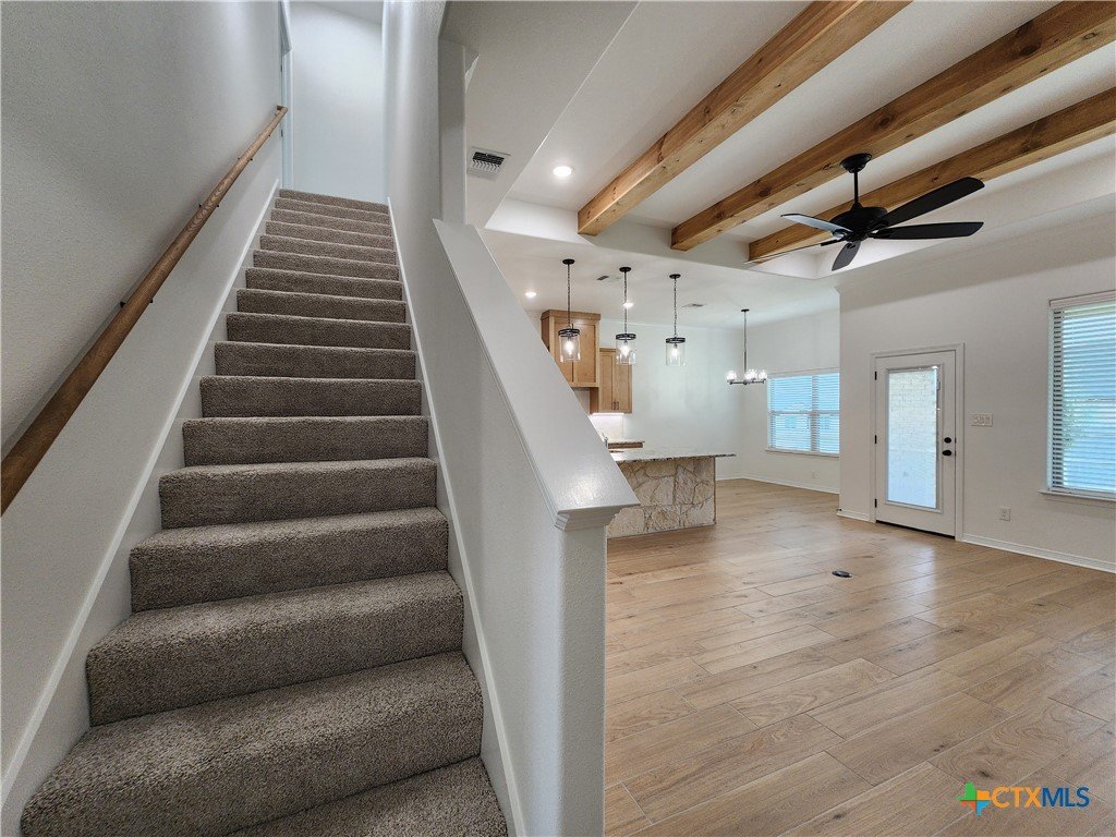 The Andice – A beautifully crafted 4-bedroom, 3-bath home offering a versatile layout designed for both privacy and open living. Downstairs features 3 bedrooms and 2 baths, while the upstairs includes the 4th bedroom, 3rd bath, and an additional living area—perfect for a game room, media room, or private retreat. The home is designed with top-tier finishes throughout, including custom soft-close cabinetry and built-in GE Profile appliances in the kitchen, creating a sleek and functional space. Spray foam insulation ensures maximum comfort and energy efficiency year-round. Three Creeks is conveniently located near the I-14/I-35 corridor, Stillhouse Hollow Lake, the charming Village of Salado, and popular Belton ISD schools.
