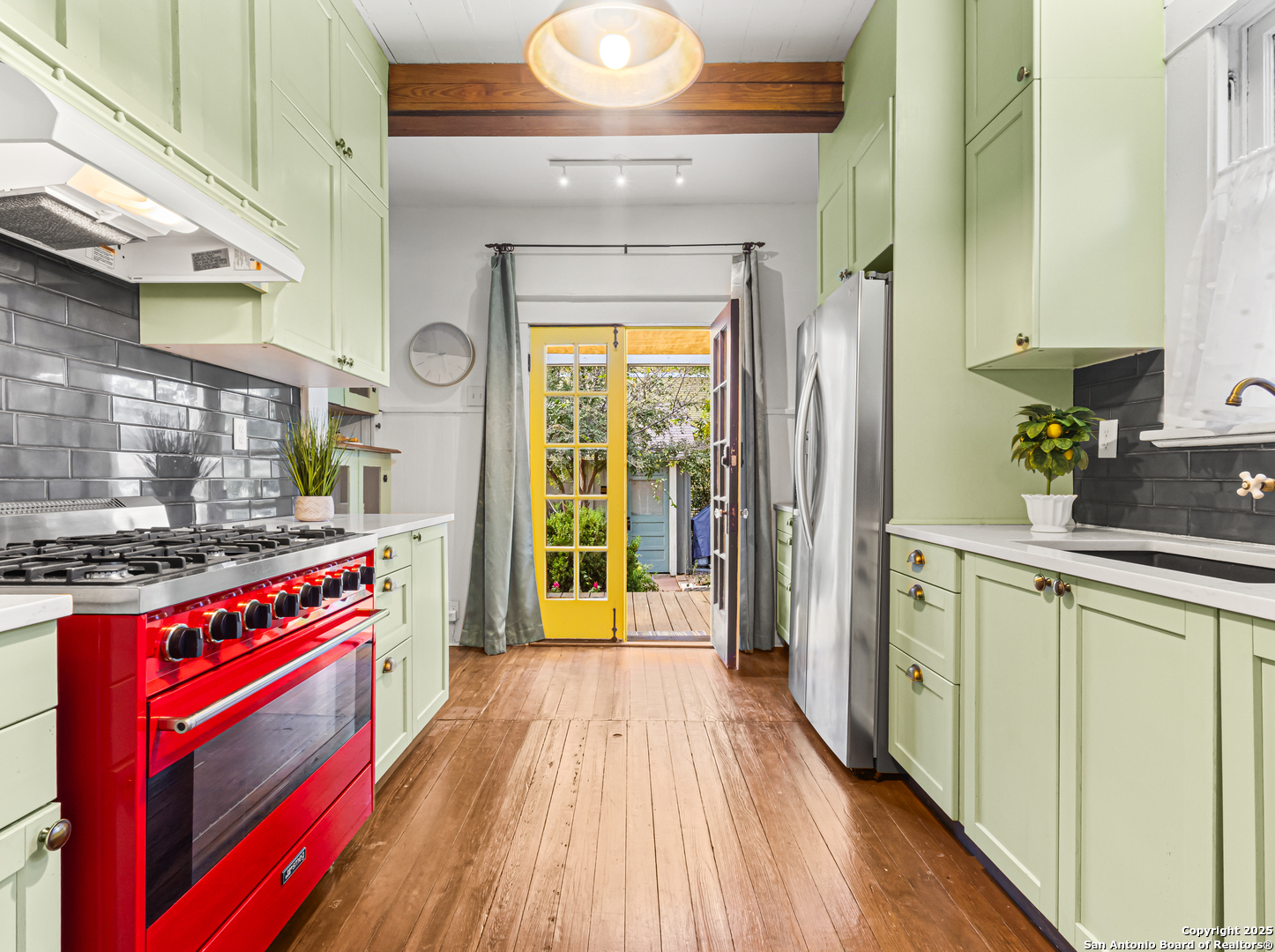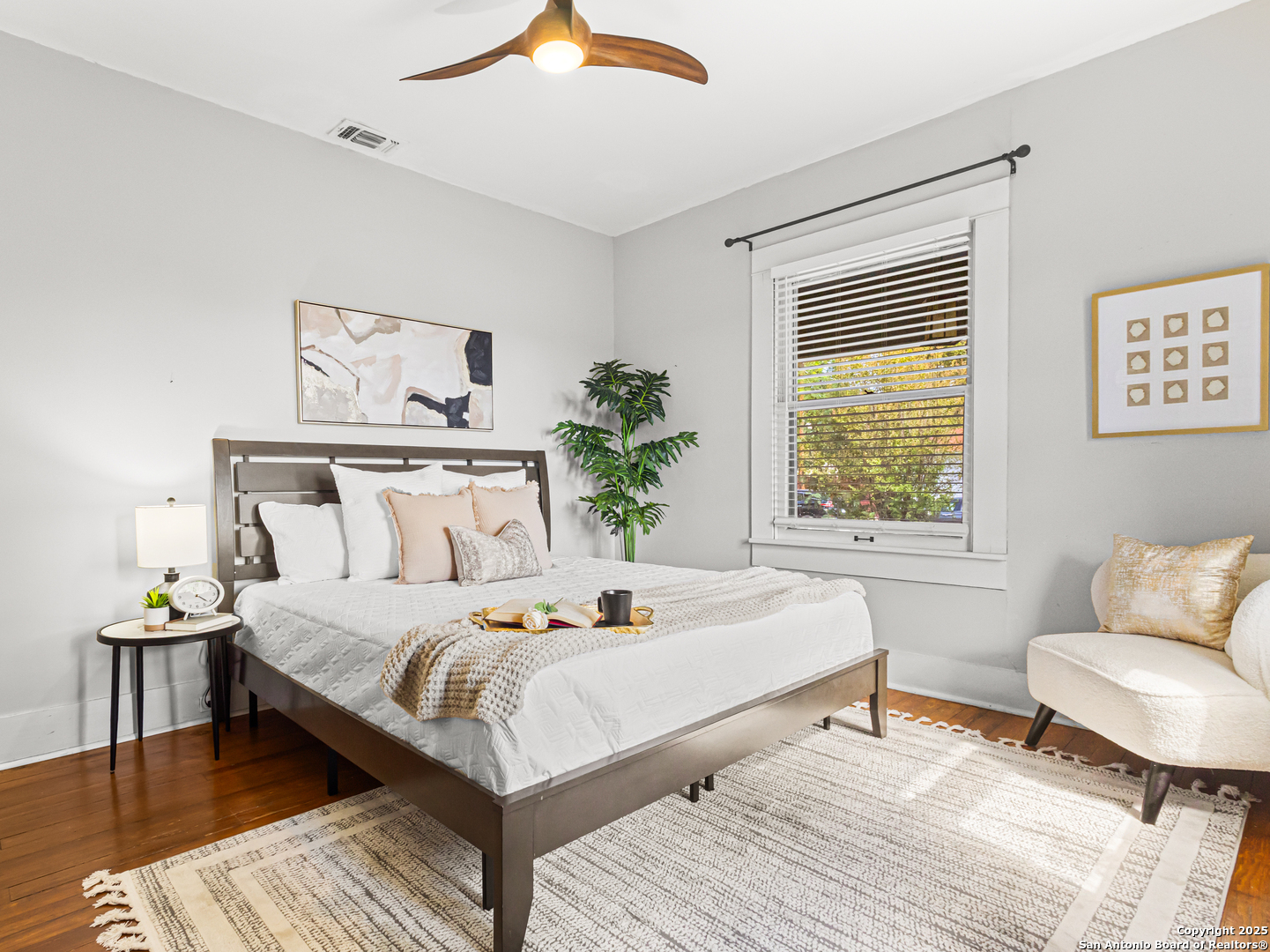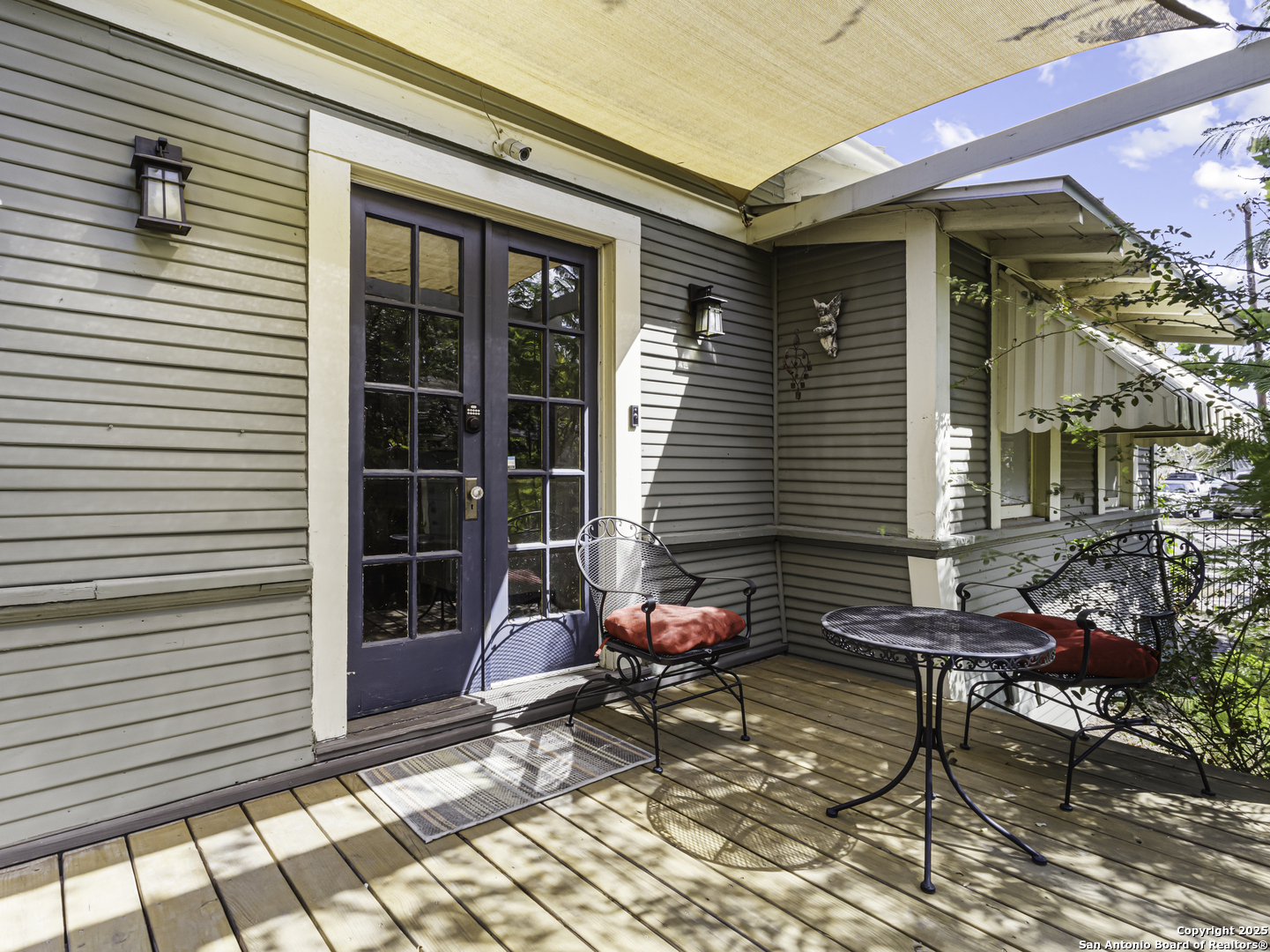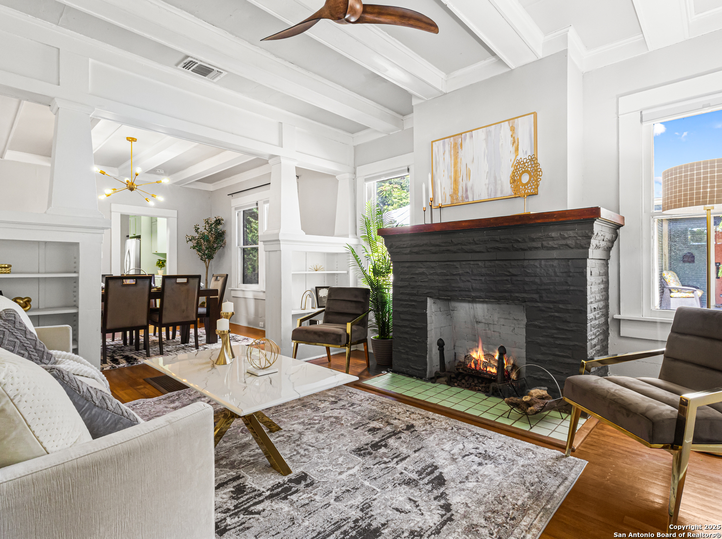 Located in the heart of San Antonio's treasured King William Historic District, 545 Wickes is a beautifully restored 1915 Craftsman cottage that blends classic charm with thoughtful, modern updates. Just steps from the Riverwalk, this home offers the perfect balance of history, culture, and urban convenience. From the curb, you'll notice its timeless lines, freshly painted exterior, and the gleam of a new standing seam metal roof. Inside, the warmth of the home welcomes you immediately - high ceilings, original architectural details, and a layout that feels both intimate and airy. The kitchen is a showstopper! A striking red SMEG Portofino gas range anchors the space, paired with a paneled Bosch dishwasher that blends seamlessly into custom cabinetry. Whether you're a home chef or a collector of beautiful spaces, this kitchen delivers. Both bedrooms are generously sized, and the two full baths have been updated with a respect for the home's period character. Behind the scenes, the work has already been done: a newer high-efficiency HVAC heat pump system, updated electrical and plumbing, and recent foundation leveling provide peace of mind. Out back, you'll find a one-car garage and a gated parking pad with a motorized entry-rare perks in a neighborhood where every square foot counts. 545 Wickes is a rare opportunity to own a piece of San Antonio history-updated for today, but with its soul perfectly intact. NOTE: Be sure to also explore 539 Wickes next door - a sister Craftsman home also available for sale. Together, they present a unique opportunity in one of the city's most storied neighborhoods. ALSO: This property has five years remaining on a transferable historical tax credit!