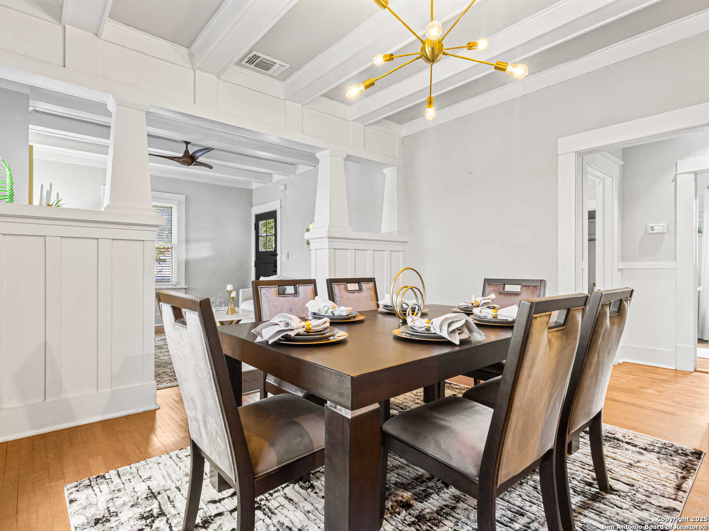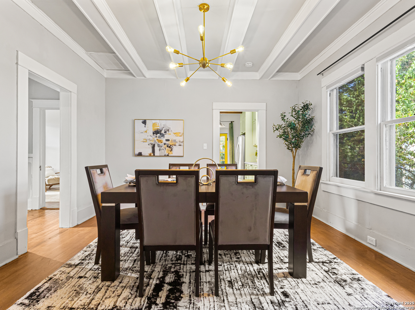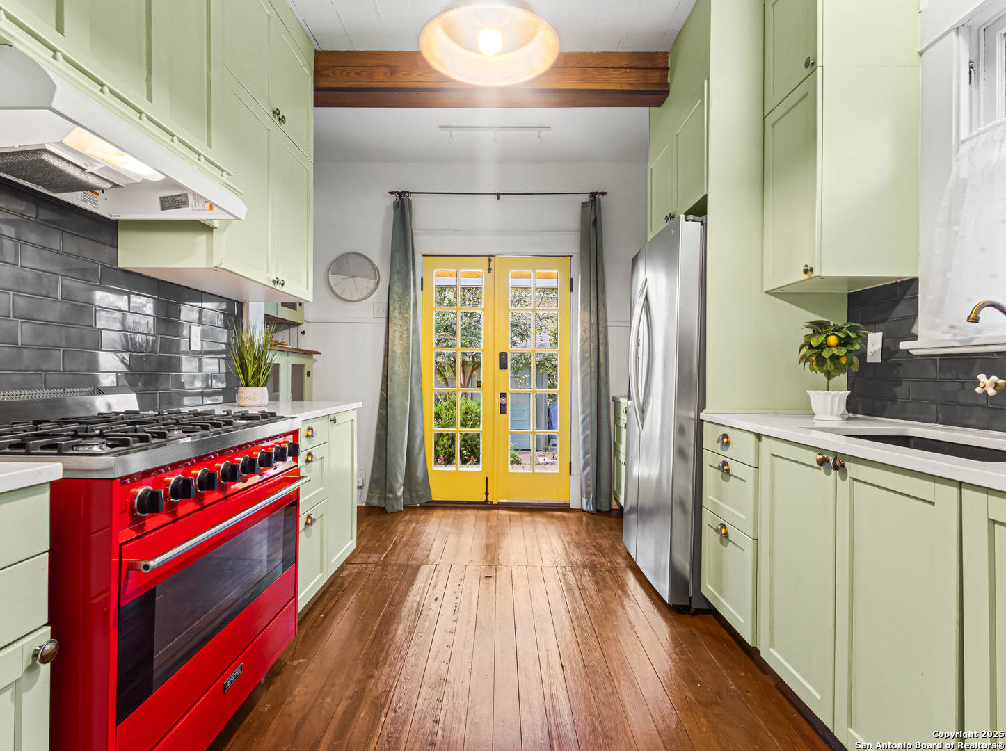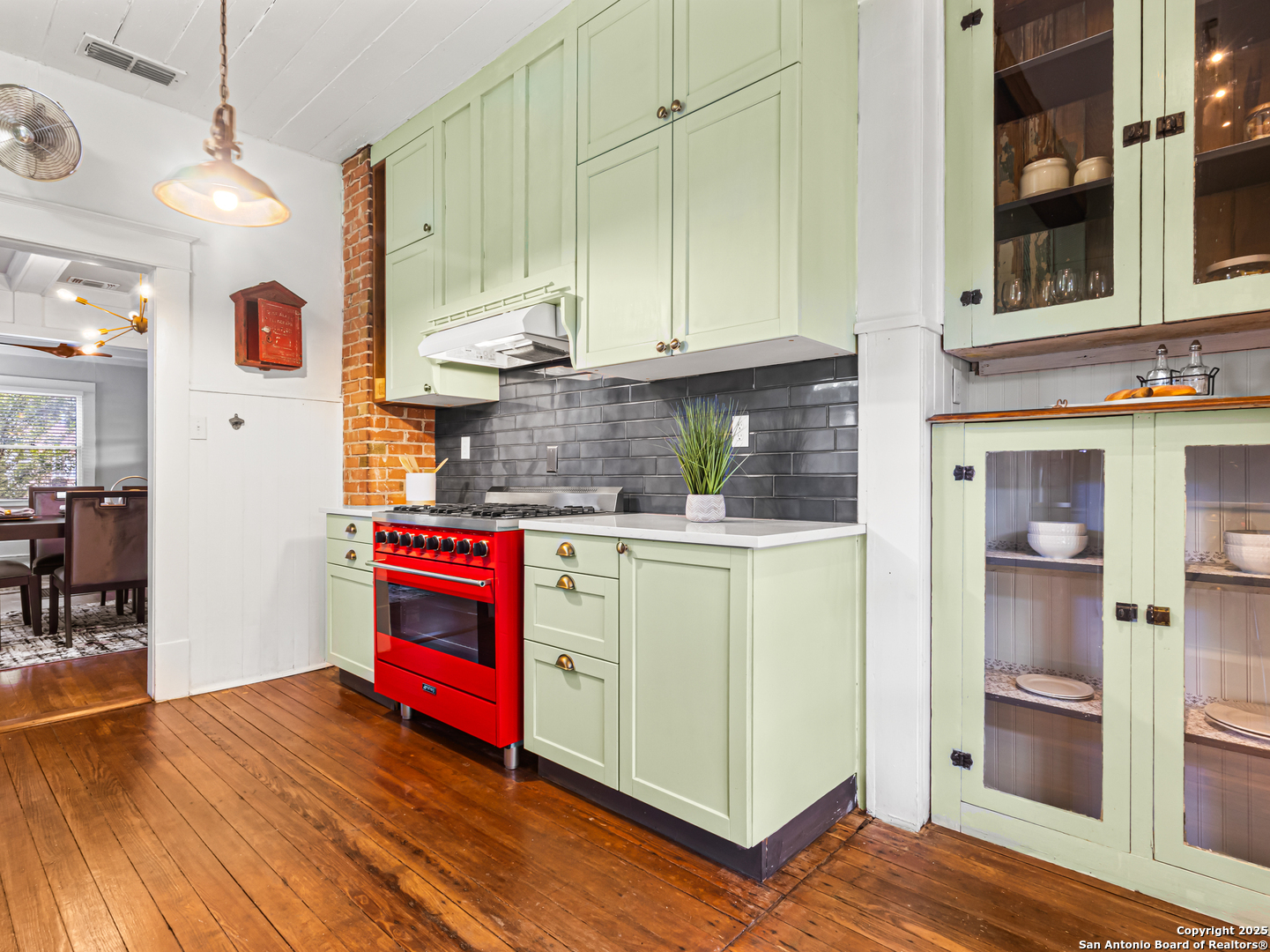 Located in the heart of San Antonio's treasured King William Historic District, 545 Wickes is a beautifully restored 1915 Craftsman cottage that blends classic charm with thoughtful, modern updates. Just steps from the Riverwalk, this home offers the perfect balance of history, culture, and urban convenience. From the curb, you'll notice its timeless lines, freshly painted exterior, and the gleam of a new standing seam metal roof. Inside, the warmth of the home welcomes you immediately - high ceilings, original architectural details, and a layout that feels both intimate and airy. The kitchen is a showstopper! A striking red SMEG Portofino gas range anchors the space, paired with a paneled Bosch dishwasher that blends seamlessly into custom cabinetry. Whether you're a home chef or a collector of beautiful spaces, this kitchen delivers. Both bedrooms are generously sized, and the two full baths have been updated with a respect for the home's period character. Behind the scenes, the work has already been done: a newer high-efficiency HVAC heat pump system, updated electrical and plumbing, and recent foundation leveling provide peace of mind. Out back, you'll find a one-car garage and a gated parking pad with a motorized entry-rare perks in a neighborhood where every square foot counts. 545 Wickes is a rare opportunity to own a piece of San Antonio history-updated for today, but with its soul perfectly intact. NOTE: Be sure to also explore 539 Wickes next door - a sister Craftsman home also available for sale. Together, they present a unique opportunity in one of the city's most storied neighborhoods. ALSO: This property has five years remaining on a transferable historical tax credit!