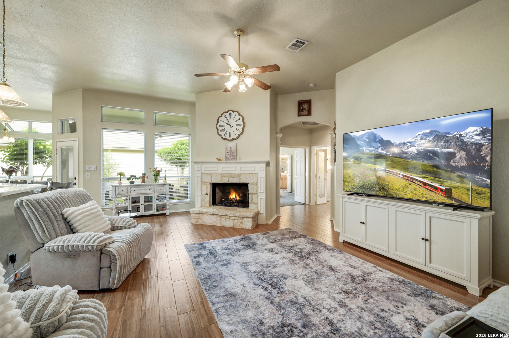 **Open House Sat 4/18/2026 11-2****Redefined living in Hollywood Park Set within the exclusive enclave of The Gardens of Hollywood Park, this sophisticated garden home offers a seamless blend of elegance, comfort, and effortless living. Designed with intention, the open-concept floor plan creates a natural flow between living spaces-ideal for both intimate gatherings and upscale entertaining. At the heart of the home, the chef's kitchen impresses with expansive solid surface countertops, an oversized island, and a generous walk-in pantry-perfectly suited for both everyday convenience and elevated hosting. Gas-ready connections provide the option for a true culinary experience. The owner's suite is a private retreat, featuring soaring ceilings, a spacious walk-in closet, and a well-appointed bath designed for relaxation. A secondary suite with its own full bath offers refined accommodations for guests, while a versatile third space provides flexibility for a private study, additional bedroom, or curated workspace. Beyond the home, residents enjoy a tranquil, park-like setting with scenic walking trails, mature greenery, and the quiet charm of native wildlife. Golf cart-friendly streets enhance the ease of living, while nearby dining just beyond the gated rear entrance adds a layer of everyday convenience. Ideally positioned near Hwy 281 and Loop 1604, this residence offers both seclusion and accessibility-an increasingly rare combination.