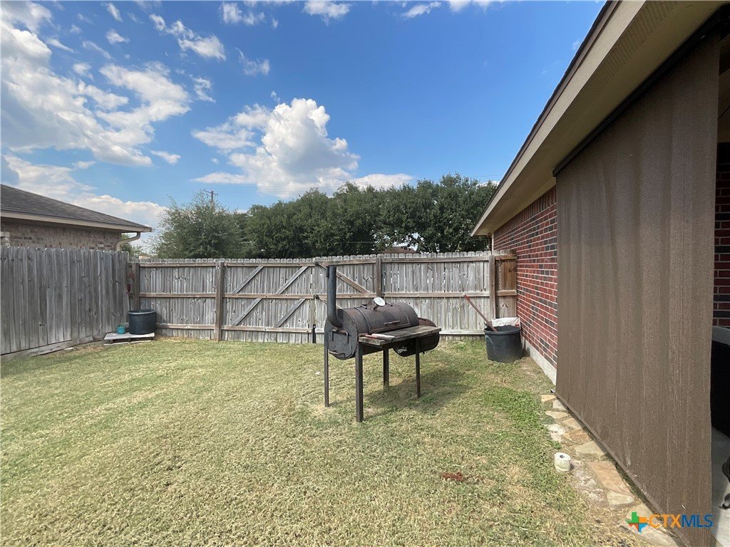 Welcome to Quail Creek! This charming 3-bedroom, 2-bath brick home, built in 2014, combines modern comfort with an unbeatable location. Nestled on a spacious .28-acre lot, the property features a large fenced backyard—perfect for entertaining, pets, or simply enjoying the outdoors. A covered back patio extends your living space, while the separate utility room adds everyday convenience. Inside, the primary suite boasts two walk-in closets and a private bath, offering plenty of storage and relaxation. The home is all electric, part of a Municipal Utility District, and located within the Aloe Elementary attendance zone. Situated in the desirable Quail Creek Subdivision, this home offers quick access to Loop 463, Highway 77, Highway 59, and Coleto Creek, keeping you close to shopping, schools, restaurants, and entertainment. Don’t miss your chance to own this well-kept home in a sought-after neighborhood!