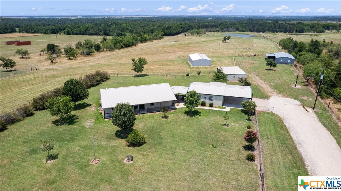 ACCEPTING OFFERS THROUGH TUESDAY, AUGUST 5 2025 BY 5:00 PM. Own your own piece of heaven located within 50 minutes to the new Samsung plant and within 30 minutes to Temple, within an hour of Bryan and a little over an hour to Austin, Georgetown, and College Station. Panaramic views with gorgeous sunrises and sunsets! Bring your horses! Meticulously maintained property! Adorable home with beautiful tile flooring throughout, also a wonderful walk through kitchen with eating bar! Walk through the breezeway to the detached garage and enjoy the constant breeze while relaxing with a beverage while overlooking the property. The garage is much more than your typical garage. It has a partial kitchen with a sink, refrigerator, full bathroom with shower and an area for a small workshop. The 3rd bathroom is in the garage. The washer and dryer is also located in the garage. The property features a 5-stall metal sided barn with corral, can be 6 if added another gate; 4-stall metal sided implement shed; 2-stall (oversized) metal implement shed; and a small metal shed in back part of property where previous owner had goats. Upgrades since purchased property - HVAC unit replaced July 2025 with a new Carrier outside condenser and upstairs air handler, water heater replaced in house 2024, risers added to sewage and draned, new field fences in front of house and along implement shed and new barbed wire along top of all fences on property. Wonderful large pond! You can't get any better than this with country living at it's best! And enjoy the wide open sky at night! "Preferred Lender" offering a free 1/0 buydown!