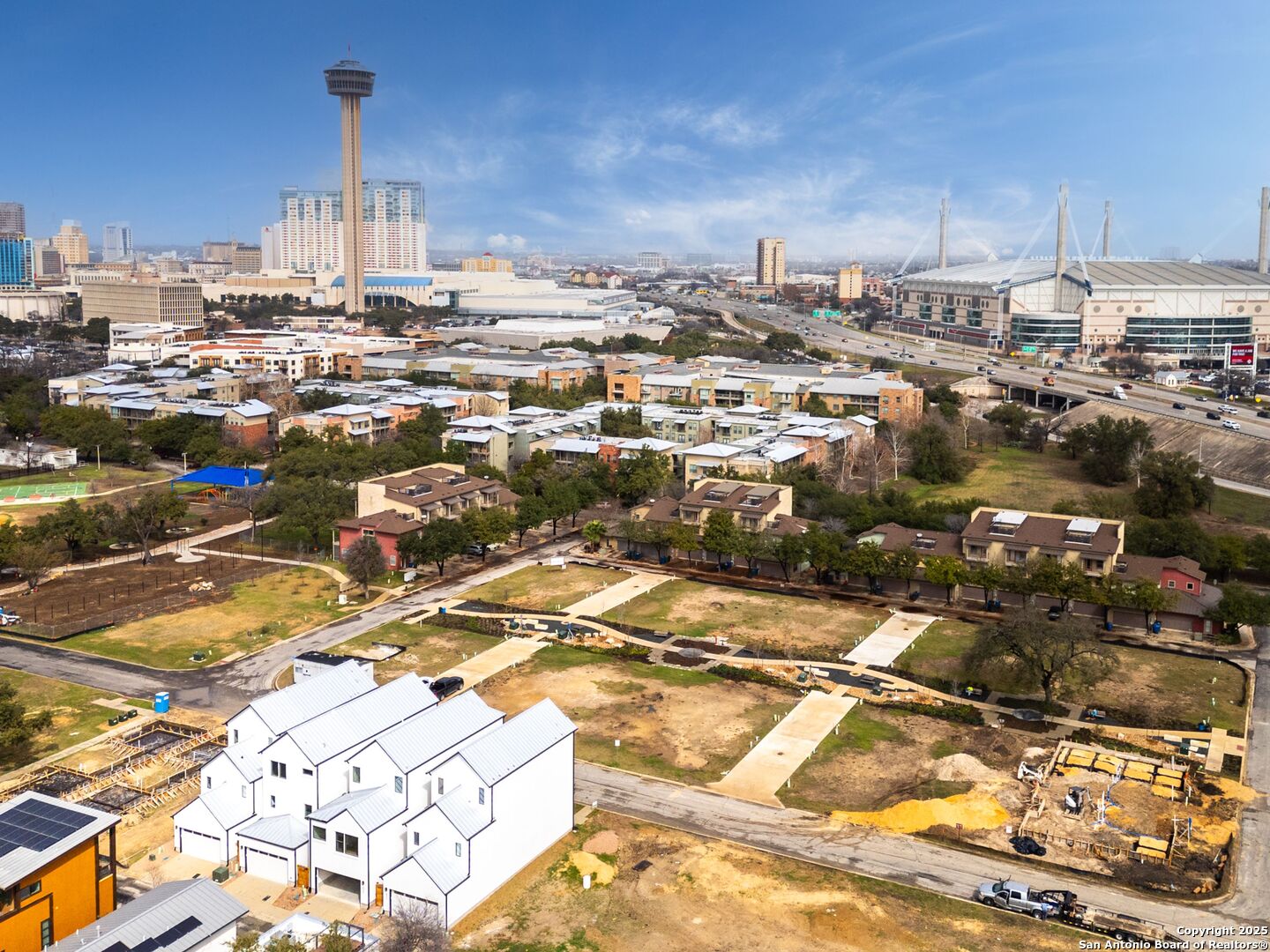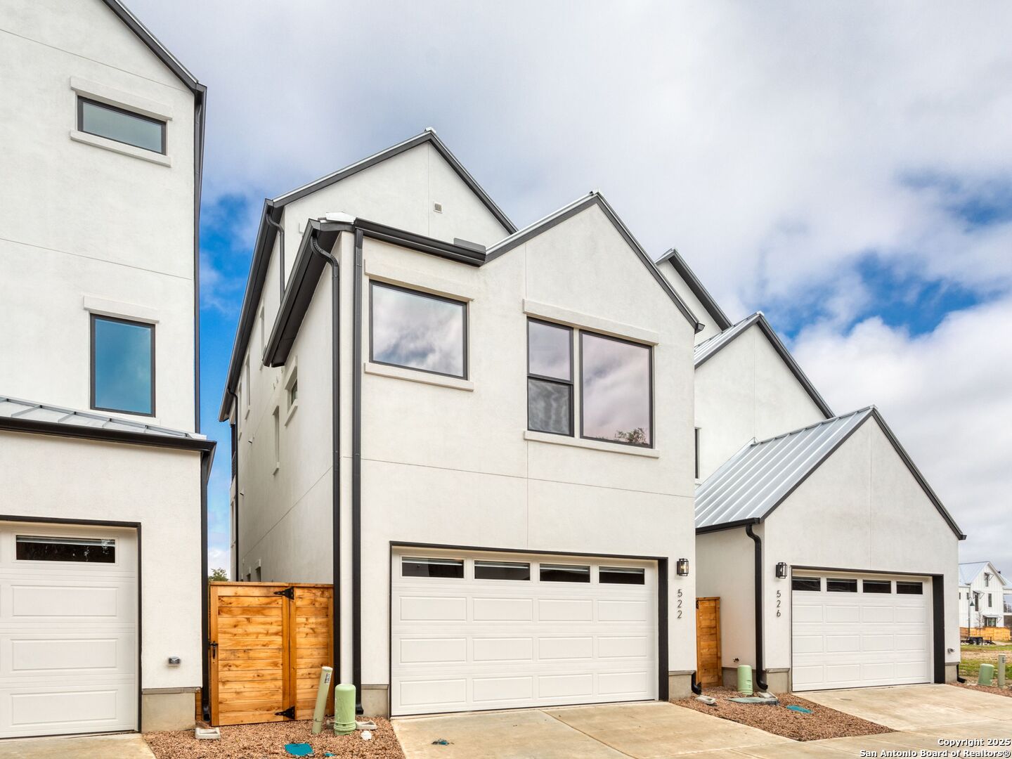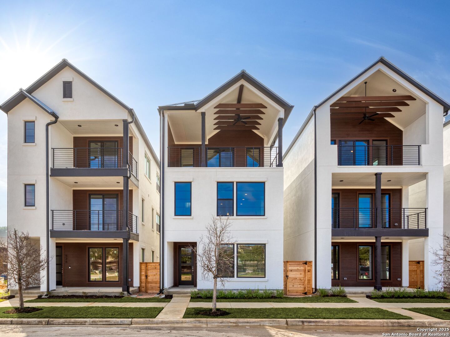 Welcome to Victoria Commons, located in the culturally rich and vibrant Lavaca Neighborhood part of Southtown. Steps from everything Downtown San Antonio has to offer, including award-winning restaurants, cocktail lounges, coffee shops, vibrant arts scene, theater and music venues, Alamodome, Hemisphere-Civic Park, Riverwalk, Blue Star Arts Complex, Museum and Mission Reach, and ease of access to major expressways. Don't miss out on the chance to experience the best of city living in this truly exceptional home. Experience the Espada floor plan, a seamless blend of contemporary design and everyday comfort. The entry level features two spacious secondary bedrooms with a full bath and attached two-car garage. Second level boosts an open-concept main floor which centers on a bright living area that flows into the dining and kitchen. The spacious kitchen features quartz countertops, a generous island, tasteful backsplash, sleek appliances, gas cooking, custom cabinetry, pantry, and utility room. On the second level the primary suite offers a tranquil retreat with an office or reading space, dual-vanity bath, large walk-in shower, and a generously sized closet. A versatile third level hosts a spacious game room with a large balcony, plus a third a study, gym, or office space and a full bath. Thoughtful design, abundant upgrades, and energy-efficient, low-maintenance features make everyday living effortless. Listing images are for representation purposes only and vary for all floor plans.