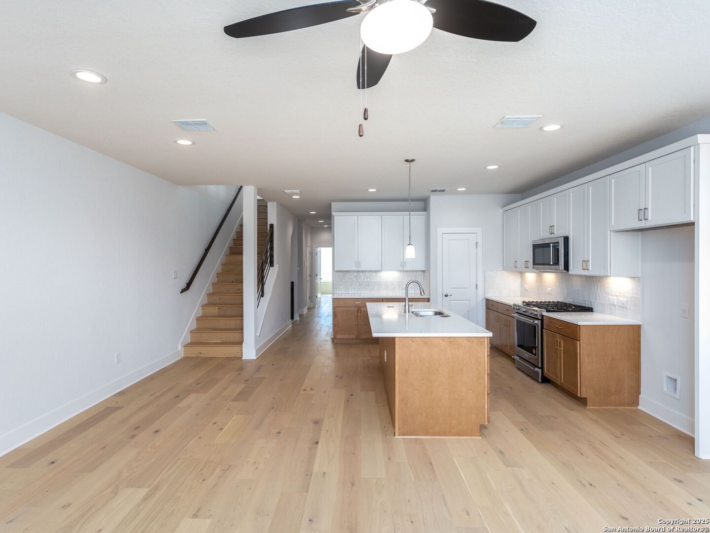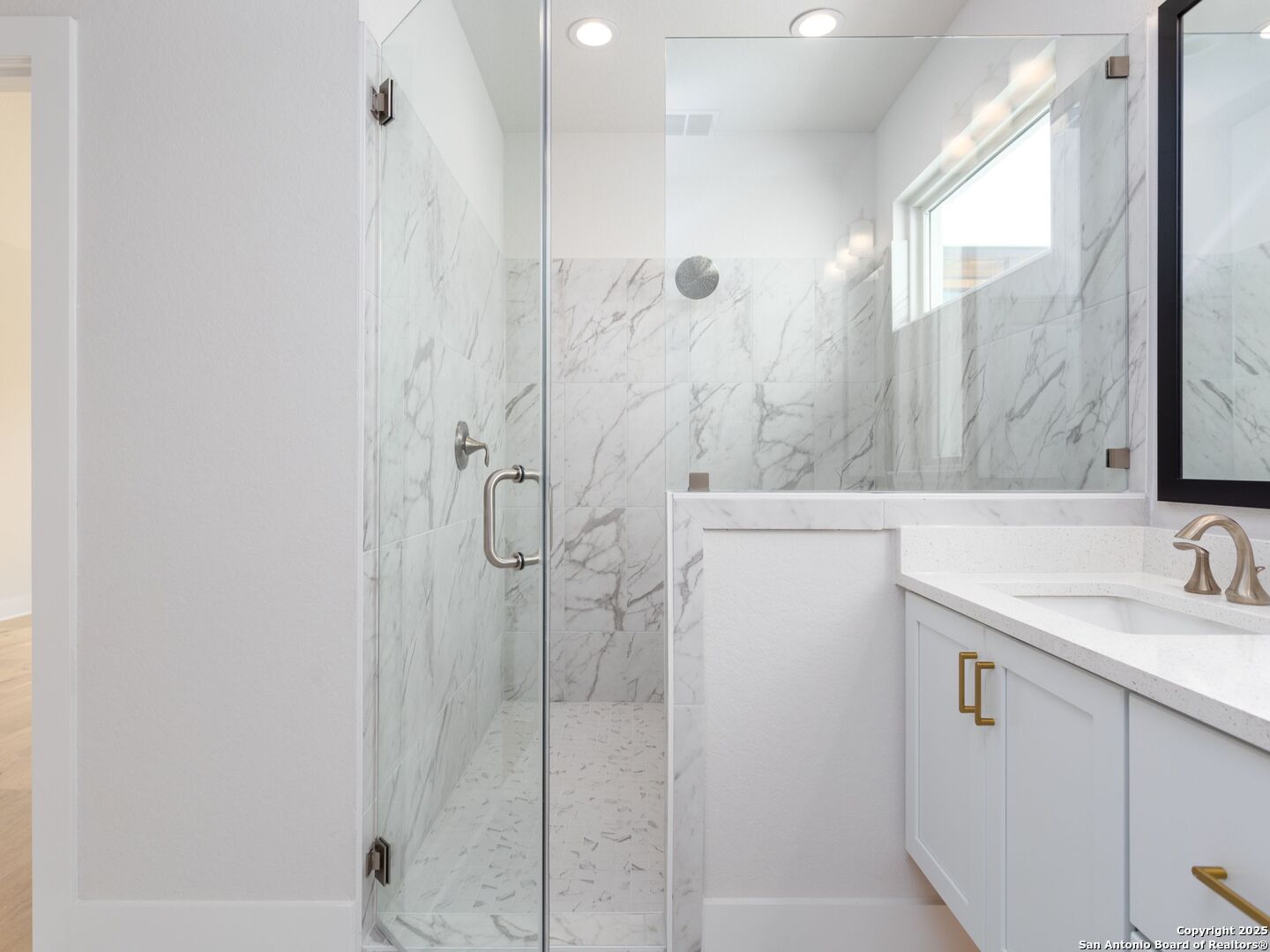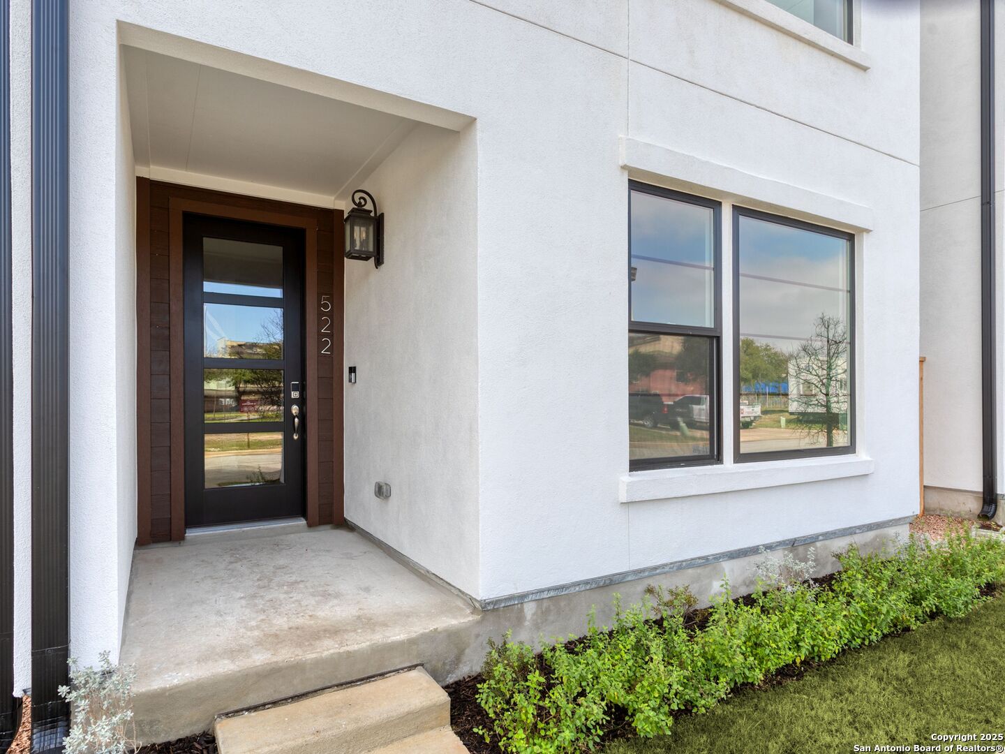 Welcome to Victoria Commons, located in the culturally rich and vibrant Lavaca Neighborhood part of Southtown. Steps from everything Downtown San Antonio has to offer, including award-winning restaurants, cocktail lounges, coffee shops, vibrant arts scene, theater and music venues, Alamodome, Hemisphere-Civic Park, Riverwalk, Blue Star Arts Complex, Museum and Mission Reach, and ease of access to major expressways. Don't miss out on the chance to experience the best of city living in this truly exceptional home. Experience the Espada floor plan, a seamless blend of contemporary design and everyday comfort. The entry level features two spacious secondary bedrooms with a full bath and attached two-car garage. Second level boosts an open-concept main floor which centers on a bright living area that flows into the dining and kitchen. The spacious kitchen features quartz countertops, a generous island, tasteful backsplash, sleek appliances, gas cooking, custom cabinetry, pantry, and utility room. On the second level the primary suite offers a tranquil retreat with an office or reading space, dual-vanity bath, large walk-in shower, and a generously sized closet. A versatile third level hosts a spacious game room with a large balcony, plus a third a study, gym, or office space and a full bath. Thoughtful design, abundant upgrades, and energy-efficient, low-maintenance features make everyday living effortless. Listing images are for representation purposes only and vary for all floor plans.