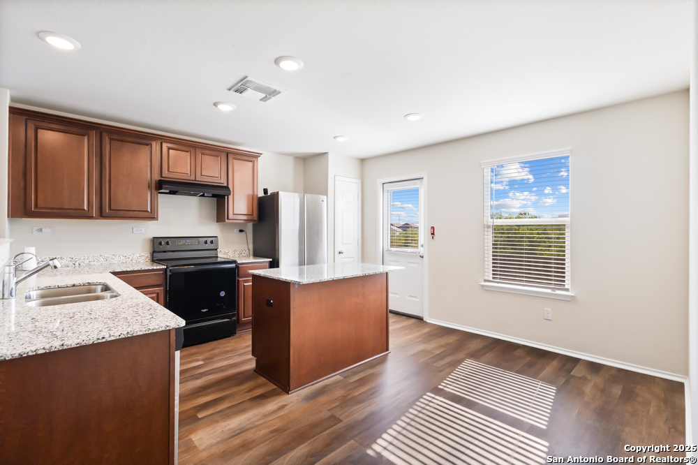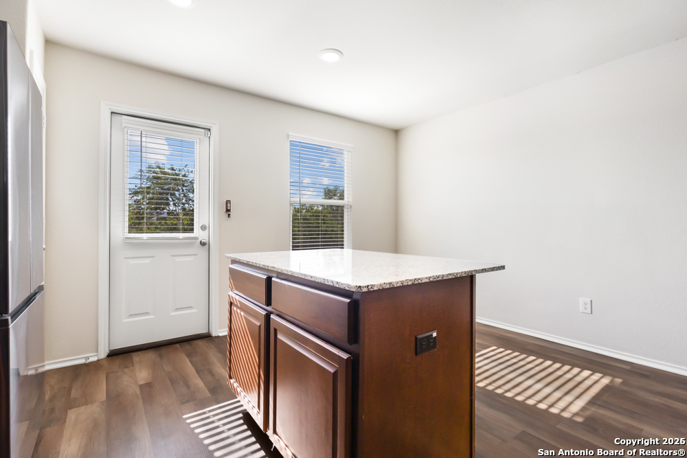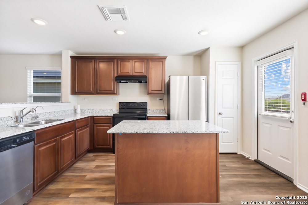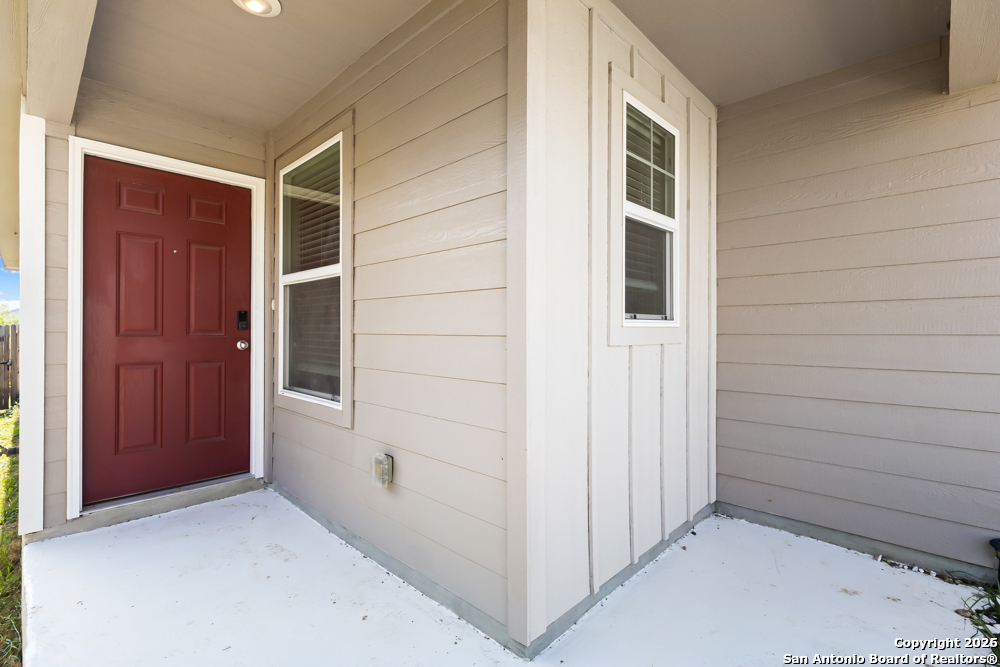 This one-story home, built in 2021, is 1,207 square feet with 3 bedrooms and 2 bathrooms. Located in a new community about six miles from the Brooke Army Medical Center, under ten miles from the San Antonio International Airport, within half a mile from hotel and lodging, around two miles from the Walmart Supercenter, about three miles from the HEB grocery store; and adjacent to the Amazon warehouse. In addition, this home offers modern features and a comfortable living space. The property includes vinyl plank flooring, an open floor plan, and all new stainless steel appliances; including a refrigerator, and a Samsung washer and dryer. An automatic garage door opener adds convenience, and the home is filled with natural light. The kitchen is a highlight, featuring a large island countertop, a breakfast bar, and ample storage. The spacious backyard is perfect for hosting parties. Residents can also enjoy a neighborhood park, adding to the community's appeal. This home combines modern amenities with a serene environment, making it an ideal choice for comfortable living. Meanwhile, enjoy a pleasurable view of the sunrise each morning from the primary bedroom consisting of two (large) windows; and plentiful natural sunlight. An additional benefit and feature of this peaceful home, is having the luxury to enjoy the gorgeous sunset; each day from the front patio area. Also, have peace of mind knowing there are no direct houses behind this beautiful home; and features a privately fenced backyard. On another note, the floors were completely re-done in 2023 making this home unique, since the builder re-did the entire flooring, due to scratches; the builder installed luxury vinyl floor planks. Also, there are about one to two cases of extra floor planks in the garage for the new homeowner to keep; in case they get any scratches on the floor.
