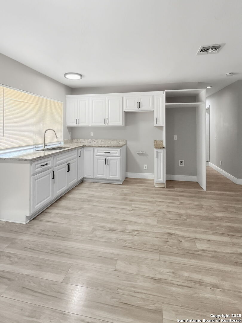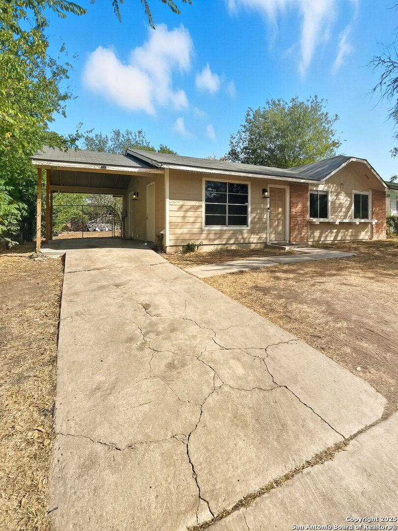 Newly remodeled home with 3 bedrooms and 1 very nice bathroom. HVAC system installed in 2023. Granite countertops in both kitchen and bathroom. Modern looking laminate floors and ceiling fans in the living room and all bedrooms. Back yard is very spacious and flat. Washer and dryer connection are in a room by the carport. Conveniently located near Lackland AFB, Toyota manufacturing plant, Southwest ISD Schools and various restaurants. Close to 410!