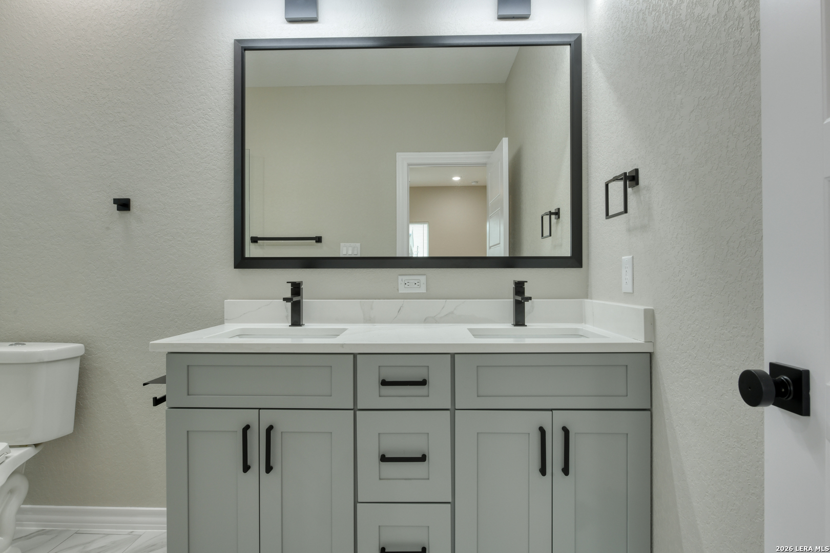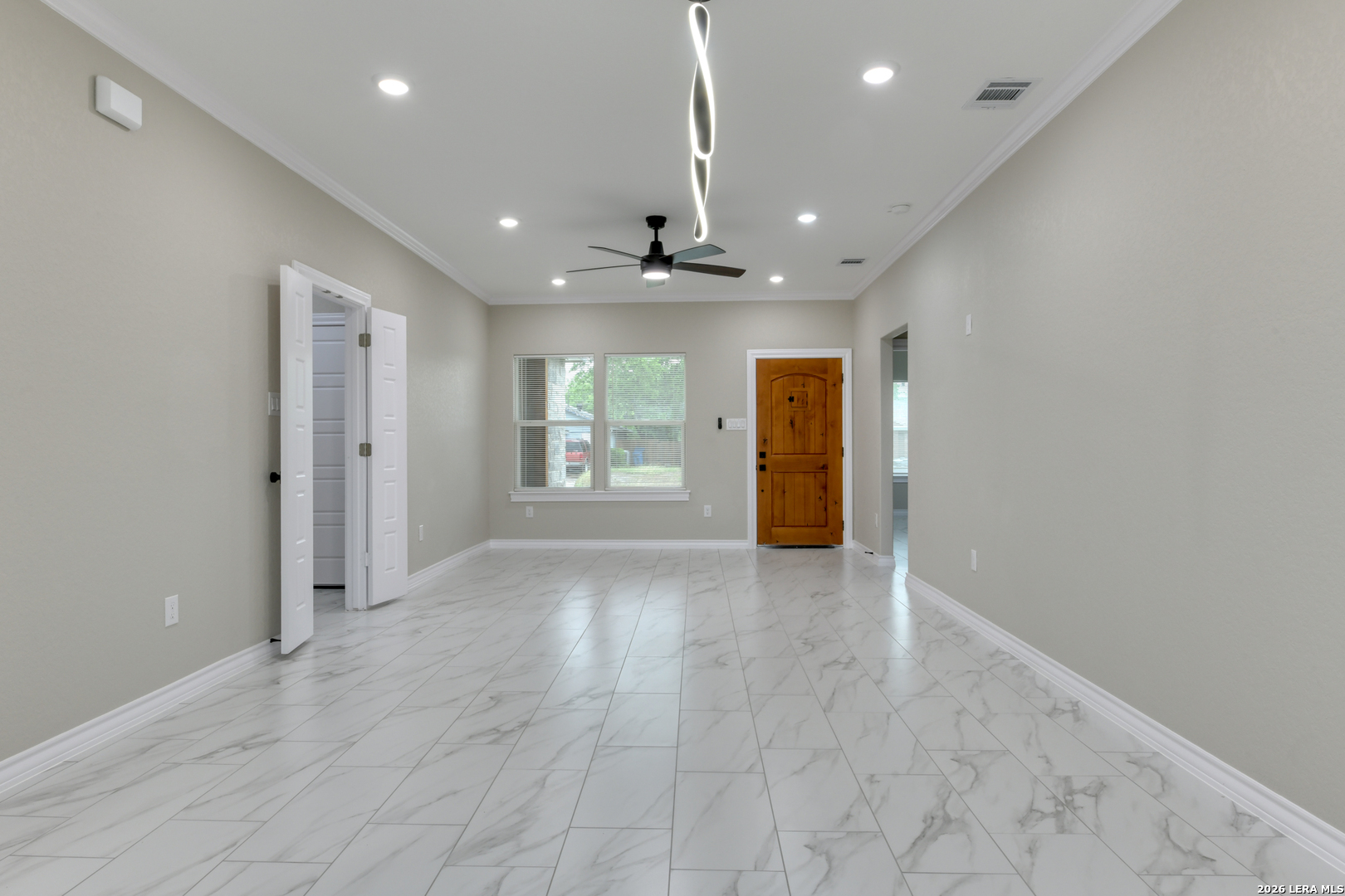 This brand-new home, 3/4 mile from IH 10 in Kirby is ready and waiting for you. New construction just completed this month. No carpet, all floors are tile, quartz counter tops, beautifully tiled showers with upgraded fixtures. The back yard is extra-large, already has privacy fence and grass is in place. Seller will owner finance a 30 year note at 7% interest with $34,000 down and approved credit.