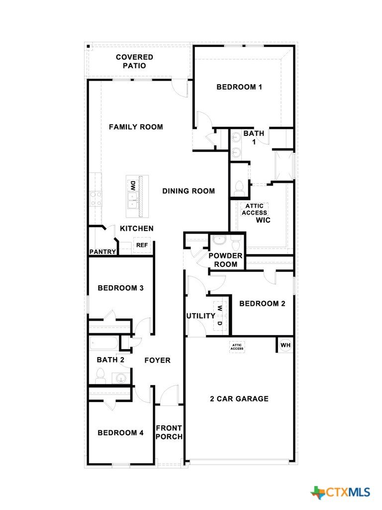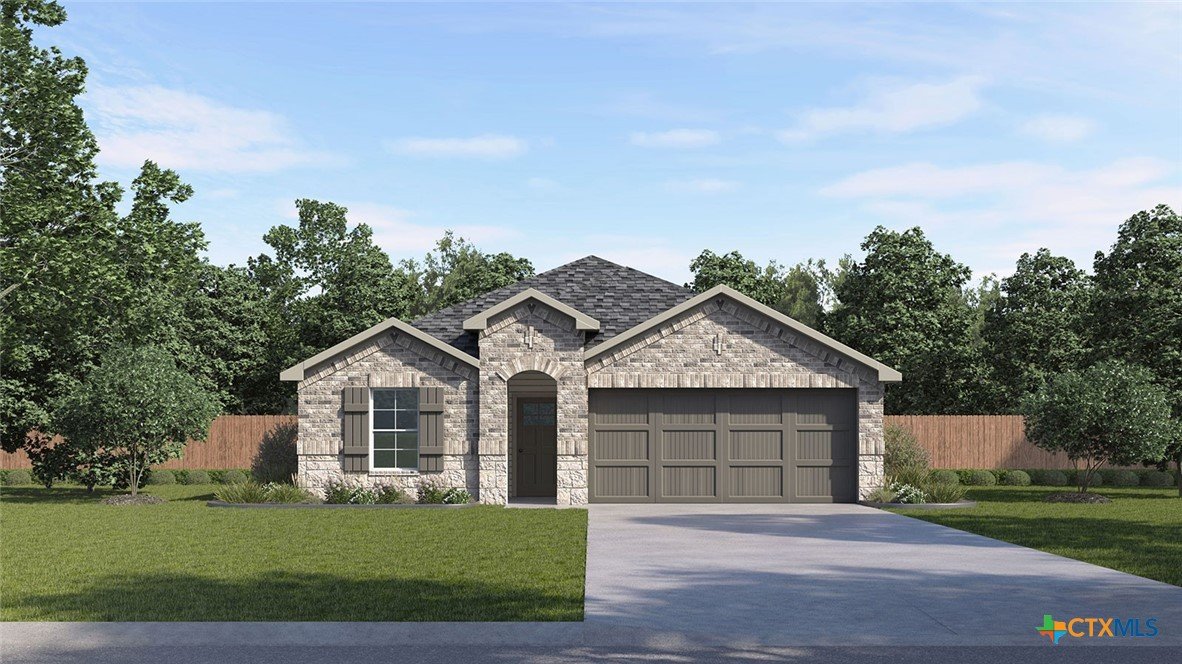 JULY ESTMIATED COMPLETION DATE. Check out the Harris floorplan, one of our one-story home available at Mayfair in New Braunfels, Texas. This 4 bedroom, 2.5 bathroom, 2 car garage home offers 1,822 square feet of comfortable living space. Our homes in Mayfair feature front masonry exteriors. At the front of the home, off the foyer, you have two secondary bedrooms and a full bathroom, which includes a shower/tub combination. Moving through the foyer and down a small hall, you will find the half bathroom, utility room and another secondary bedroom. All secondary bedrooms feature a closet with shelving. Whether you use these rooms as an office, child’s room or guest room, there is plenty of space for work, sleep, and play. Making your way through the house, you’ll walk into the heart of the home, the living area. Built as an open concept, move easily between the kitchen, dining, and family room. The L-shaped kitchen includes quartz countertops, a large island with undermount sink, a corner pantry closet, stainless-steel appliances, including a gas range, and 42’’ upper cabinets. The primary bedroom is located off the family room. This spacious bedroom will be your oasis at the end of a long day. Enjoy the private bathroom, which features a walk-in shower, double vanity with quartz counter tops, private toilet area with a door, and a large walk-in closet. The Harris includes vinyl flooring throughout the common areas of the home, and carpet in the bedrooms. All our new homes feature a covered back patio, full sod, irrigation system in the front and back yard, and a 6’ privacy fence around the backyard. This home features our America’s Smart Home base package, which includes the Video Front Doorbell, Front Door Deadbolt Lock, Home Hub, Thermostat, and smart switch.