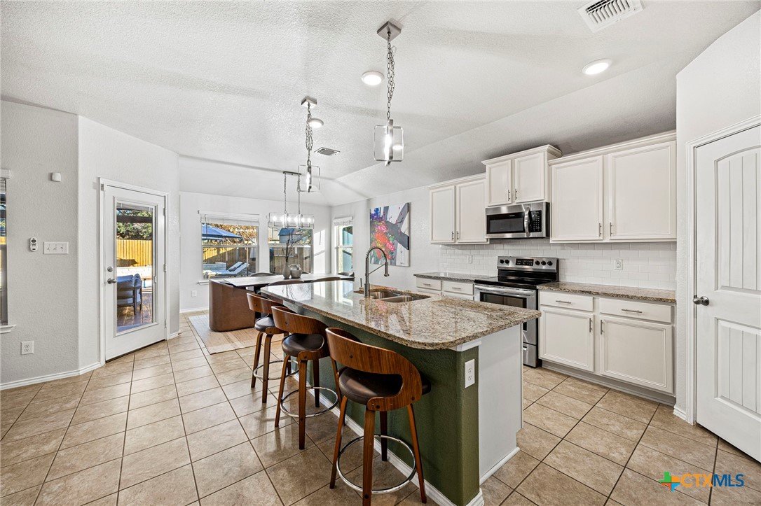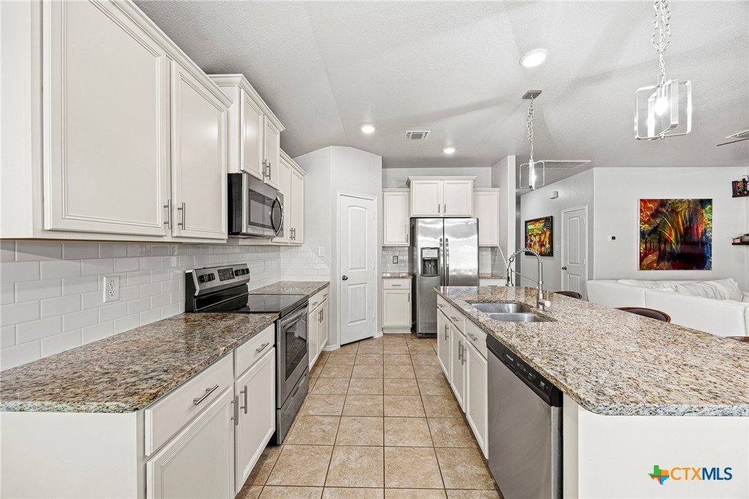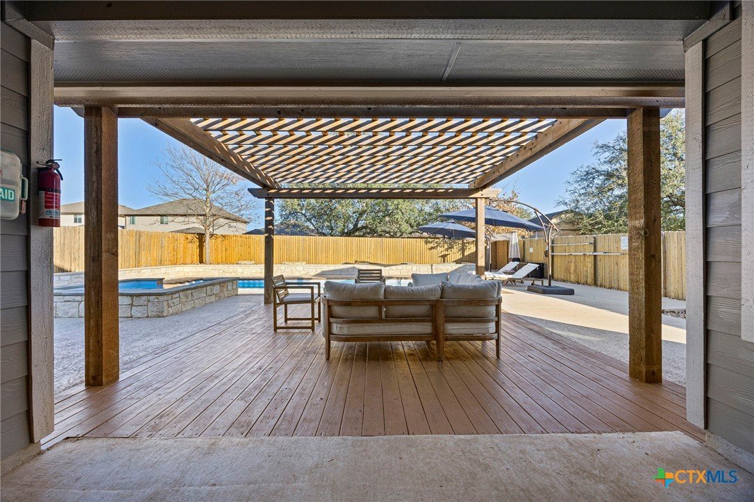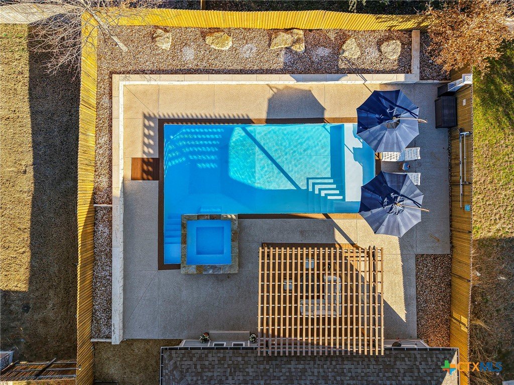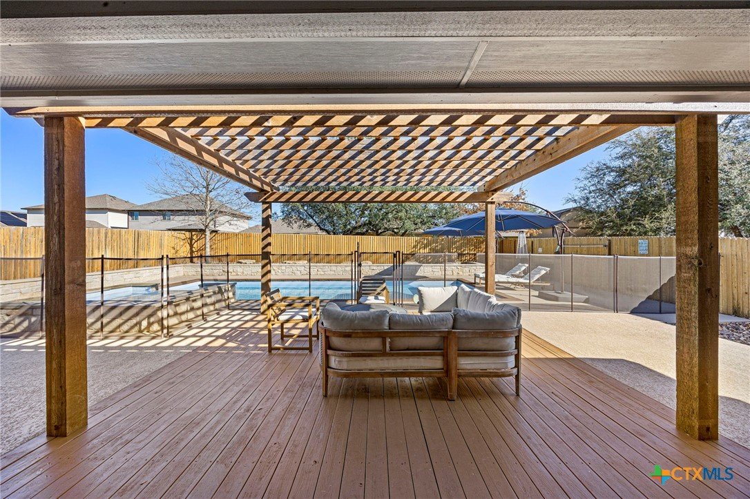 Welcome to this beautifully maintained, one-story home in the desirable Three Creeks subdivision of Belton ISD! Boasting 4 bedrooms, 2½ baths and an oversized 3-car garage, AND an office, this home offers both space and comfort for everyday living and entertaining. Step inside to an open concept floor plan featuring a spacious living area adjacent to a well-appointed kitchen with a generous center island – ideal for meal prep, casual dining, and gatherings. The primary suite is a true retreat with added French doors overlooking the backyard, while the additional bedrooms provide flexibility for family, guests, or a home office. Fresh washable paint and new carpet enhance the welcoming interior throughout. Unwind or entertain outdoors in your private backyard oasis complete with an in-ground saltwater pool and a propane-heated hot tub, spacious deck and patio with pergola, all set behind added privacy fencing. Enjoy year-round convenience with full front and back sprinkler systems and a phantom screen on the back door for effortless indoor-outdoor living. Located in the scenic Three Creeks community with walking trails, pavilions and nearby Lampasas River access, this home blends modern living with a connected neighborhood feel. Don’t miss your chance to make it your own!