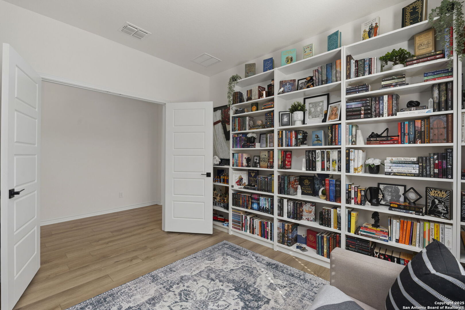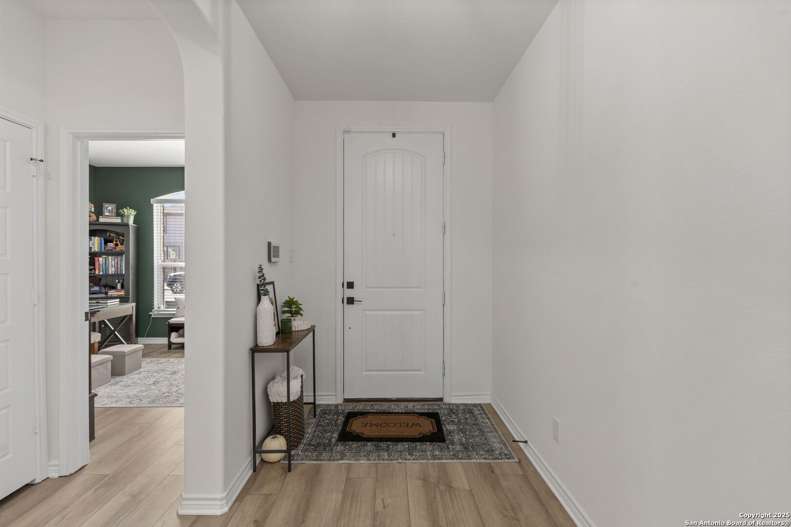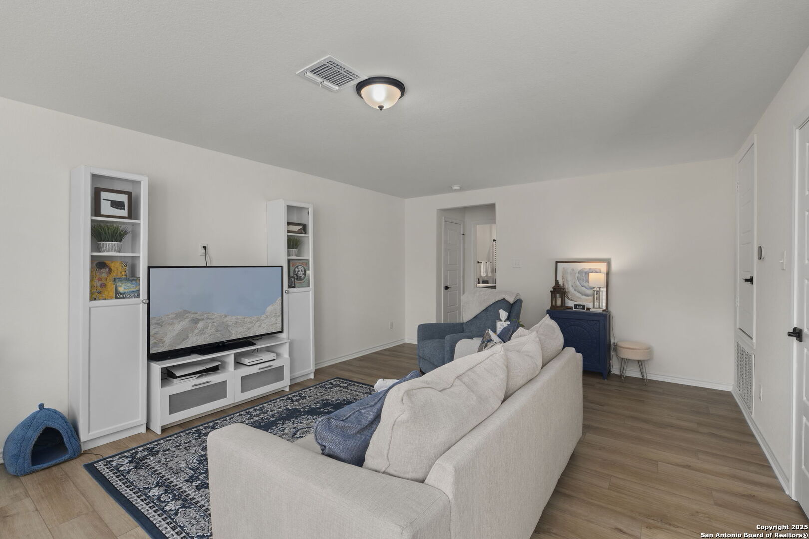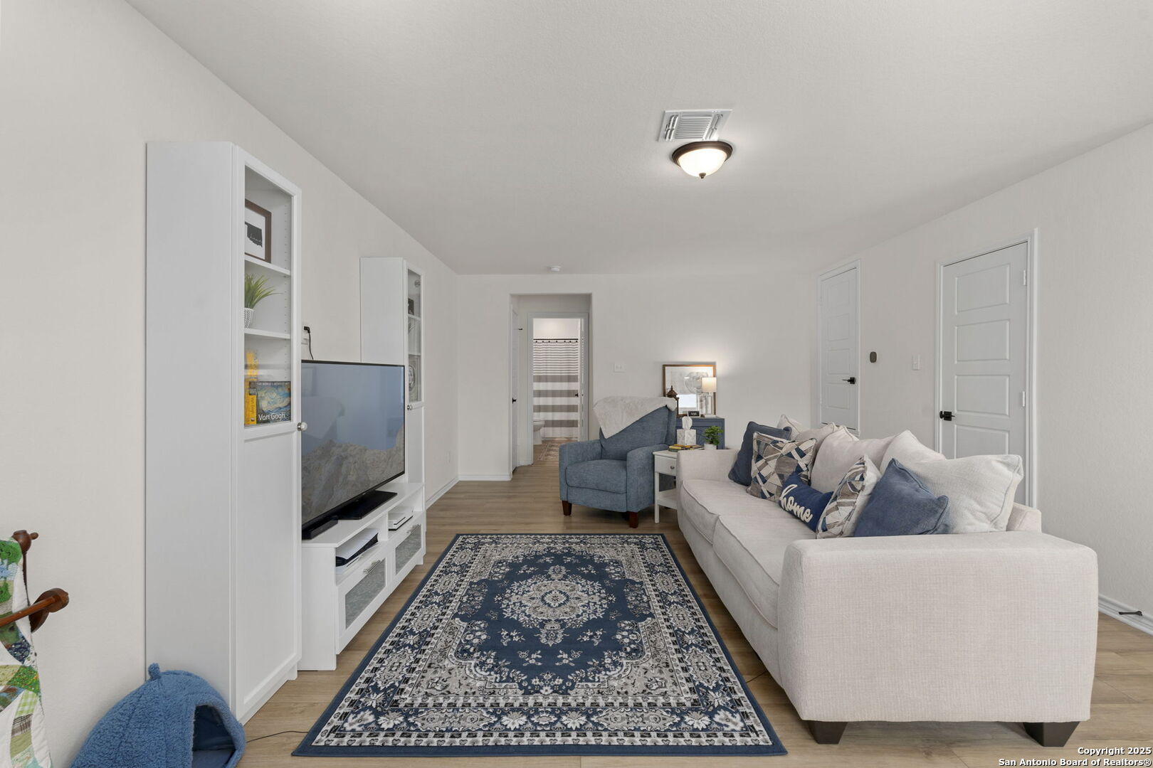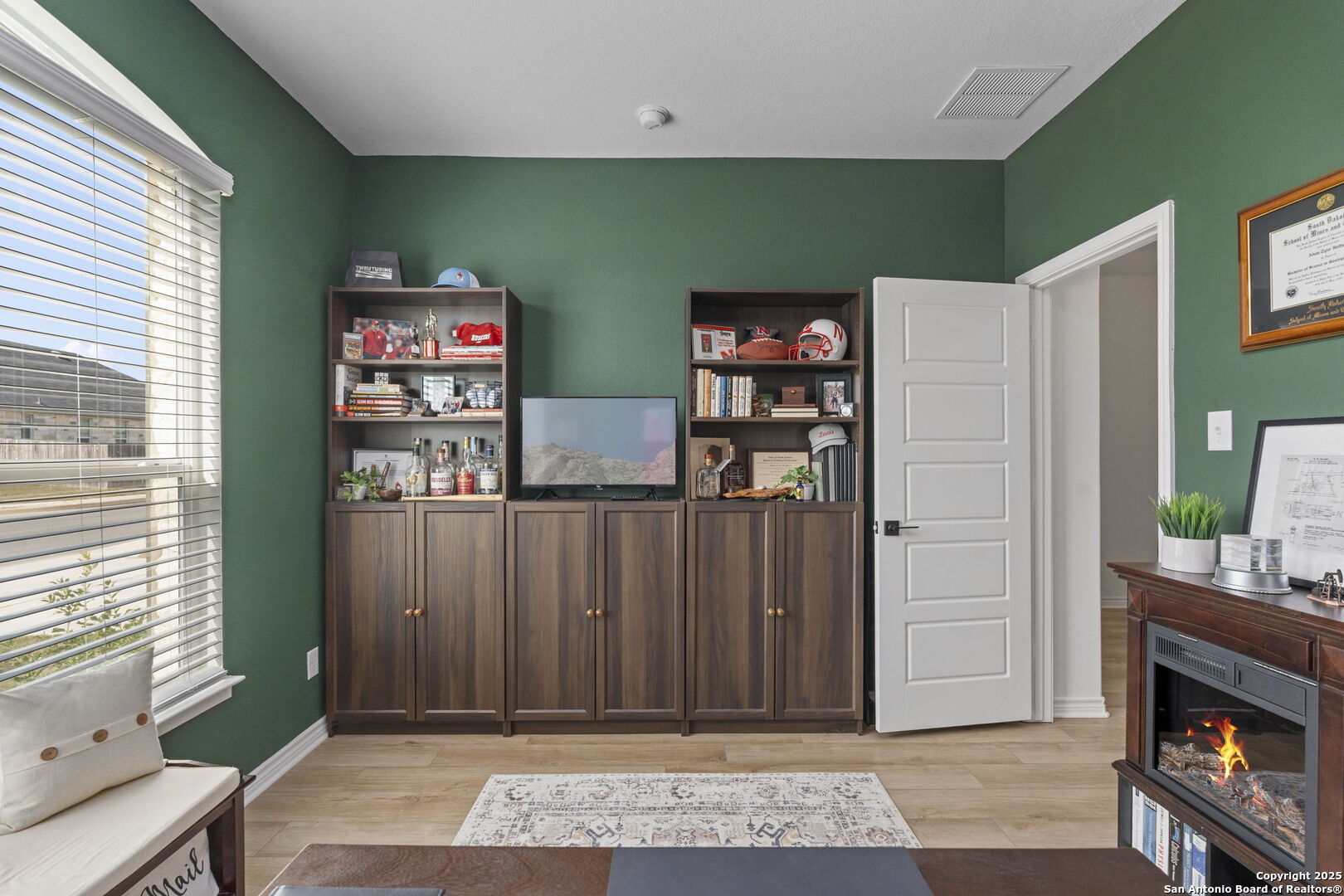 You have found home! This beauty is a must see. 1.5 story with great curb appeal welcomes you inside. Carpet free downstairs with an Inviting entry with updated ceiling light fixtures with 2 bedrooms up front with a full bathroom. Down the hall is a double door study with a huge closet perfect for storage. Hall leads you inside the kitchen that you will want to entertain guests in and hosts gatherings. Beautiful Backsplash with so many cabinets. Additional counter space off the dining area perfect for a coffee bar, drinks or kitchen gadgets. Built in appliances with double ovens, electric cook top and a window over the sink allowing natural light and view of trees. Island with pendant lighting perfect for additional seating and showing off those holiday platters. Dining area opens to the kithcen and living area. Primary bedroom is tucked away from the other rooms and living area offering great privacy with a walk in closet with custom built in shelving. Bathroom with double vanilty, Tub/shower and a linen closet. Laundry room with built in shelving. Upstairs you will find a great size bright open game room with engineered wood flooring and a full bedroom and bathroom perfect for a college student, secondary primary or for guests. Love the outdoors? This home has a wonderful oversized covered back patio with shade in the afternoon and has a view of the greenbelt with mature trees in your own yard. Flat and ready for game day BBQ's. This home is a true gem with so many extra features and you can see the pride of ownership the moment you step inside. No need to build since you can't find this 1.5 story style in this area for this price! A true single story with Bonus Room. No City taxes.