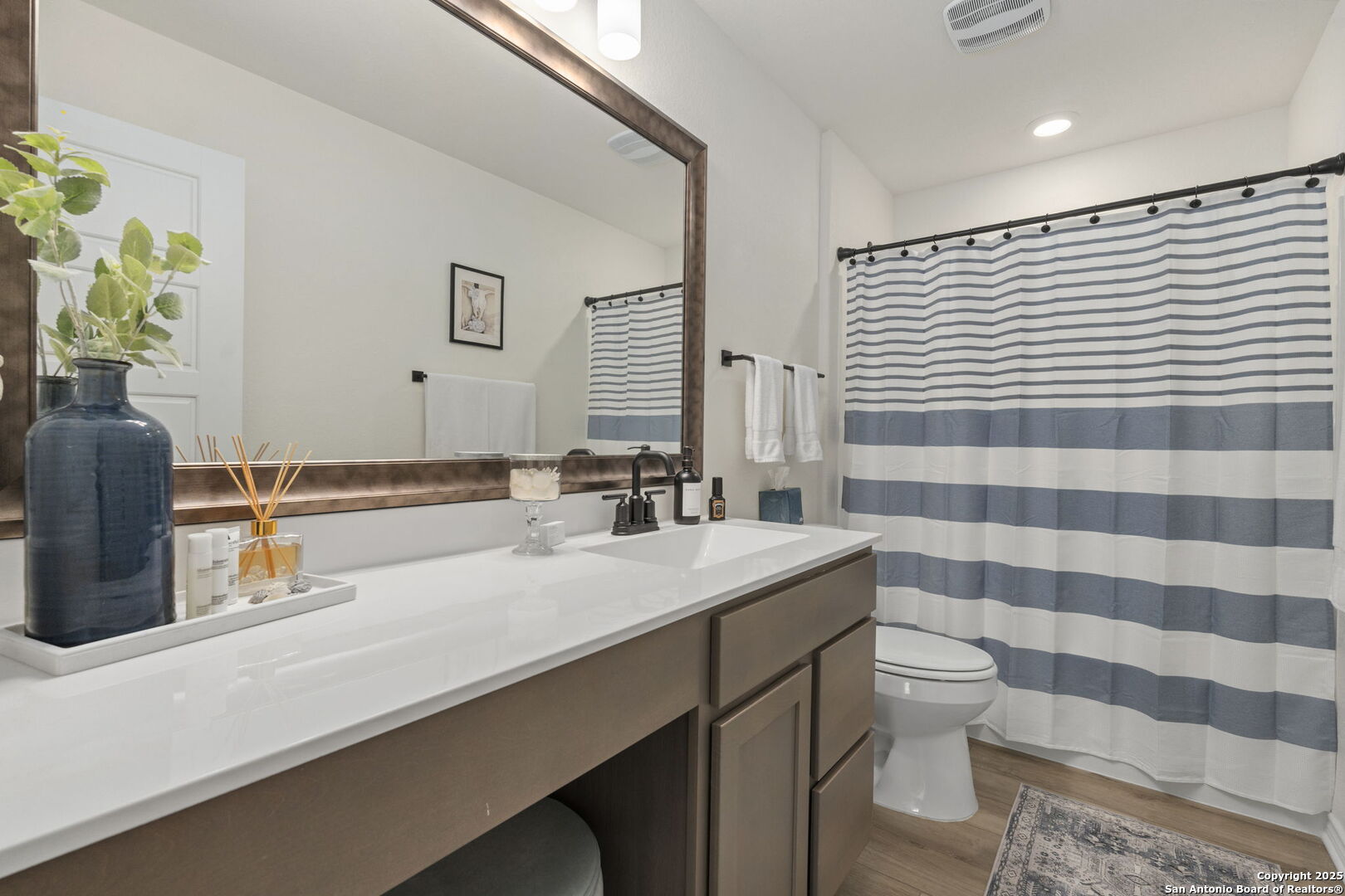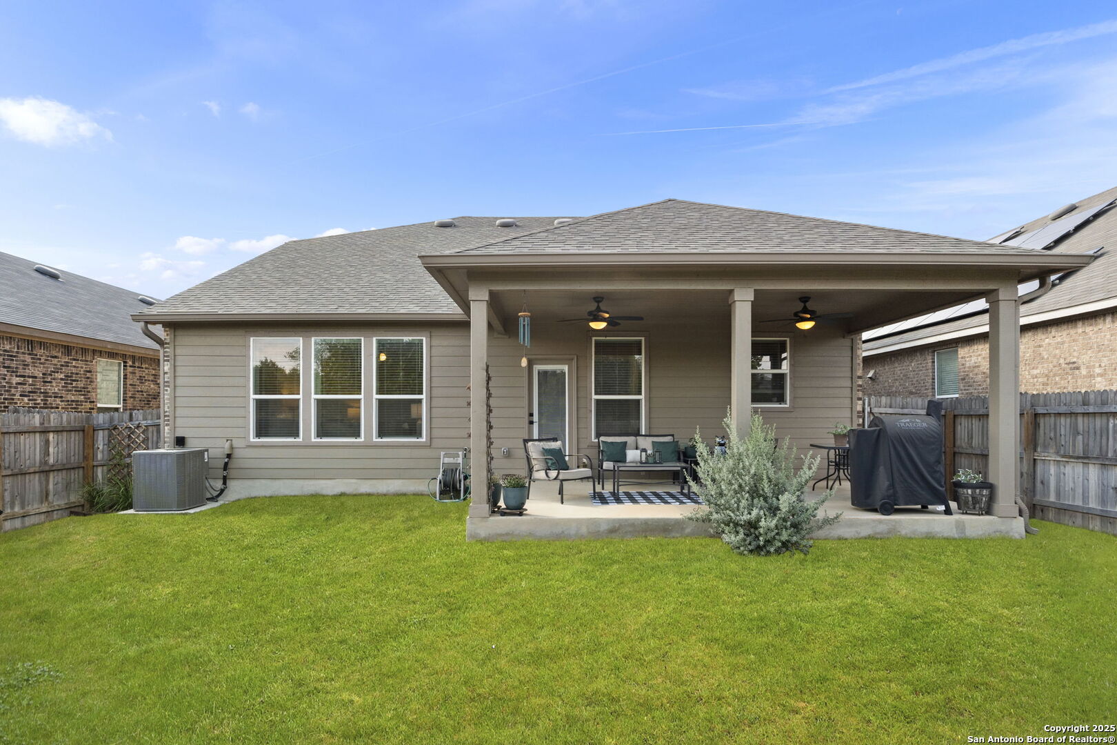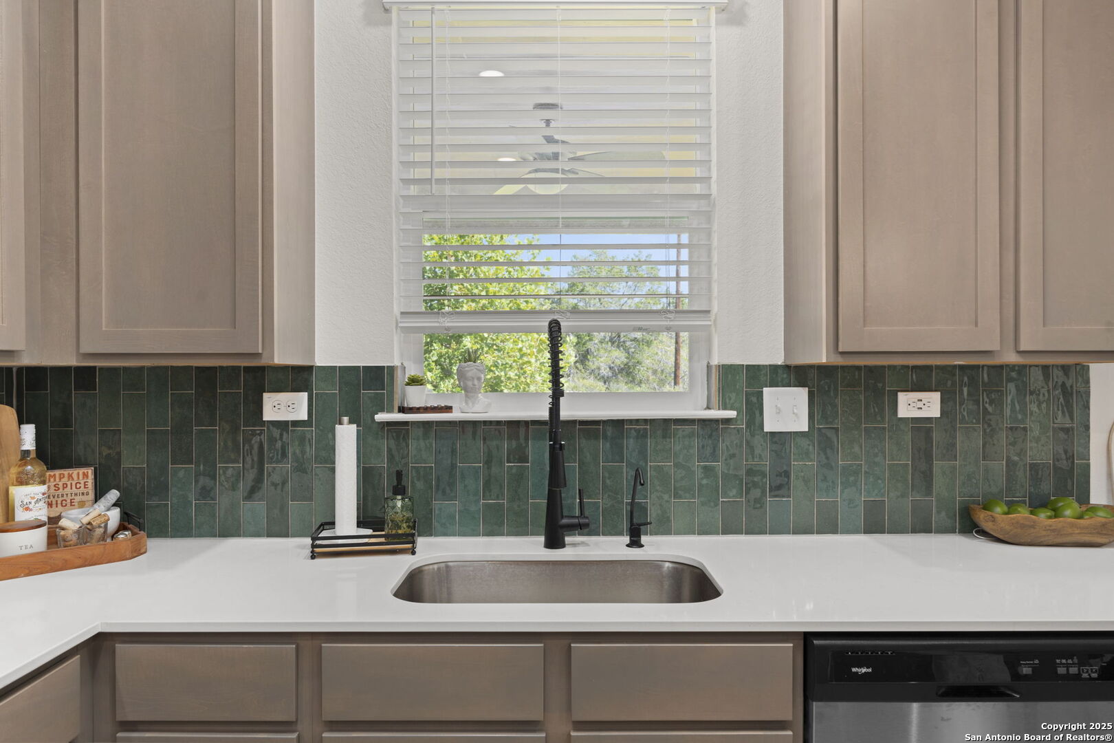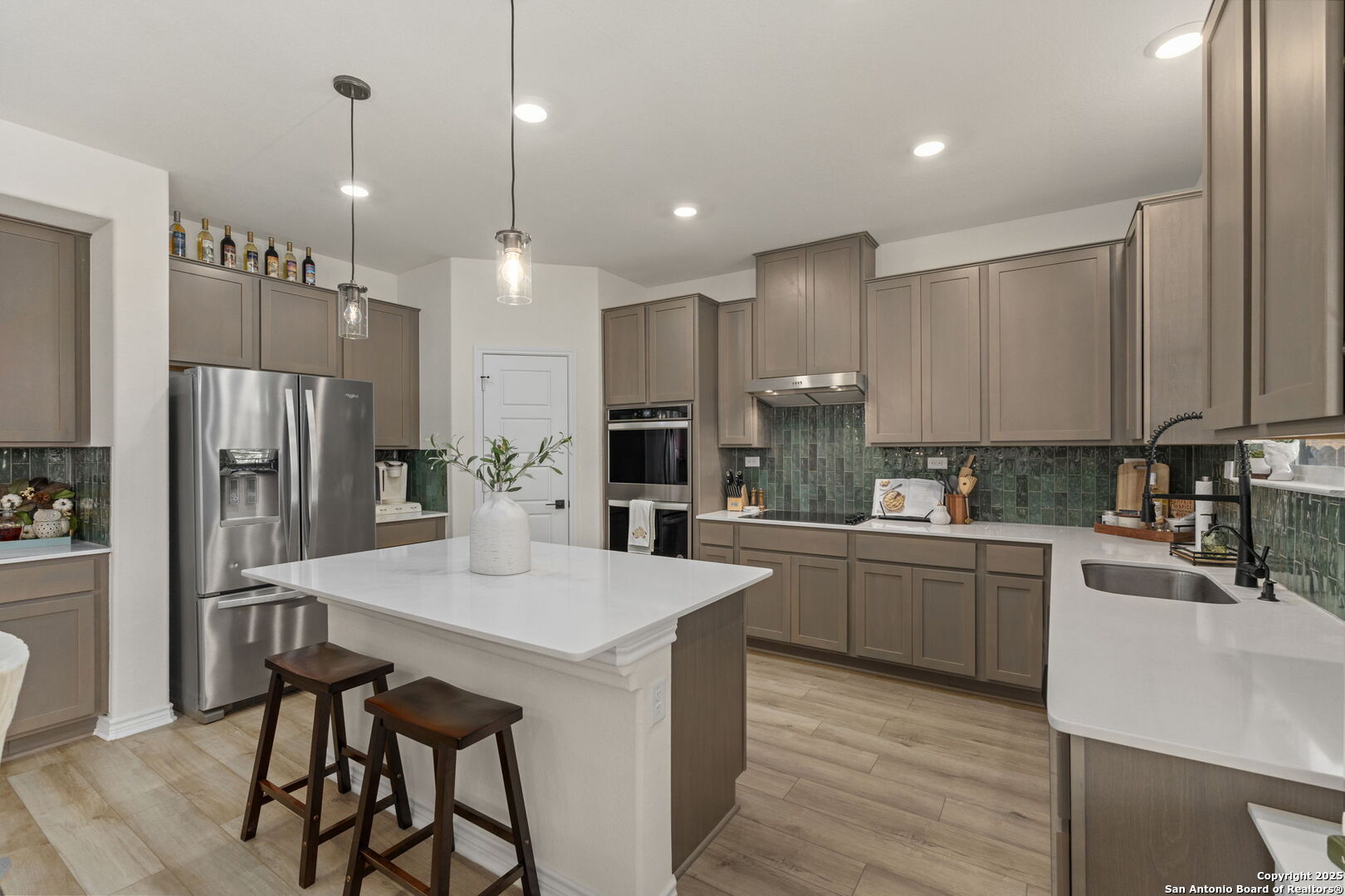 You have found home! This beauty is a must see. 1.5 story with great curb appeal welcomes you inside. Carpet free downstairs with an Inviting entry with updated ceiling light fixtures with 2 bedrooms up front with a full bathroom. Down the hall is a double door study with a huge closet perfect for storage. Hall leads you inside the kitchen that you will want to entertain guests in and hosts gatherings. Beautiful Backsplash with so many cabinets. Additional counter space off the dining area perfect for a coffee bar, drinks or kitchen gadgets. Built in appliances with double ovens, electric cook top and a window over the sink allowing natural light and view of trees. Island with pendant lighting perfect for additional seating and showing off those holiday platters. Dining area opens to the kithcen and living area. Primary bedroom is tucked away from the other rooms and living area offering great privacy with a walk in closet with custom built in shelving. Bathroom with double vanilty, Tub/shower and a linen closet. Laundry room with built in shelving. Upstairs you will find a great size bright open game room with engineered wood flooring and a full bedroom and bathroom perfect for a college student, secondary primary or for guests. Love the outdoors? This home has a wonderful oversized covered back patio with shade in the afternoon and has a view of the greenbelt with mature trees in your own yard. Flat and ready for game day BBQ's. This home is a true gem with so many extra features and you can see the pride of ownership the moment you step inside. No need to build since you can't find this 1.5 story style in this area for this price! A true single story with Bonus Room. No City taxes.