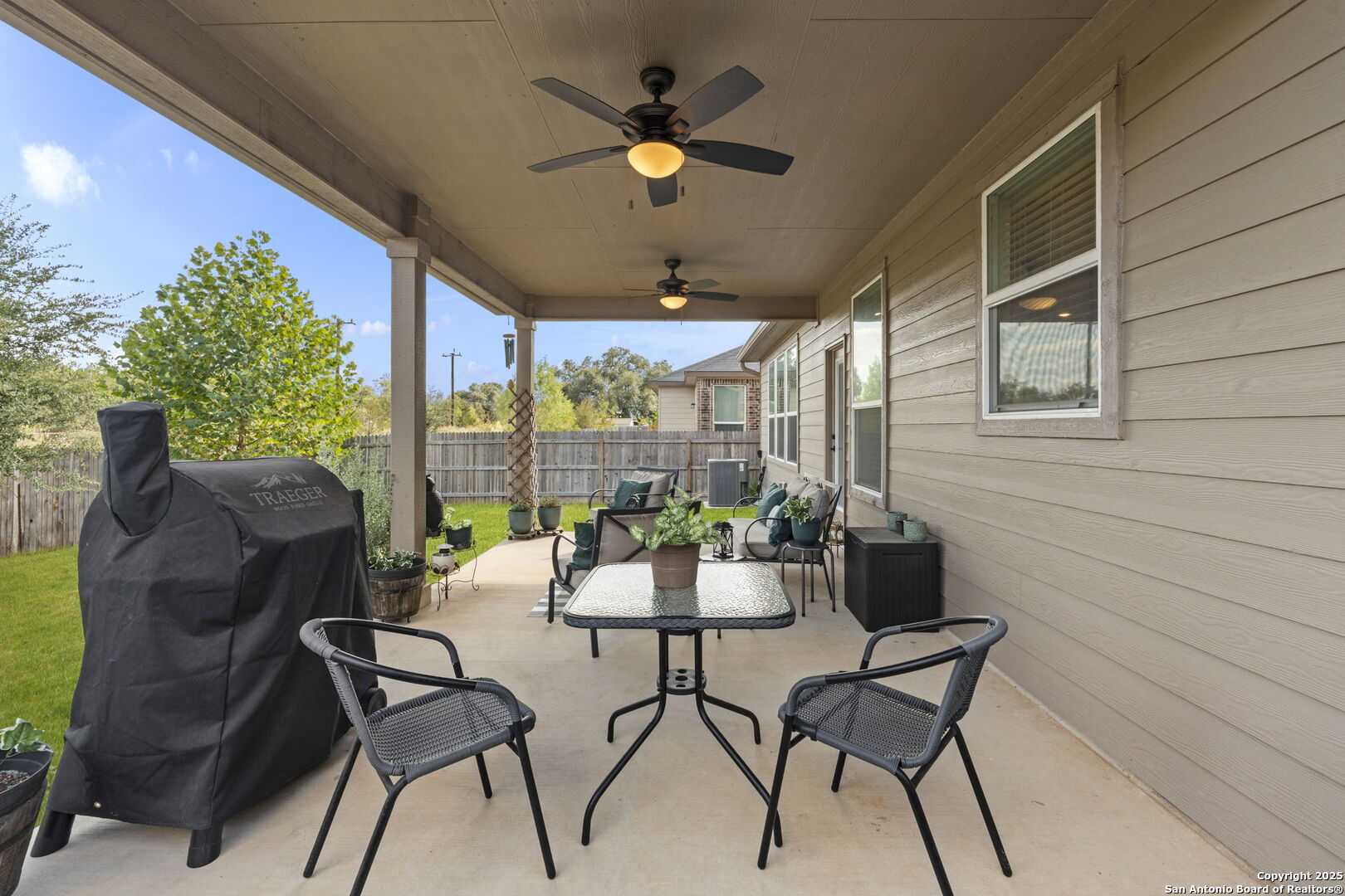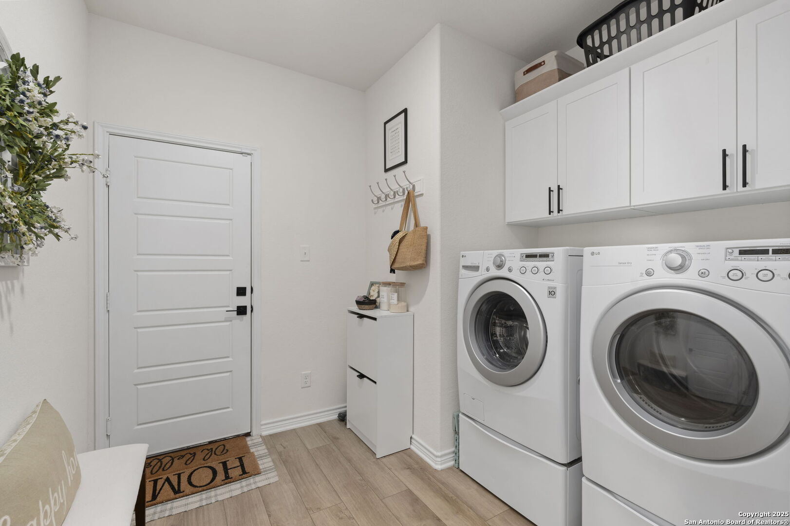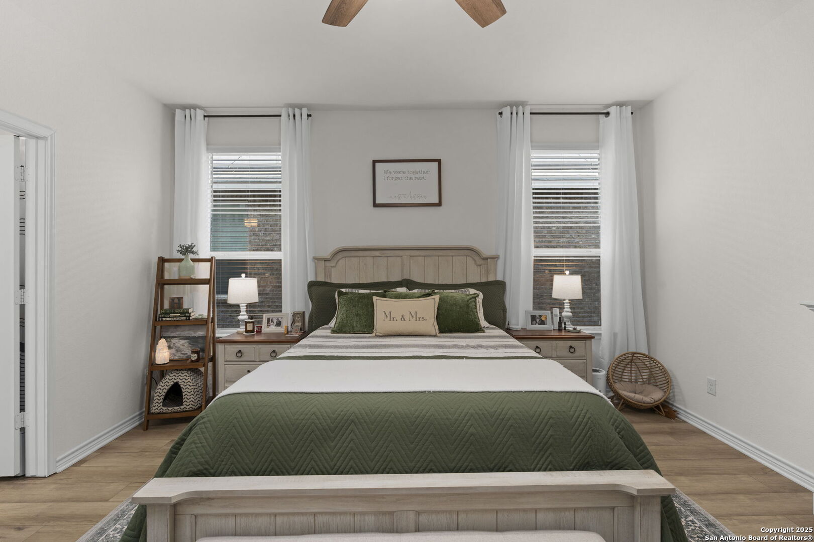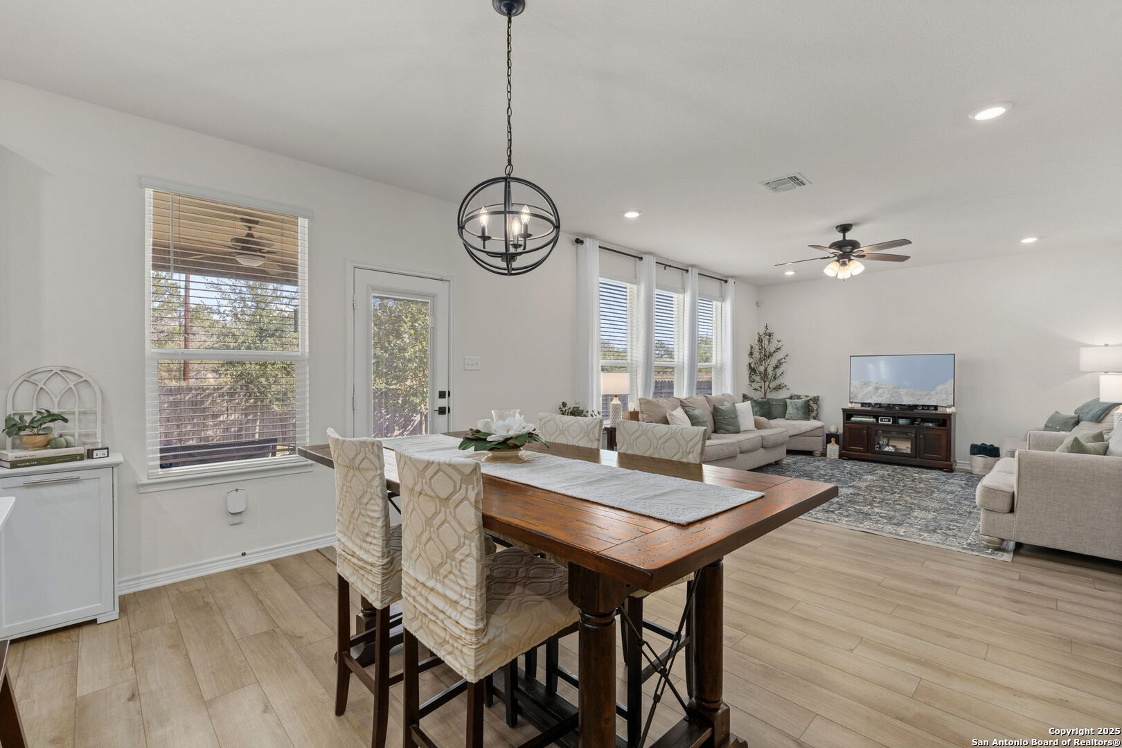 You have found home! This beauty is a must see. 1.5 story with great curb appeal welcomes you inside. Carpet free downstairs with an Inviting entry with updated ceiling light fixtures with 2 bedrooms up front with a full bathroom. Down the hall is a double door study with a huge closet perfect for storage. Hall leads you inside the kitchen that you will want to entertain guests in and hosts gatherings. Beautiful Backsplash with so many cabinets. Additional counter space off the dining area perfect for a coffee bar, drinks or kitchen gadgets. Built in appliances with double ovens, electric cook top and a window over the sink allowing natural light and view of trees. Island with pendant lighting perfect for additional seating and showing off those holiday platters. Dining area opens to the kithcen and living area. Primary bedroom is tucked away from the other rooms and living area offering great privacy with a walk in closet with custom built in shelving. Bathroom with double vanilty, Tub/shower and a linen closet. Laundry room with built in shelving. Upstairs you will find a great size bright open game room with engineered wood flooring and a full bedroom and bathroom perfect for a college student, secondary primary or for guests. Love the outdoors? This home has a wonderful oversized covered back patio with shade in the afternoon and has a view of the greenbelt with mature trees in your own yard. Flat and ready for game day BBQ's. This home is a true gem with so many extra features and you can see the pride of ownership the moment you step inside. No need to build since you can't find this 1.5 story style in this area for this price! A true single story with Bonus Room. No City taxes.