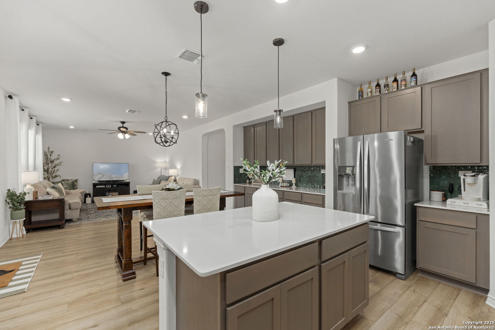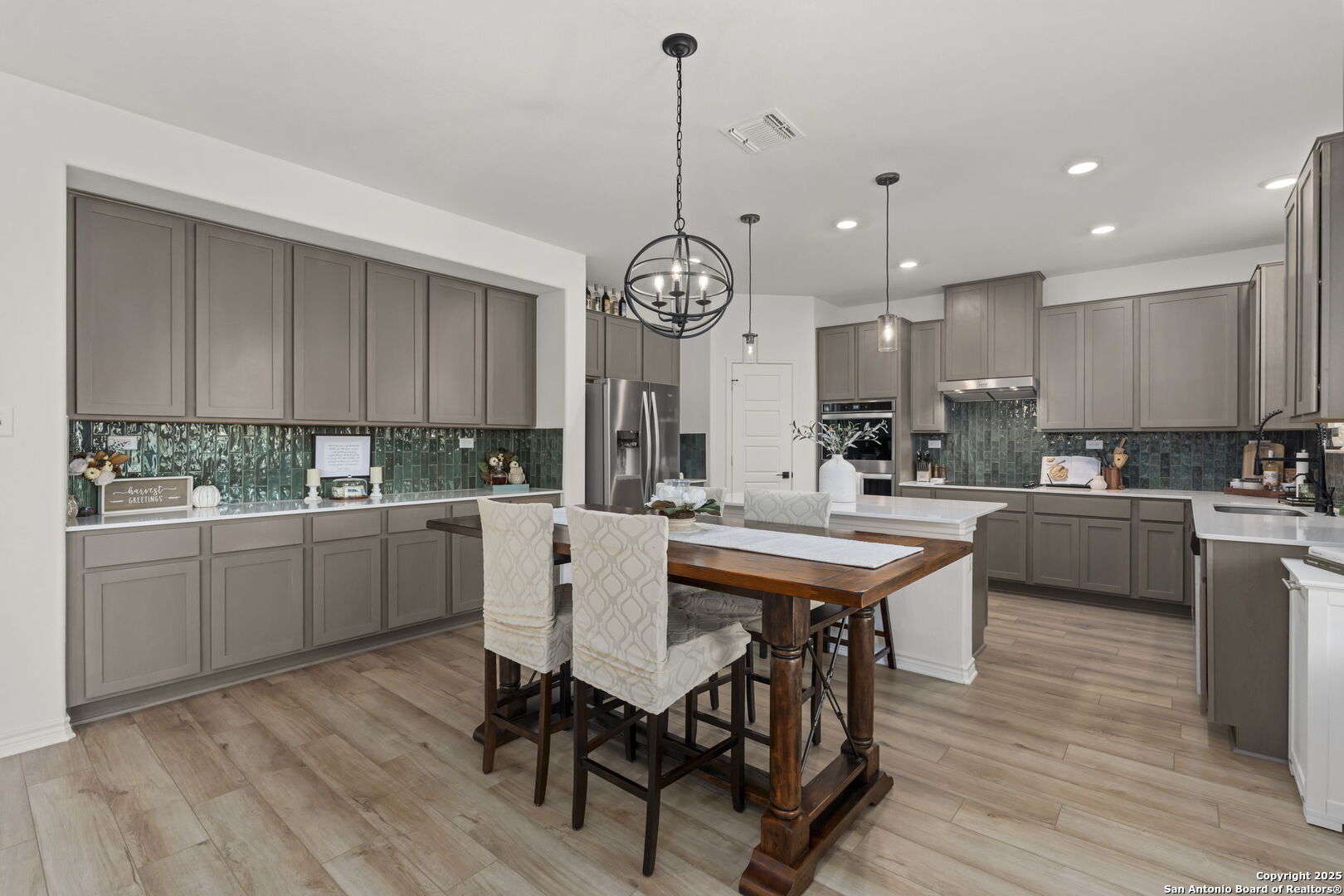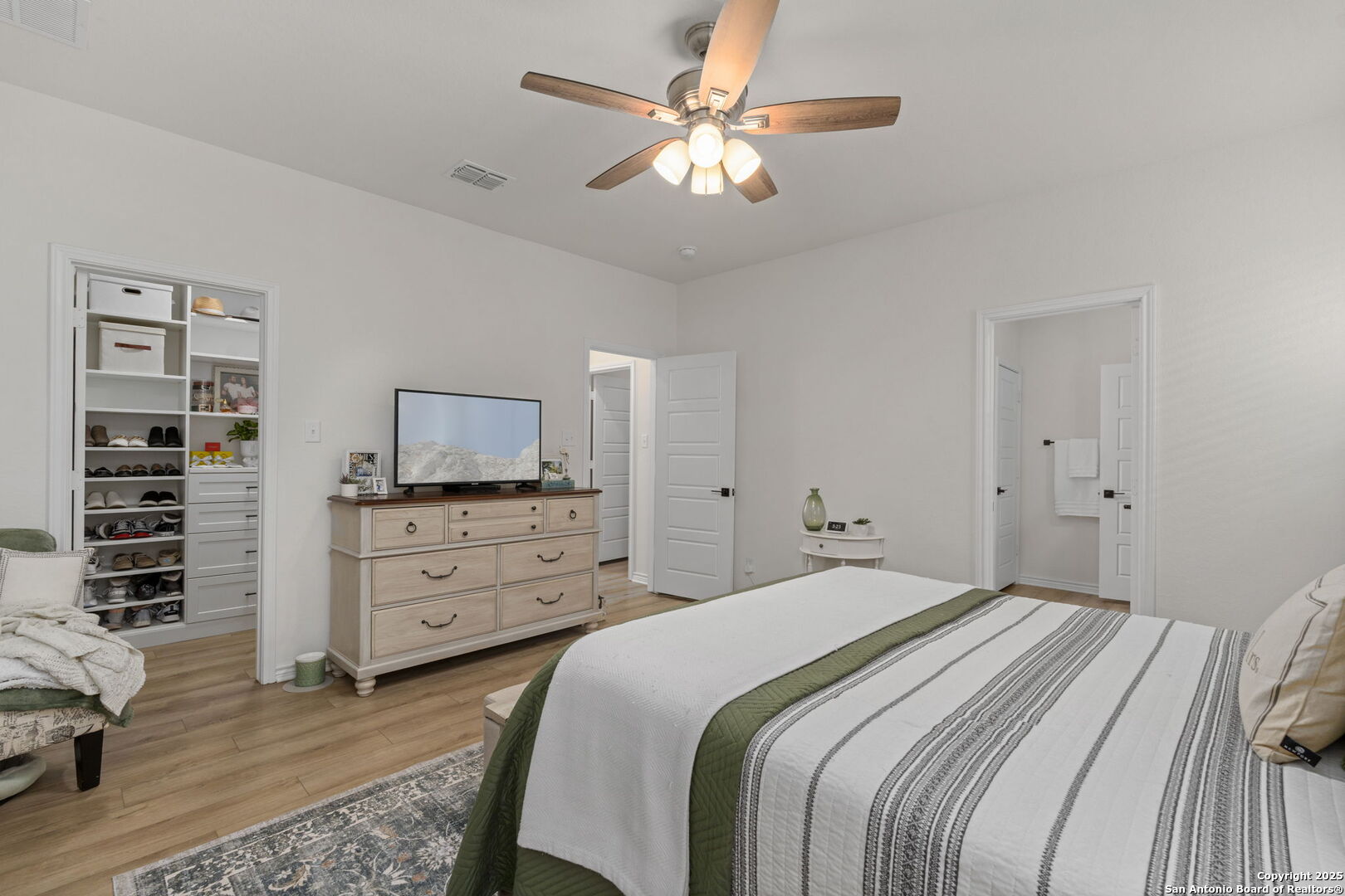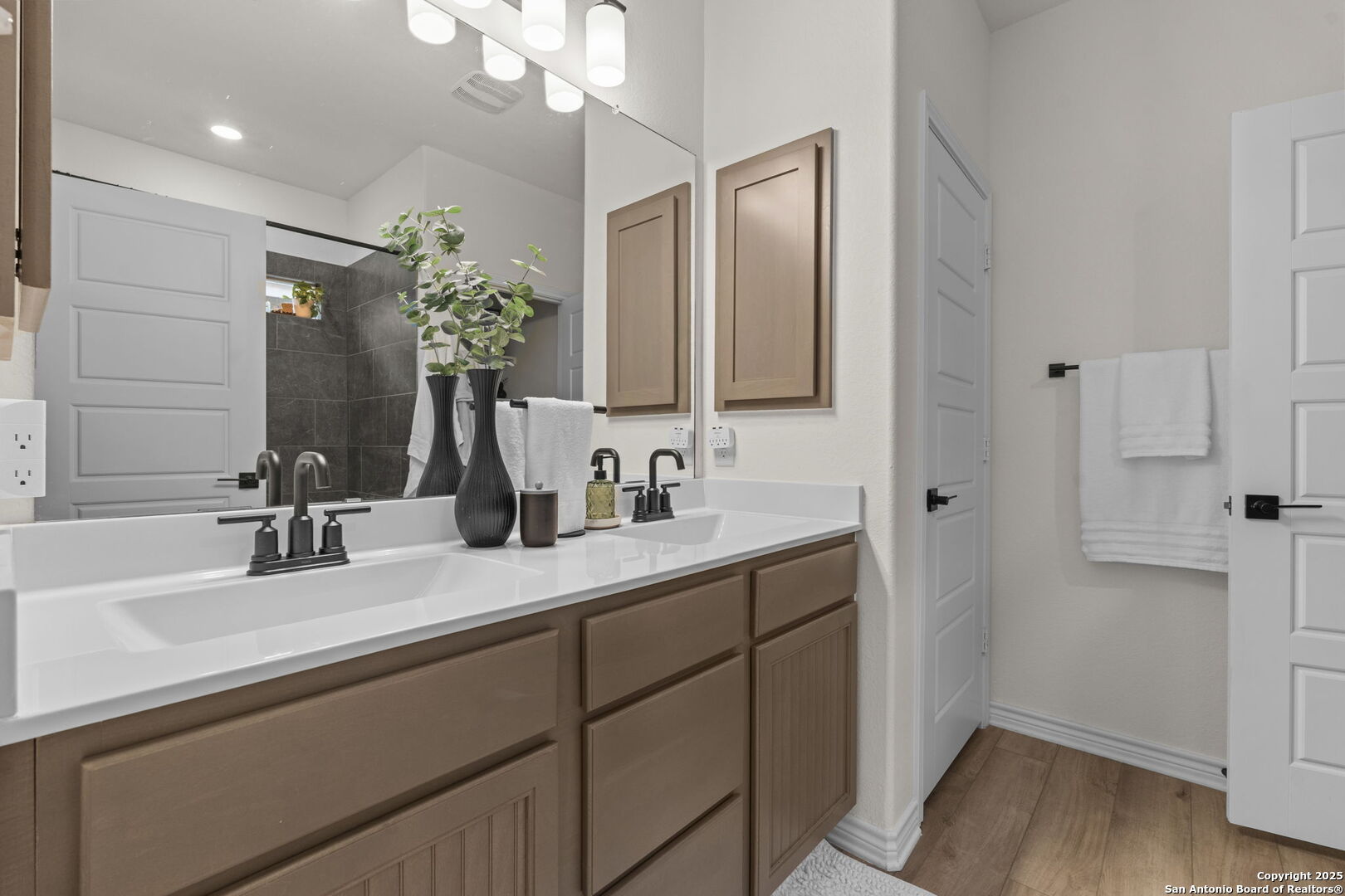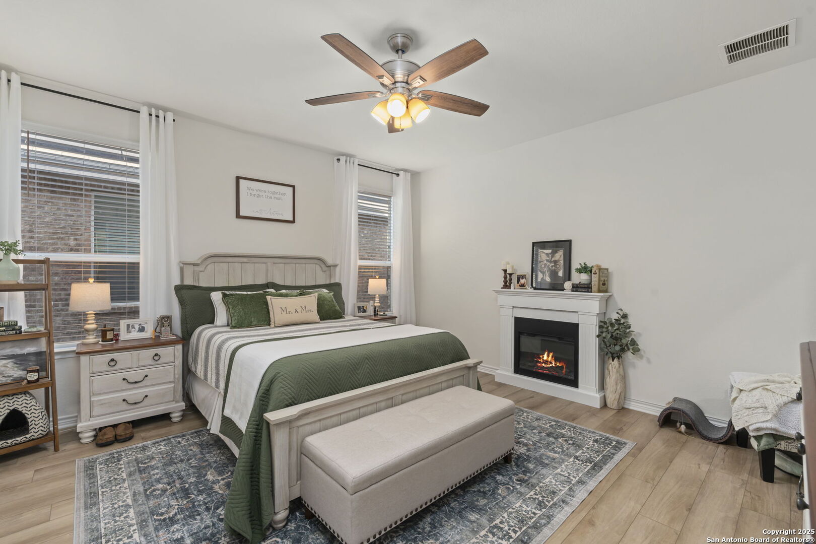 You have found home! This beauty is a must see. 1.5 story with great curb appeal welcomes you inside. Carpet free downstairs with an Inviting entry with updated ceiling light fixtures with 2 bedrooms up front with a full bathroom. Down the hall is a double door study with a huge closet perfect for storage. Hall leads you inside the kitchen that you will want to entertain guests in and hosts gatherings. Beautiful Backsplash with so many cabinets. Additional counter space off the dining area perfect for a coffee bar, drinks or kitchen gadgets. Built in appliances with double ovens, electric cook top and a window over the sink allowing natural light and view of trees. Island with pendant lighting perfect for additional seating and showing off those holiday platters. Dining area opens to the kithcen and living area. Primary bedroom is tucked away from the other rooms and living area offering great privacy with a walk in closet with custom built in shelving. Bathroom with double vanilty, Tub/shower and a linen closet. Laundry room with built in shelving. Upstairs you will find a great size bright open game room with engineered wood flooring and a full bedroom and bathroom perfect for a college student, secondary primary or for guests. Love the outdoors? This home has a wonderful oversized covered back patio with shade in the afternoon and has a view of the greenbelt with mature trees in your own yard. Flat and ready for game day BBQ's. This home is a true gem with so many extra features and you can see the pride of ownership the moment you step inside. No need to build since you can't find this 1.5 story style in this area for this price! A true single story with Bonus Room. No City taxes.