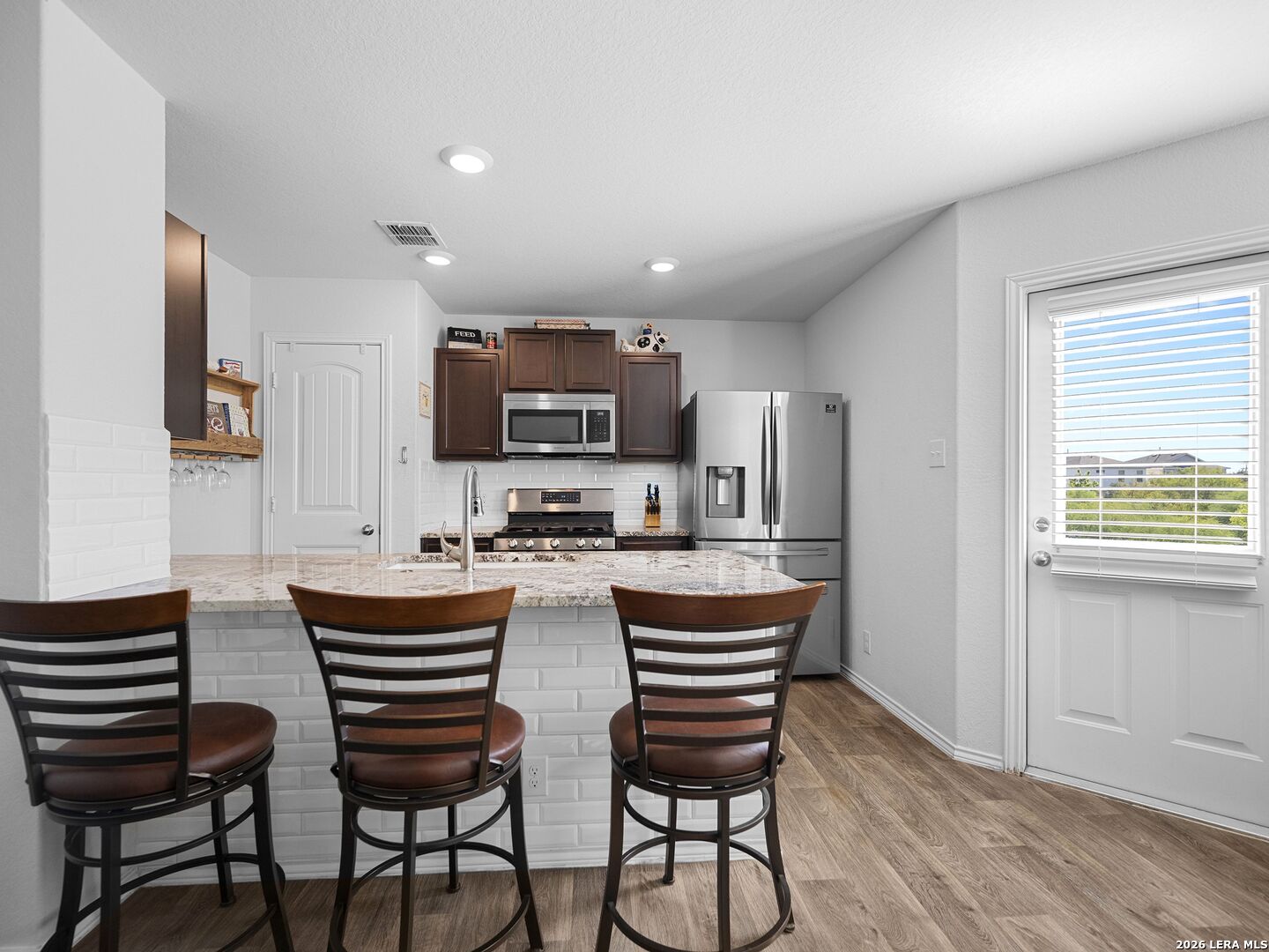 Welcome to this adorable one-story home featuring an open and inviting floor plan! Step into the beautifully updated kitchen with stunning granite countertops, a farmhouse sink, subway tile backsplash, upgraded 5-burner gas stove, and stainless steel appliances. Both bathrooms have been tastefully upgraded with granite countertops and tiled showers, while the spacious primary suite offers a large walk-in closet. Enjoy ultimate privacy in the large backyard that backs up to a serene greenbelt with no rear neighbors. The low-maintenance composite deck is perfect for relaxing or entertaining-this home truly has it all!
