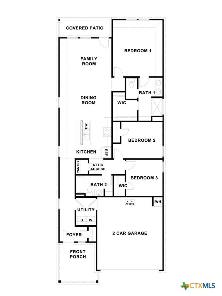 JUNE ESTIMATED COMPLETION DATE. NO REAR NEIGHBORS! Check out the Caroline, one of our one story new homes available at Mayfair in New Braunfels, Texas. This 3 bedroom, 2 bathroom home includes a 2 car garage all within 1,489 square feet of comfortable living space. Our homes in Mayfair feature front masonry exteriors. From the covered front porch, step inside the home and cross through the foyer and long hallway. The utility room is tucked away off the hall and connects to the garage, making it a perfect mud room. The heart of the home is the open concept living space. The kitchen, dining and family room flow seamlessly into the other, making this space perfect for creating lasting memories. The kitchen features quartz countertops, an island with undermount sink, stainless steel appliances, including a gas range, pantry closet, and 42” upper cabinets. Enjoy the natural light from the side and rear windows plus the 8’ to 9’ sloped ceilings in this comfortable room. The primary bedroom is located off the family room and includes an attached bathroom. Start your mornings off right in the private space that includes a walk-in shower, double vanity with quartz counter tops, private toilet area with a door, and a walk-in closet. The secondary bedrooms and bathroom are tucked away off the kitchen. Each secondary bedroom includes a closet with wood shelving and the hall bathroom includes a shower/tub combination. The Caroline includes vinyl flooring throughout the common areas of the home, and carpet in the bedrooms. All our new homes feature a covered back patio, full sod, irrigation system in the front and back yard, and a 6’ privacy fence around the backyard. This home features our America’s Smart Home base package, which includes the Video Front Doorbell, Front Door Deadbolt Lock, Home Hub, Thermostat, and smart switc