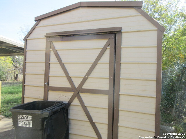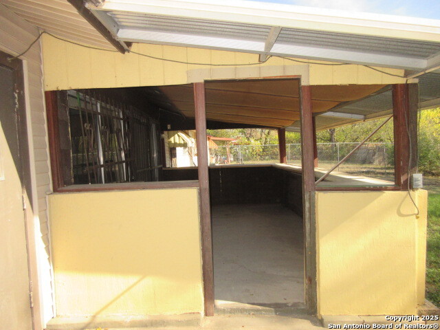 This property is a one-story, three-bedroom slab home that is competitively priced for a quick sale. Key features include a converted garage that functions as an additional family room, a covered carport, and a 16'x9' covered patio, which is ideal for entertaining. Inside, the home offers custom shelving in both the living and dining rooms for extra storage, and the exterior features a storage shed with electricity.