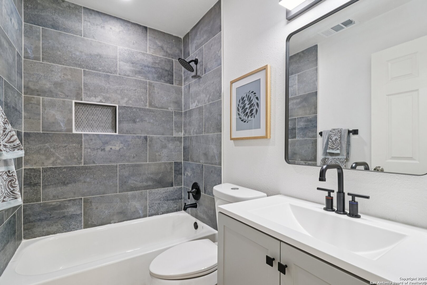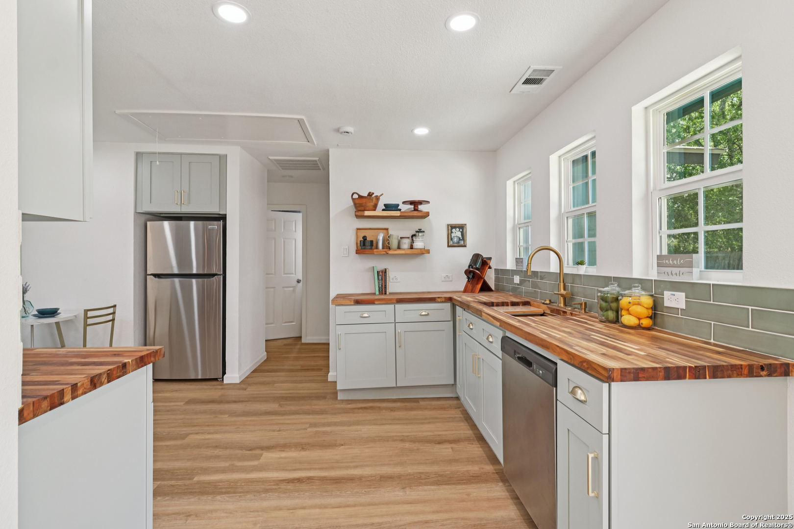 Beautifully Renovated Home Near Lackland AFB! This charming San Antonio home has been completely renovated from top to bottom! Every detail thoughtfully updated with quality craftsmanship. Located just minutes from Lackland Air Force Base, this home is move-in ready and full of character. Inside, you'll love the light, bright, and open layout. The beautifully updated kitchen is the heart of the home perfect for entertaining. The cheerful living area is ideal for cozy movie nights with the family. The primary suite is privately situated apart from the secondary bedrooms, and both bathrooms have been stylishly updated. Outside, enjoy the spacious backyard, great for BBQs and gatherings, plus a convenient storage shed. NEW ROOF ON HOME AND SHED, NEW AIR HANDLER ON A/C, NEW PAINT THROUGHOUT,, UPDATED BATHROOMS, ALL NEW APPLIANCES, ALL NEW KITCHEN & COUNTER TOPS, NEW LIGHTING, NEW FLOORING, NEW FIXTURES, NEW WINDOWS, NEW EXTERIOR DOORS AND MORE! Be sure to explore the transformation book in the kitchen and the virtual tour this sweet home and neighborhood truly feel just right!
