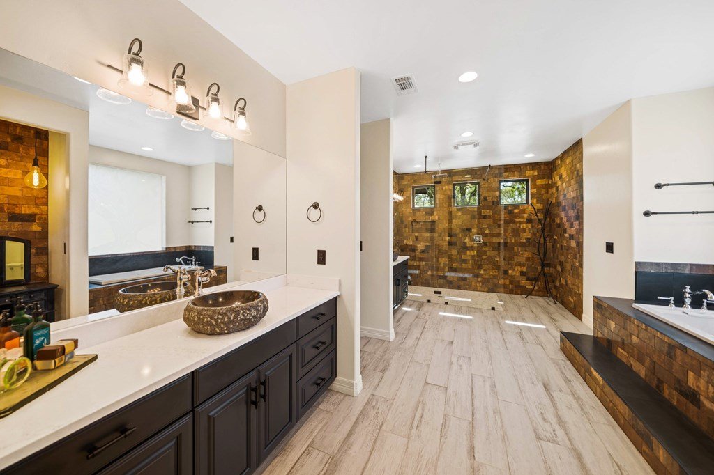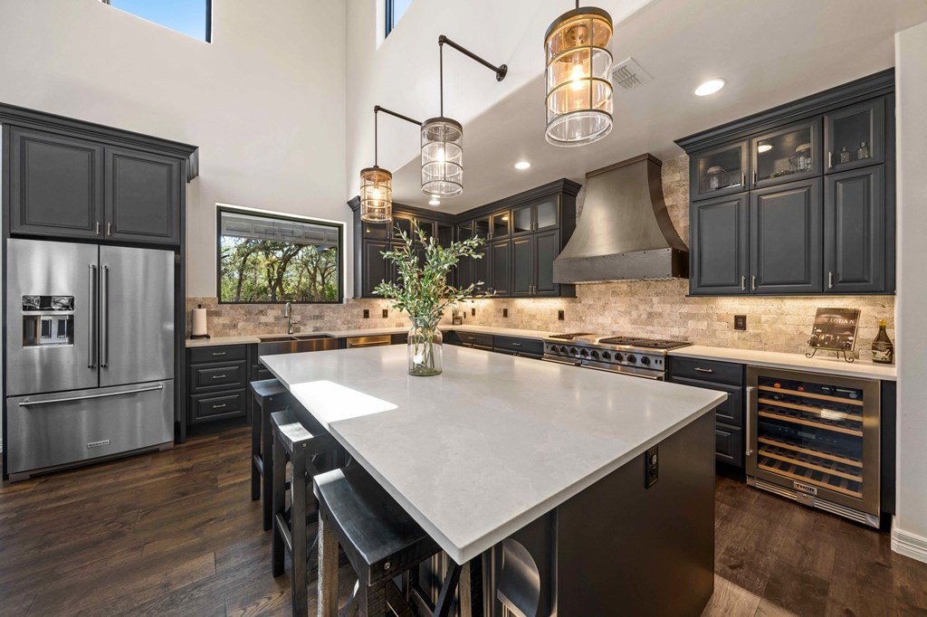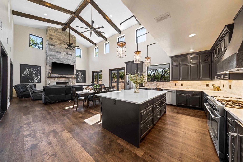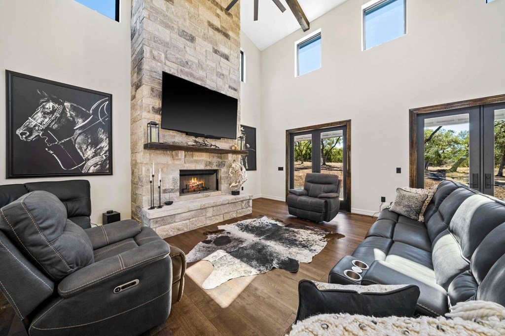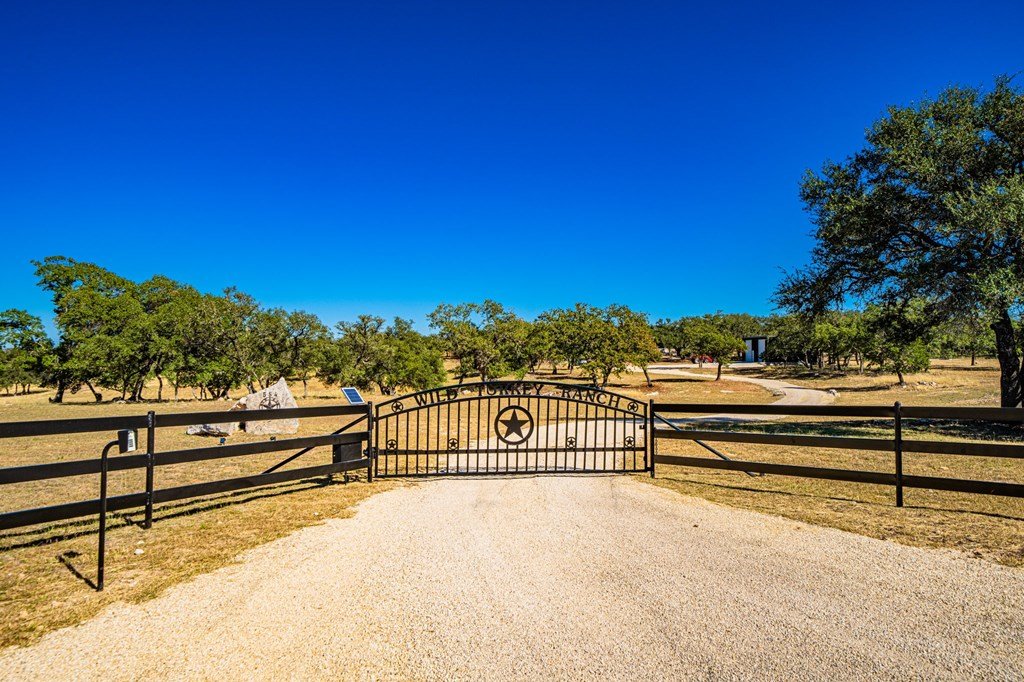 Picturesque Hill Country retreat nestled in the quite gated ranch community of Scenic Oaks. Ideally situated roughly 10 miles from Kerrville and 20 miles from Fredericksburg. Wild Turkey Ranch offers a beautiful custom home built in 2022 with soaring 22' ceilings, huge kitchen with commercial range with double ovens and Kitchenaide appliances, a large island, and walk-in pantry. The great room has huge windows and a floor to ceiling rock fireplace. A large master suite with private porch and huge bath. There is a large office with huge windows, and wrap around covered porches with outdoor fireplace. The house has an Kinetico water softener and a solar powered back up generator with extra batteries. The property offers chip and sealed roads, a new water well and a 30'x40' insulated metal barn. The rolling terrain has wonderful native grasses, and lots of beautiful oaks. It offers tremendous views of the surrounding Hill Country while still being horse and livestock friendly. There is plentiful wildlife for the hunter and wildlife enthusiast. This property's location allows for tons of peace and quiet, along with a lot of privacy, while still being close to the amenities of town. It's a wonderful place to relax and watch the evening stars.