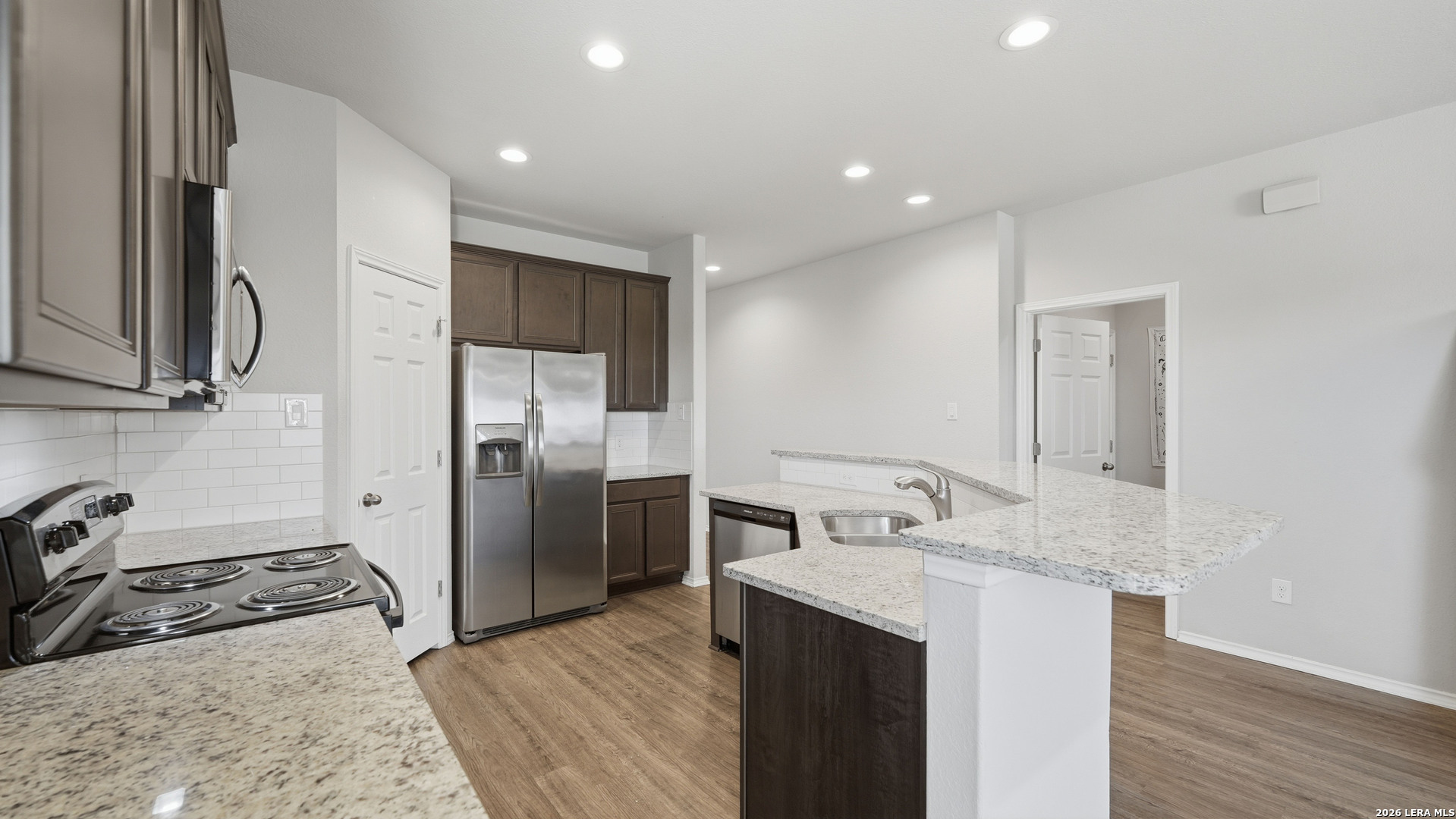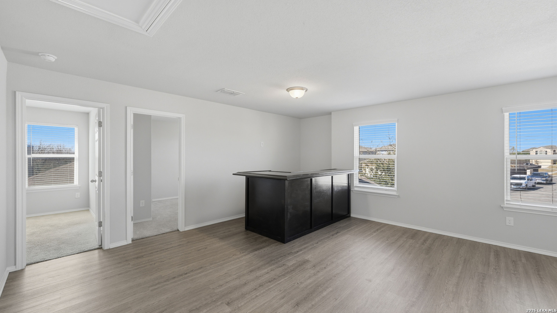 This one-owner home is move-in ready and shows like new. The owner has freshly painted the entire interior, creating a clean canvas for the next homeowner. Built on a desirable semi-cul-de-sac lot backing to open farmland, this property offers privacy and serene views. The Walsh floor plan by Rausch Coleman features a modern, open-concept design with 3 bedrooms and 2.5 bathrooms. The spacious master suite includes a luxurious ensuite with a 60" walk-in shower, garden tub, and double sinks-perfect for relaxation. Entertain in style with the built-in game room bar and covered pergola over the patio, ideal for hosting gatherings while enjoying peaceful views of the expansive field beyond. The kitchen features granite countertops and stainless steel appliances, while luxury vinyl plank flooring throughout the home provides a modern look that's easy to maintain. With no rear neighbors, this home combines modern comfort with a peaceful setting. Located between New Braunfels and Seguin, it offers quick access to I-35 and I-10, with nearby Creekside shopping and dining just minutes away. The open floor plan, thoughtful upgrades, and prime location make this a must-see property. This home is also available for rent. Schedule your showing today!