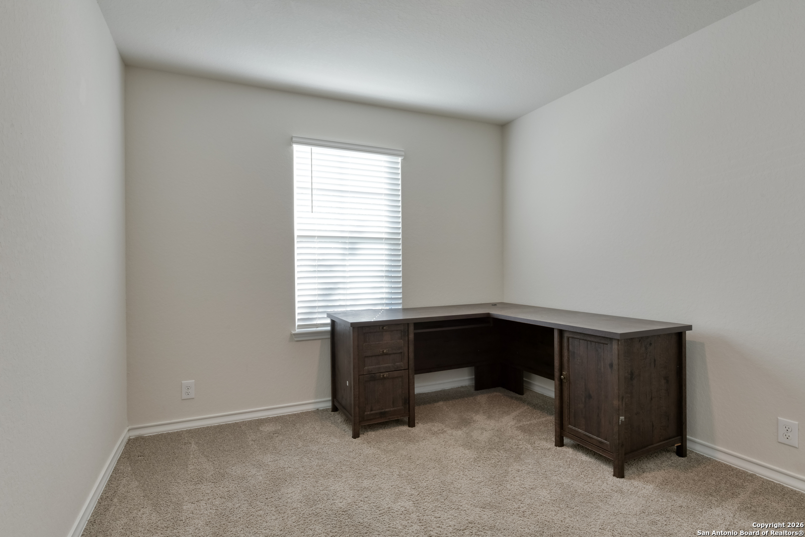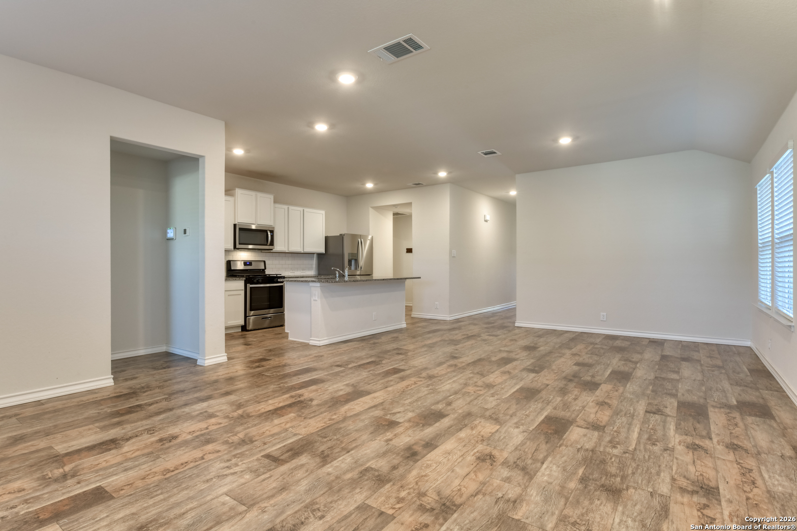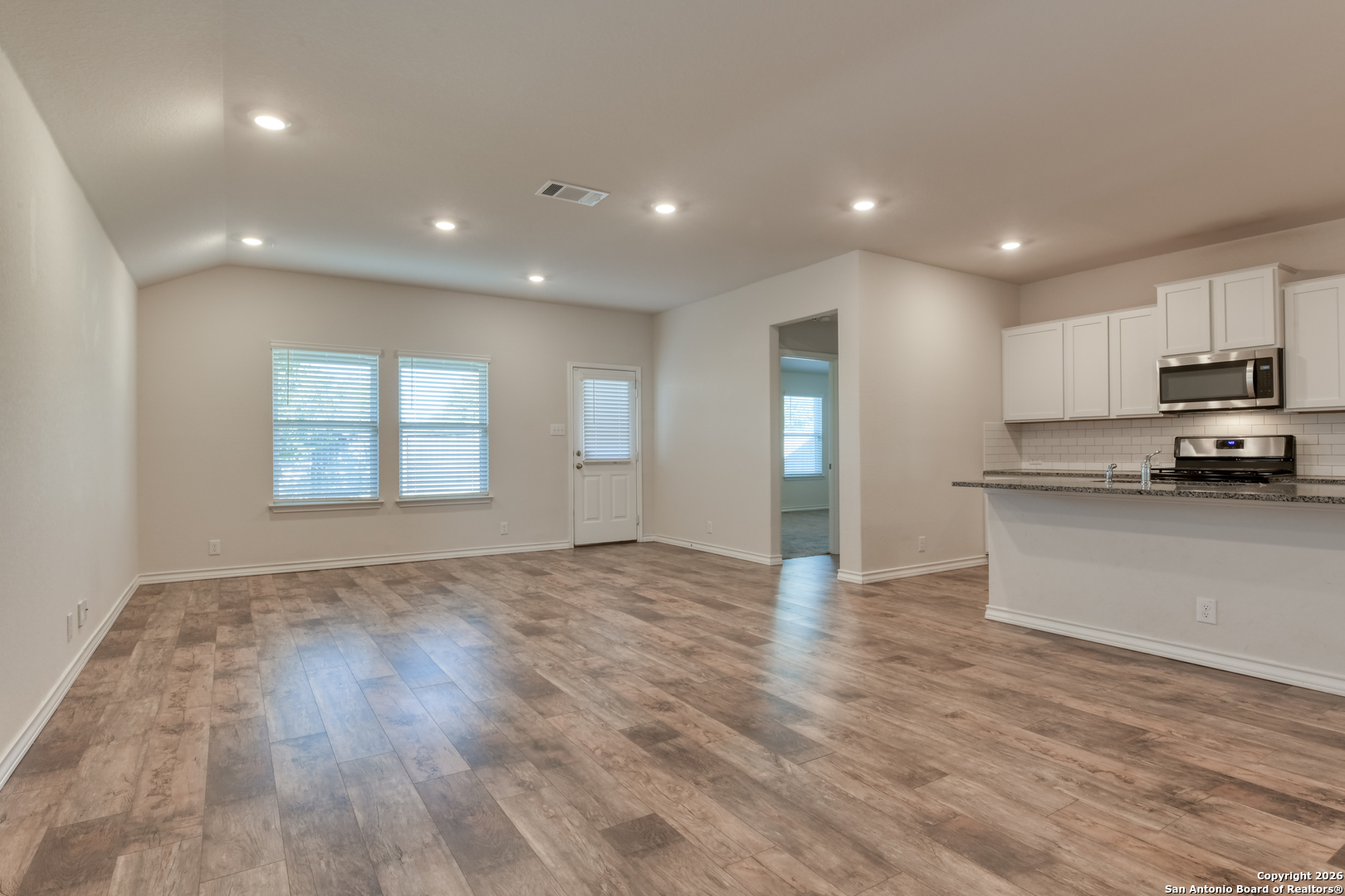 This one-story home features 3 bedrooms, 2 baths, and 1595 square feet of living space. The stunning elongated entryway leads to two guest bedrooms, a second full bathroom and opens to a centrally located, open-concept dining room, kitchen, and family room. The kitchen includes a breakfast bar with beautiful granite counter tops, stainless steel appliances, gas cooking range, and classic white subway tile backsplash. An oversized utility room is located off the spacious, elongated pantry. The primary bedroom suite features an attractive walk-in shower, separate water closet and spacious walk-in closet. The standard covered patio is located off the family room.