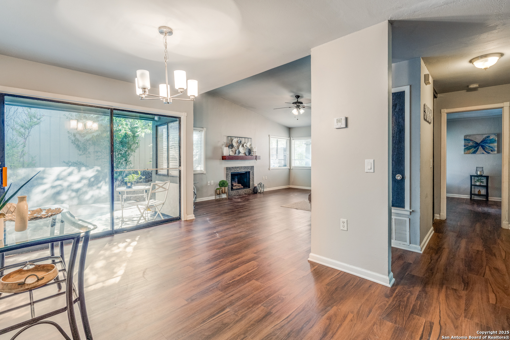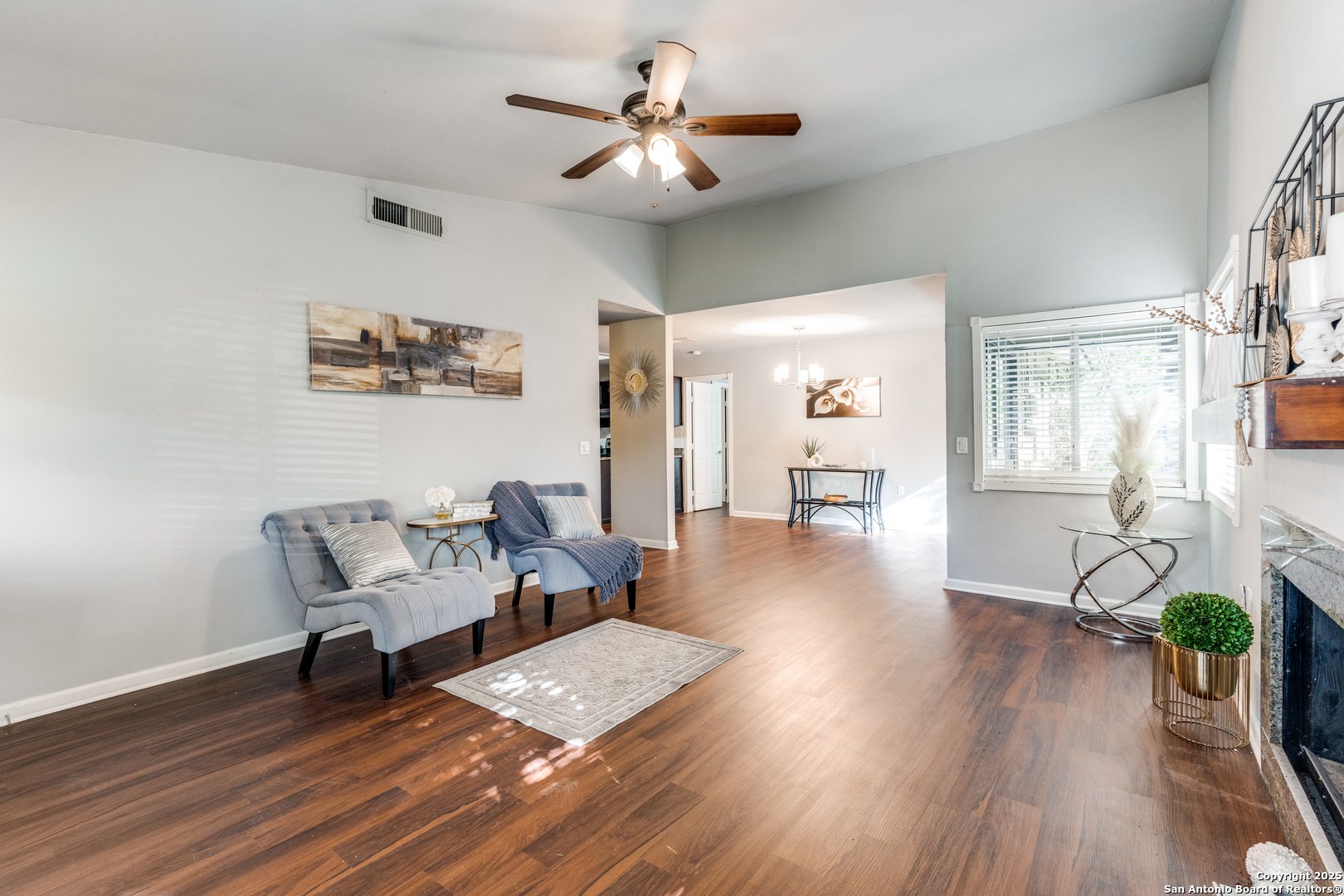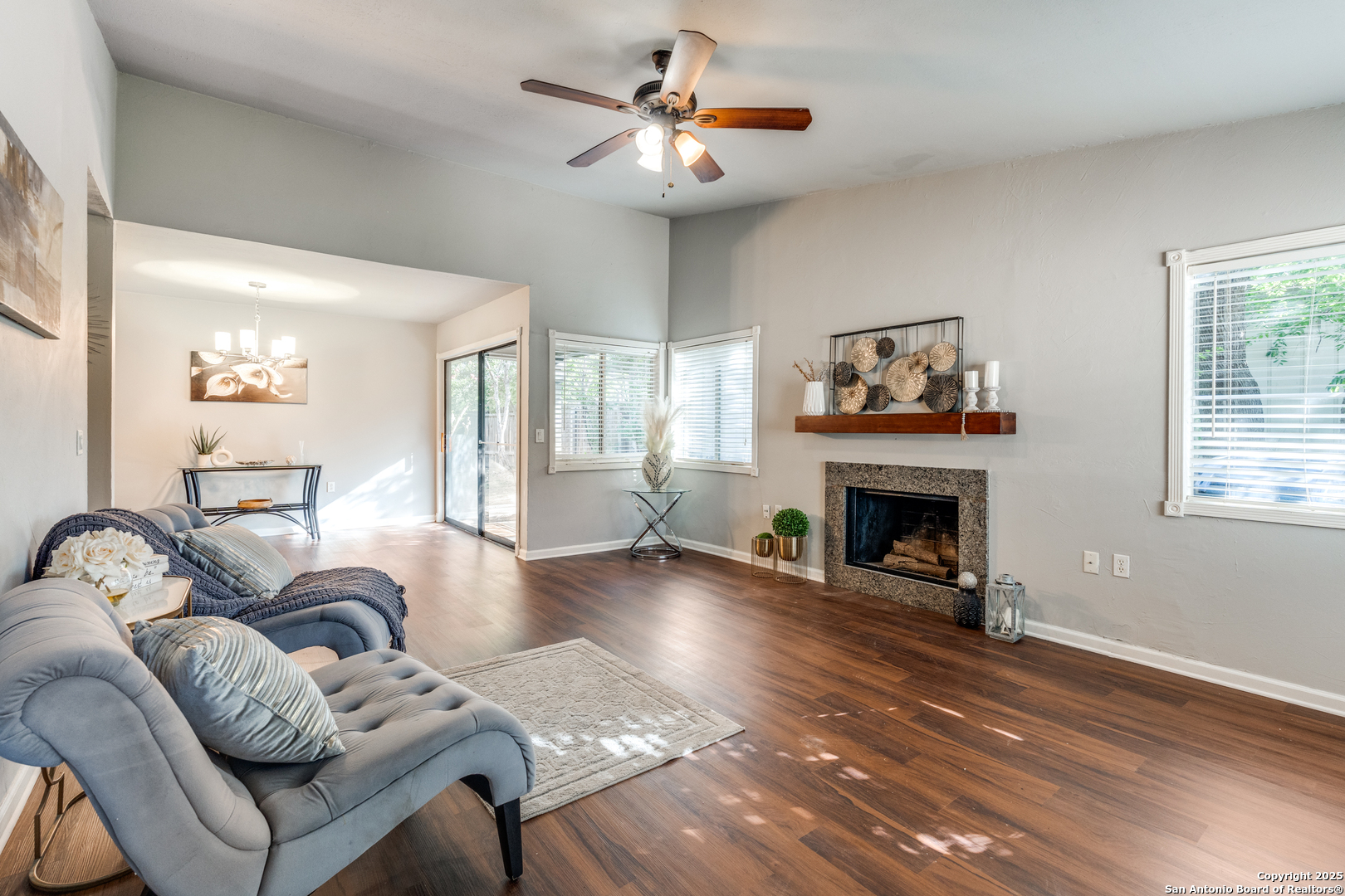 Welcome to this charming one-story gem nestled in a well-established neighborhood! This beautifully maintained 2-bedroom, 2-bathroom home offers a spacious open floor plan and a 2-car garage, making it both comfortable and functional. The inviting living and dining area features a cozy fireplace perfect for relaxing evenings at home. The kitchen is a standout with custom cabinets, granite countertops, and an abundance of natural light that brightens the space throughout the day. Step outside to enjoy a large, private backyard complete with a privacy fence and both covered front and back patios, ideal for spending time with family and friends. Conveniently located near The Forum at Olympia Parkway Mall, as well as shopping and dining, and with easy access to Loop 1604 and I-35. You have to see it to appreciate everything this lovely home has to offer, both indoors and outdoors!"Don't wait to see this property!!!