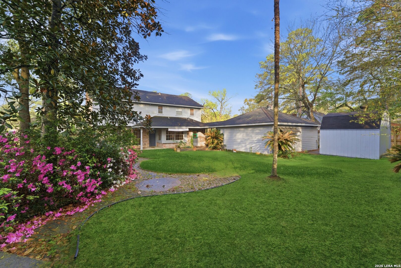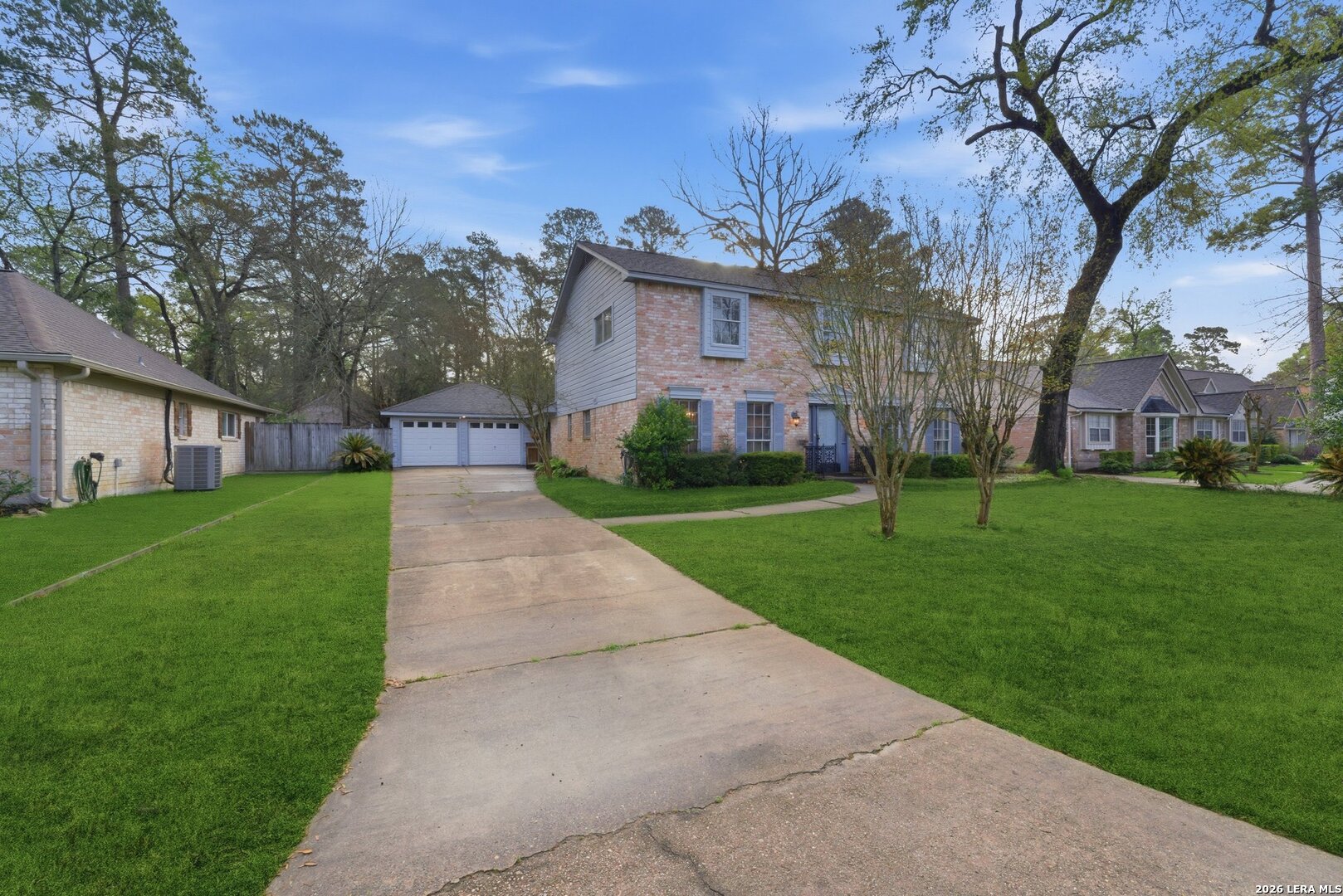 Charming traditional 2 story home located in the established golf course community of River Plantation. This 4 bedroom 2 1/2 bath home sits on a beautiful lot with mature trees, both shaded and privacy in a serene setting on a culdesac. Inside you will find a spacious layout featuring a cozy family room with fireplace and bookshelves perfect for relaxing or entertaining. The home includes numerous built-ins adding character and functional storage throughout. A detached garage provides additional flexibility and curb appeal. While the home offers great bones and timeless features, it presents a wonderful opportunity for updates and customization to suit your personal style. Enjoy peace of mind knowing the home has NEVER flooded. Residents can benefit from a variety of amenities including a community pool, golf course, tennis courts and more all within a scenic tree filled neighborhood. Easy access to shopping, dining and major thoroughfares make this a great location.