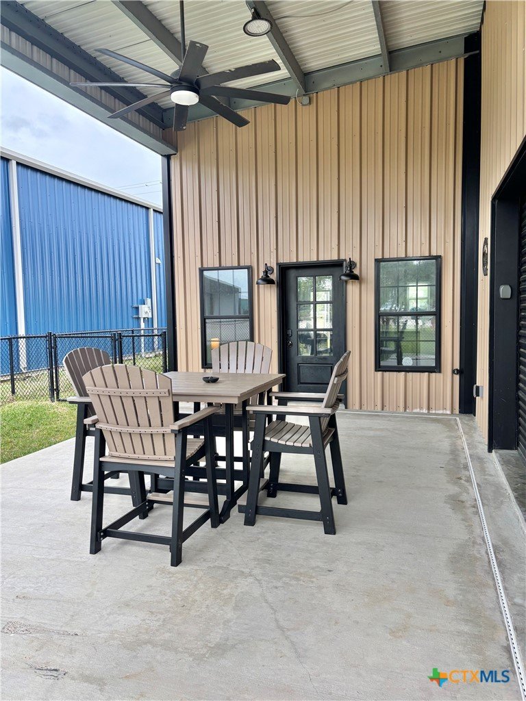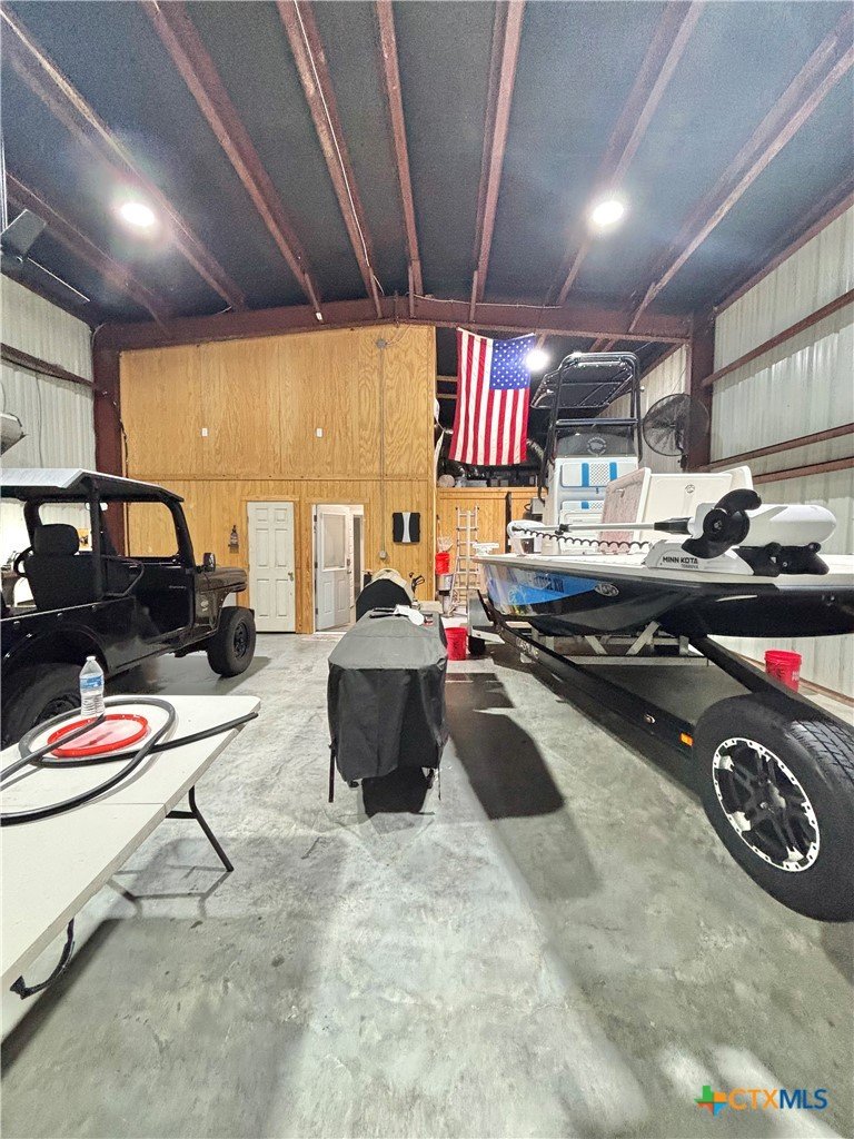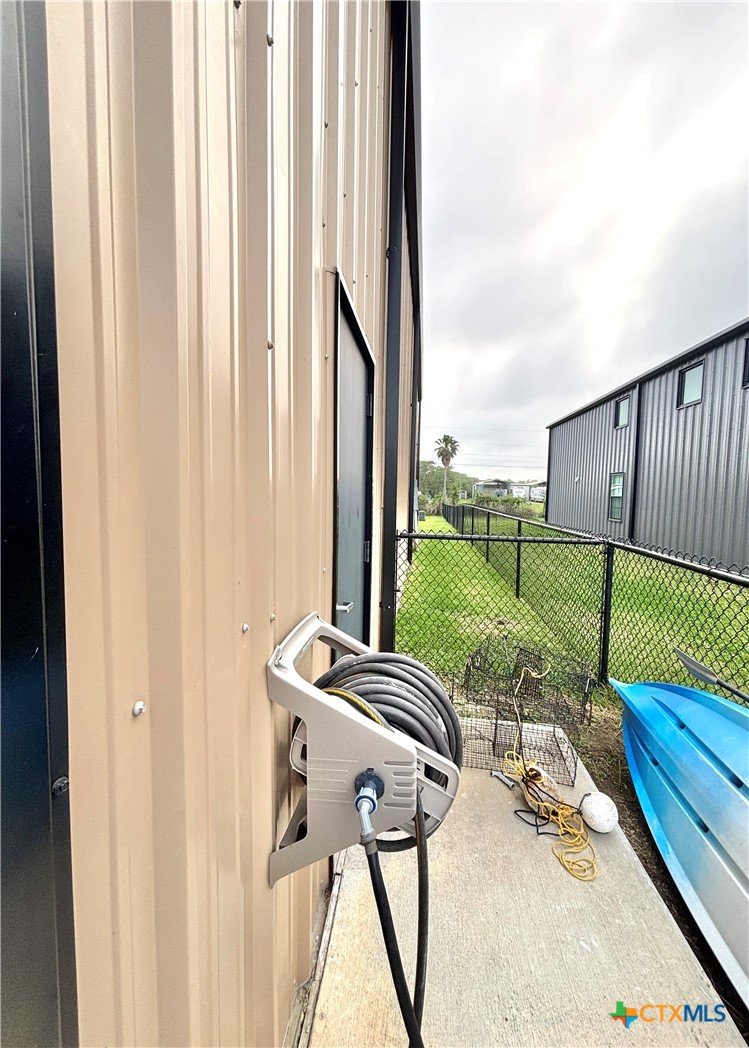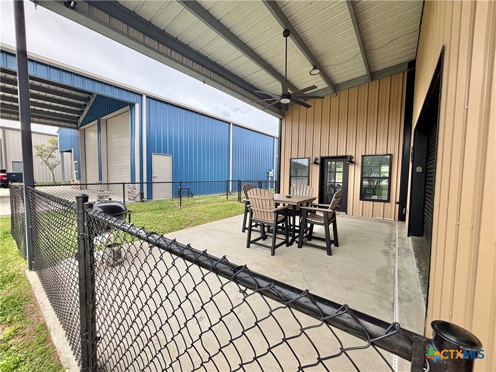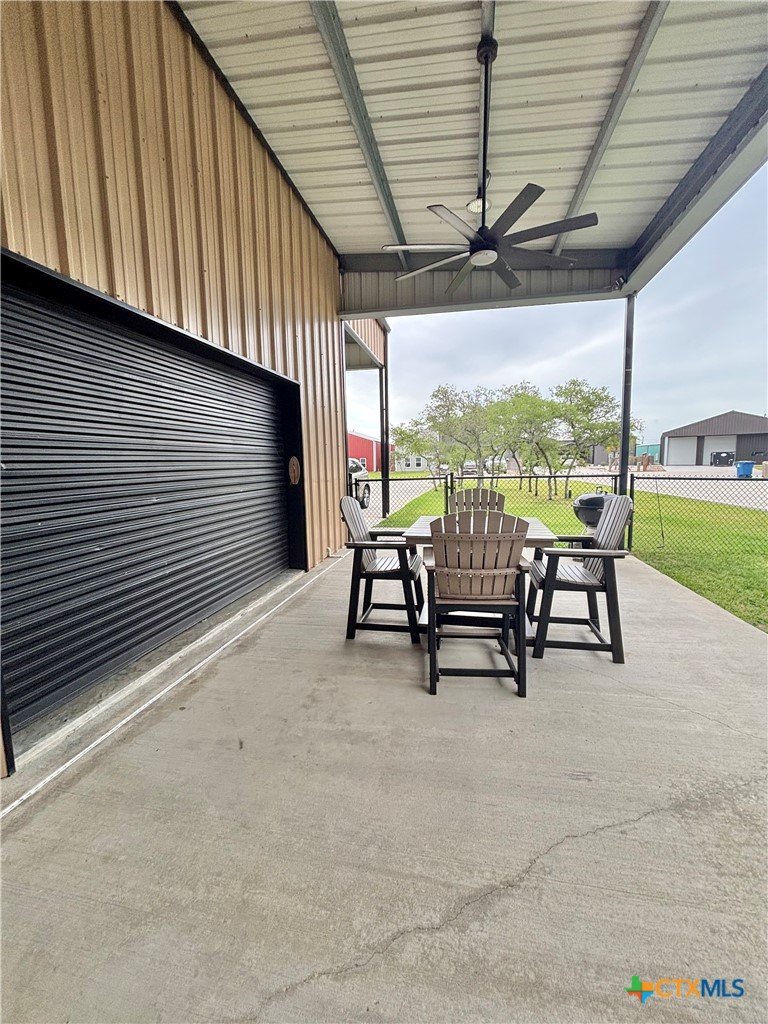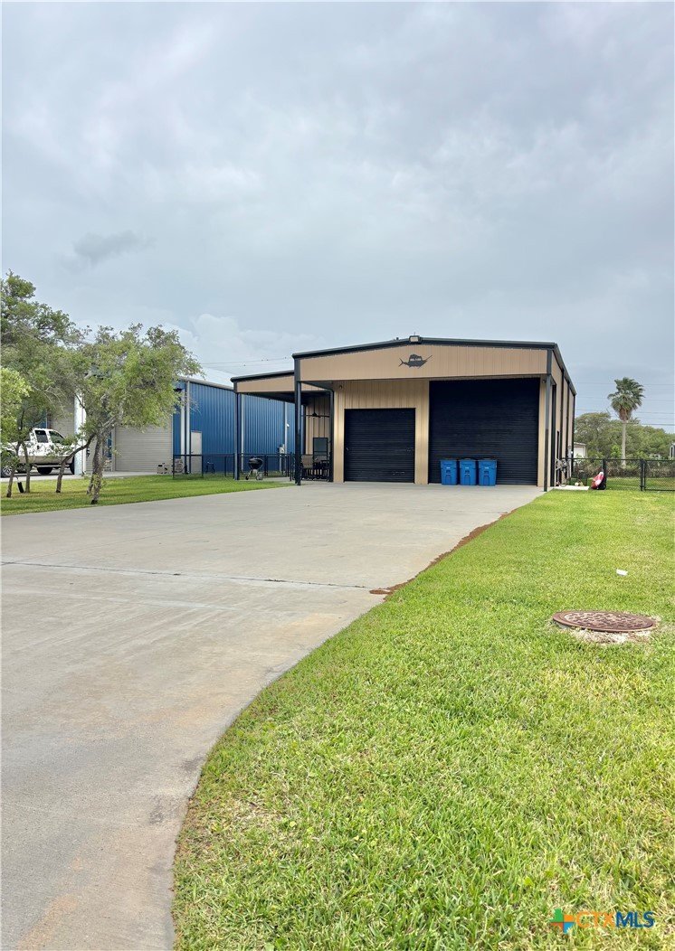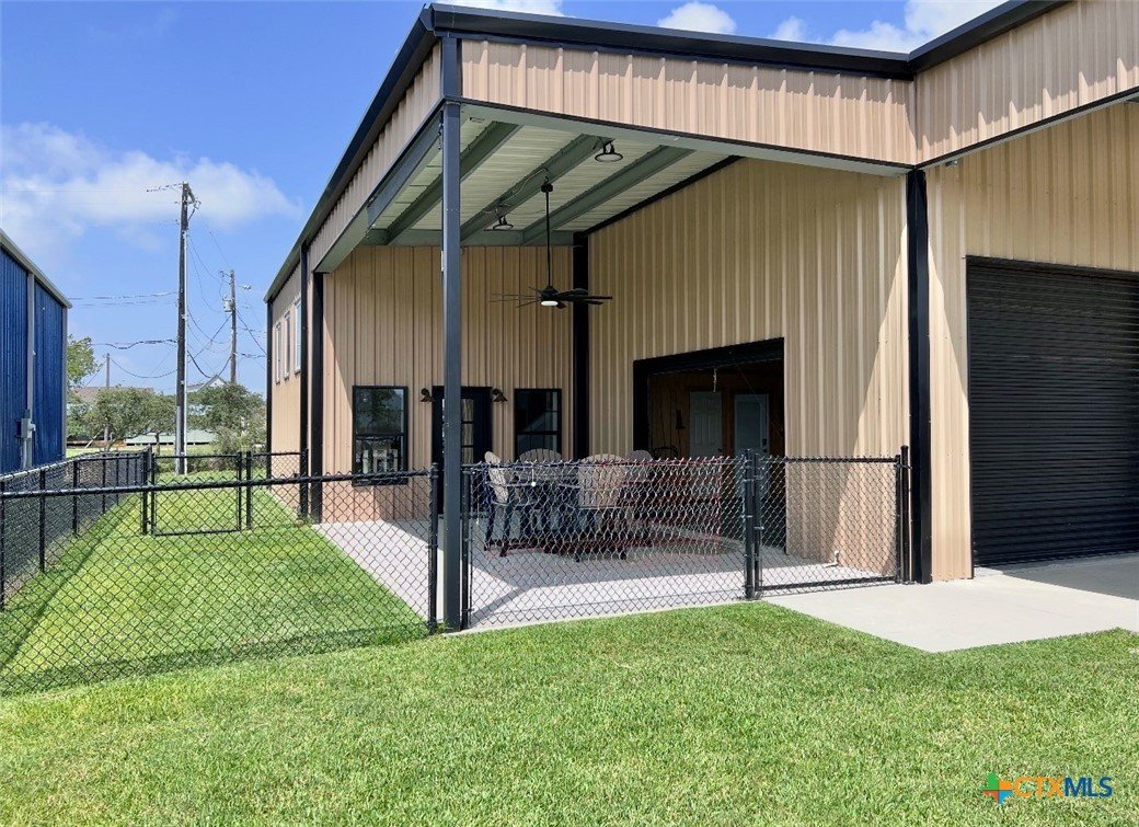 East facing 3 bed, 2 bath w/3 roll up garage doors in gated West Bank subdivision. Indirect light brightens the living and kitchen areas of this 2 story open concept barnominium with modern accents in a gray and white color scheme. Living room chandelier, drop lights in kitchen over granite countertops with subway backsplash, electric stove and built-in microwave. Glass back door lets out to large, fenced backyard and North/South side yards, to front yard. Large concrete driveway, on right, accommodates multiple cars/trucks and Canopy over 1/2 of driveway provides shade. Two, tall roll up Boat Stall doors face driveway. Adjacent half rollup garage door provides breeze to adjoining patio and allows access to garage. Covered patio adjoining front door is gated with privacy provided by large shade tree, in front yard. First floor includes utility room with door into garage, plus two bedrooms and one bath w/tile shower. First bedroom has two built-in bunkbeds; great for kids and visitors. Second bedroom has large closet and accommodates a queen bed. Upstairs, a large master bedroom and master bath with Tile tub/shower enclosure create a private get-away for Owner. Backyard has room for swimming pool, or kids play area. Kitchen w/electric oven, built-in microwave, farm style sink, Center Island, great for sharing a fish fry to pizza with the kids! See you in POC soon, to see a 3/2 Barndo w/ 2 Stall Boat Barn under $450K!