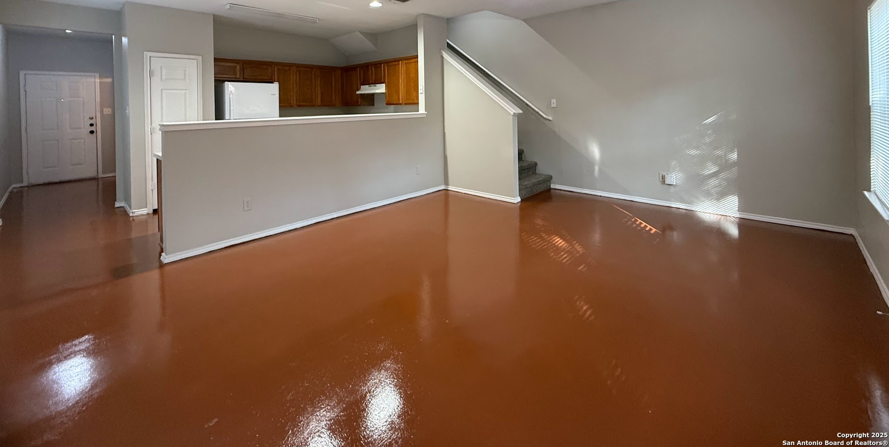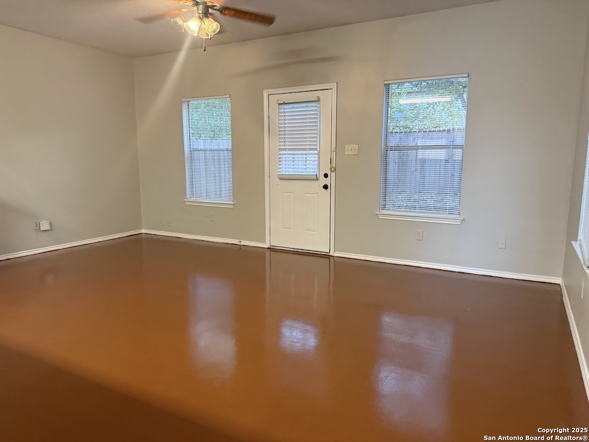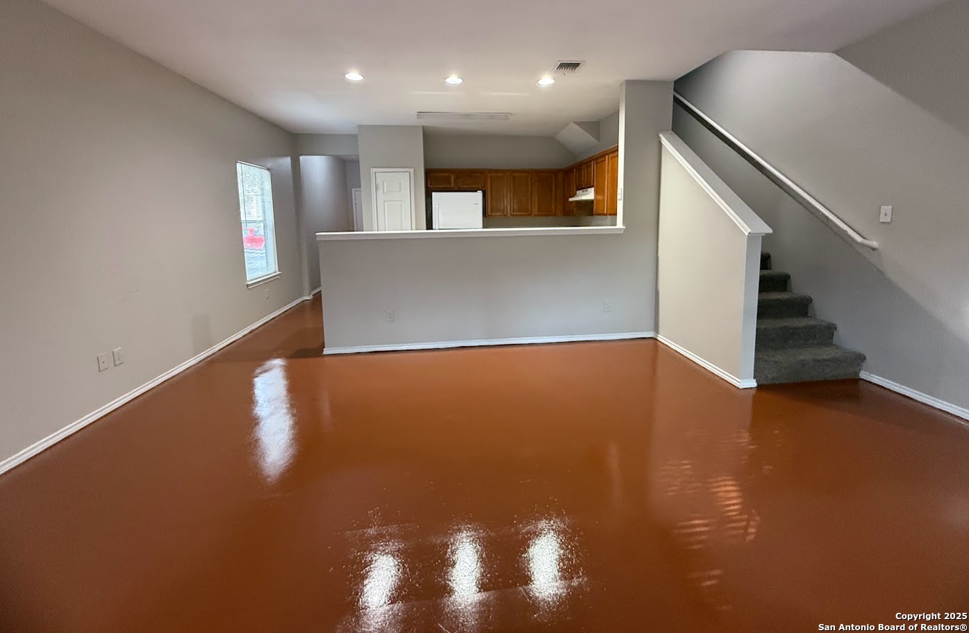 Welcome to this inviting 3-bedroom, 2.5-bath duplex offering 1,321 sq. ft. of comfortable living space. The open main level features stained concrete floors, a spacious living area, and a charming galley kitchen with ample cabinet space. Upstairs, all bedrooms include ceiling fans and generous closet space. Enjoy a private backyard with a 6' fence-perfect for pets, play, or relaxing outdoors. Just minutes from Woodlake Golf Course, Randolph AFB, and Fort Sam Houston, with easy access to I-10 and Loop 1604. A great opportunity to lease a well-maintained home in a convenient location-schedule your showing today!