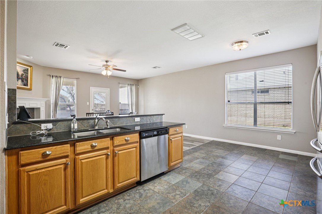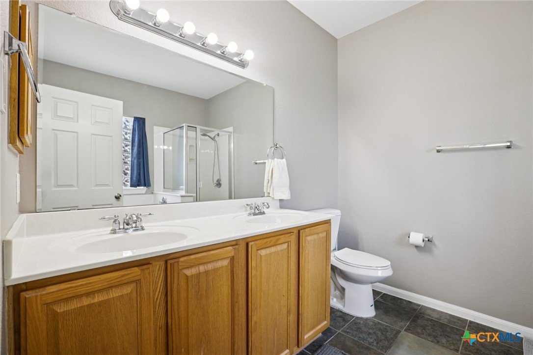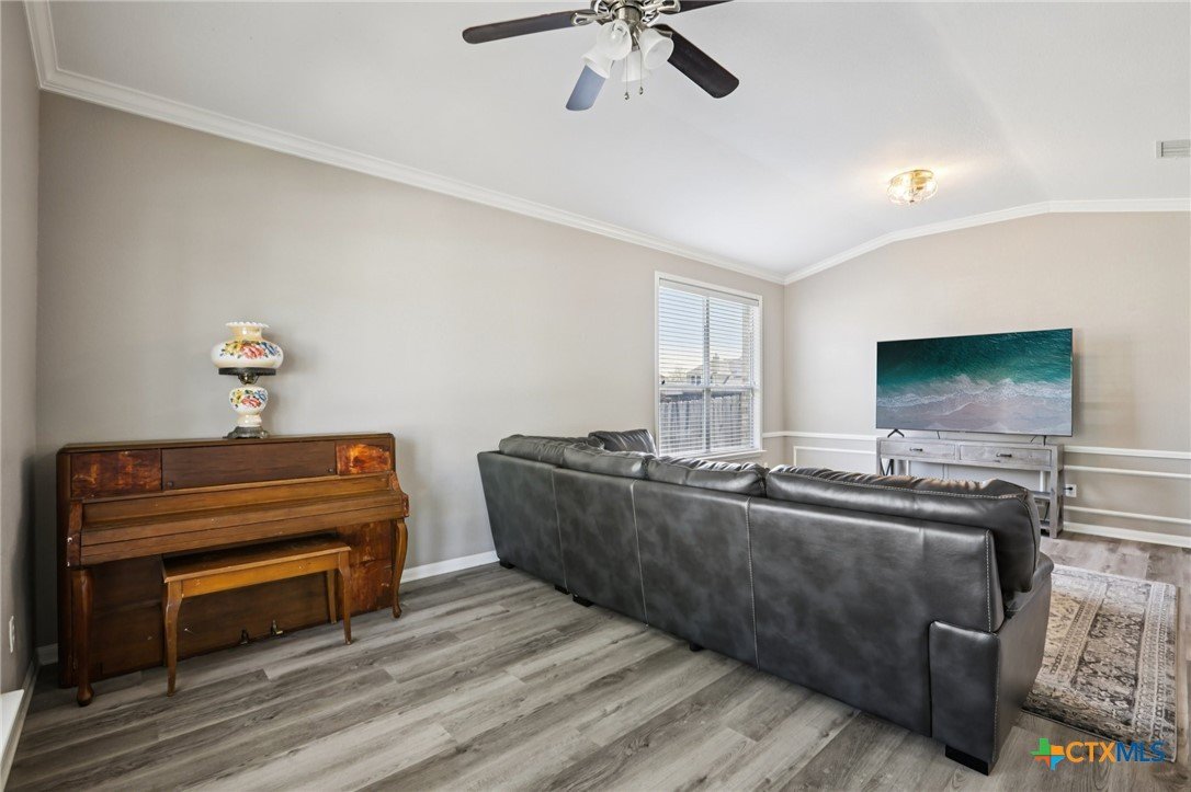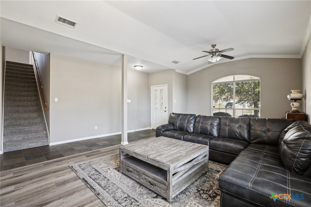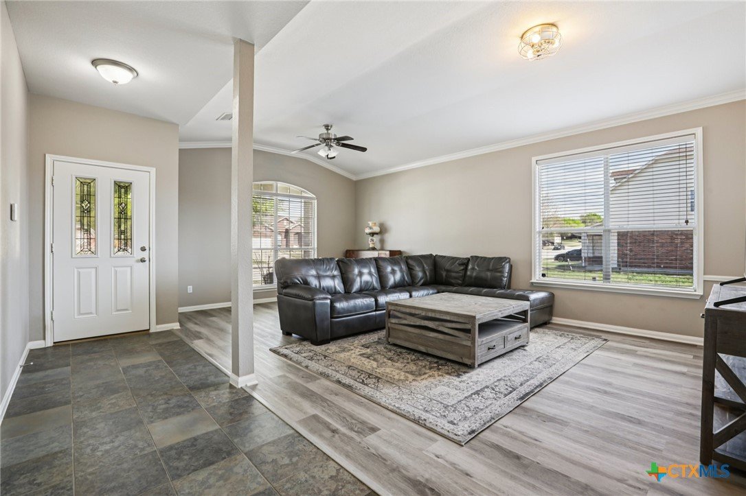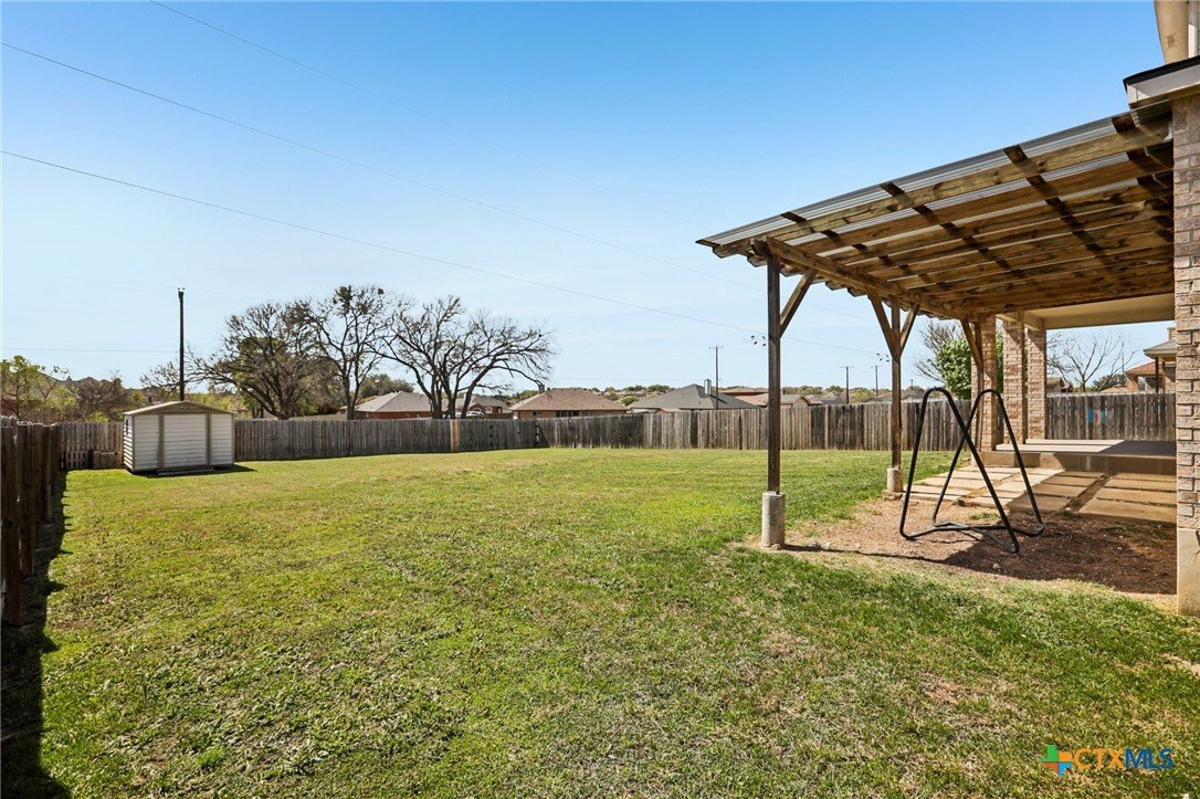 Spacious and inviting, this well designed home in Killeen offers a functional layout with room to live, work, and entertain. High ceilings elevate the main living room, creating an open and airy feel, while a unique dining space with its own fireplace adds warmth and character. The kitchen is complemented by a cozy breakfast nook, perfect for casual meals, and a generously sized laundry room on the main level adds everyday convenience. The primary suite is located on the main level, featuring an ensuite bath with dual sinks, a jetted tub, separate shower, and a spacious layout designed for comfort. Upstairs, you’ll find a large game room along with all secondary bedrooms and a full bath, offering a great separation of space. Out back, enjoy a fenced backyard complete with a covered patio, pergola, and a storage building. Located within the Killeen Independent School District, this home is part of a growing community with convenient access to shopping, dining, and everyday essentials. Nearby Interstate 14 and US Hwy 190 make commuting simple, while the surrounding area continues to expand with new development and local amenities. This home offers space, comfort, and a convenient location. Schedule a tour today. Discounted rate options and no lender fee future refinancing may be available for qualified buyers of this home.