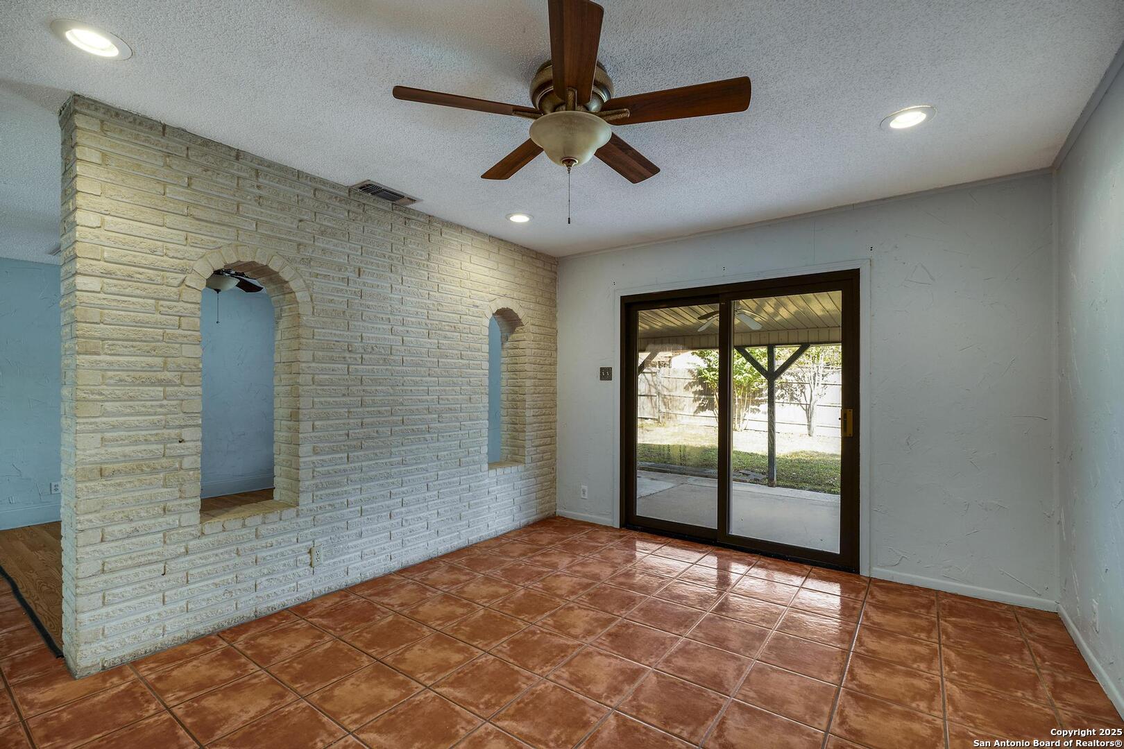 Charming 3-Bedroom Home Near Medical Center Move-in ready 3-bed, 2-bath home on a spacious corner lot in a quiet neighborhood near the Medical Center. This single-story gem features an open layout with no carpet, a bright kitchen with Spanish-style tile, and a cozy breakfast nook. The bathrooms also feature coordinating Spanish-style tile, adding charm and character throughout. The spacious primary suite offers a private bath and walk-in closet, while the large backyard with mature trees provides the perfect outdoor retreat. Complete with a two-car garage and extended driveway, this home combines comfort and convenience. Located just minutes from Loop 410, USAA, UT Health, and shopping and dining options. Don't miss this fantastic opportunity!