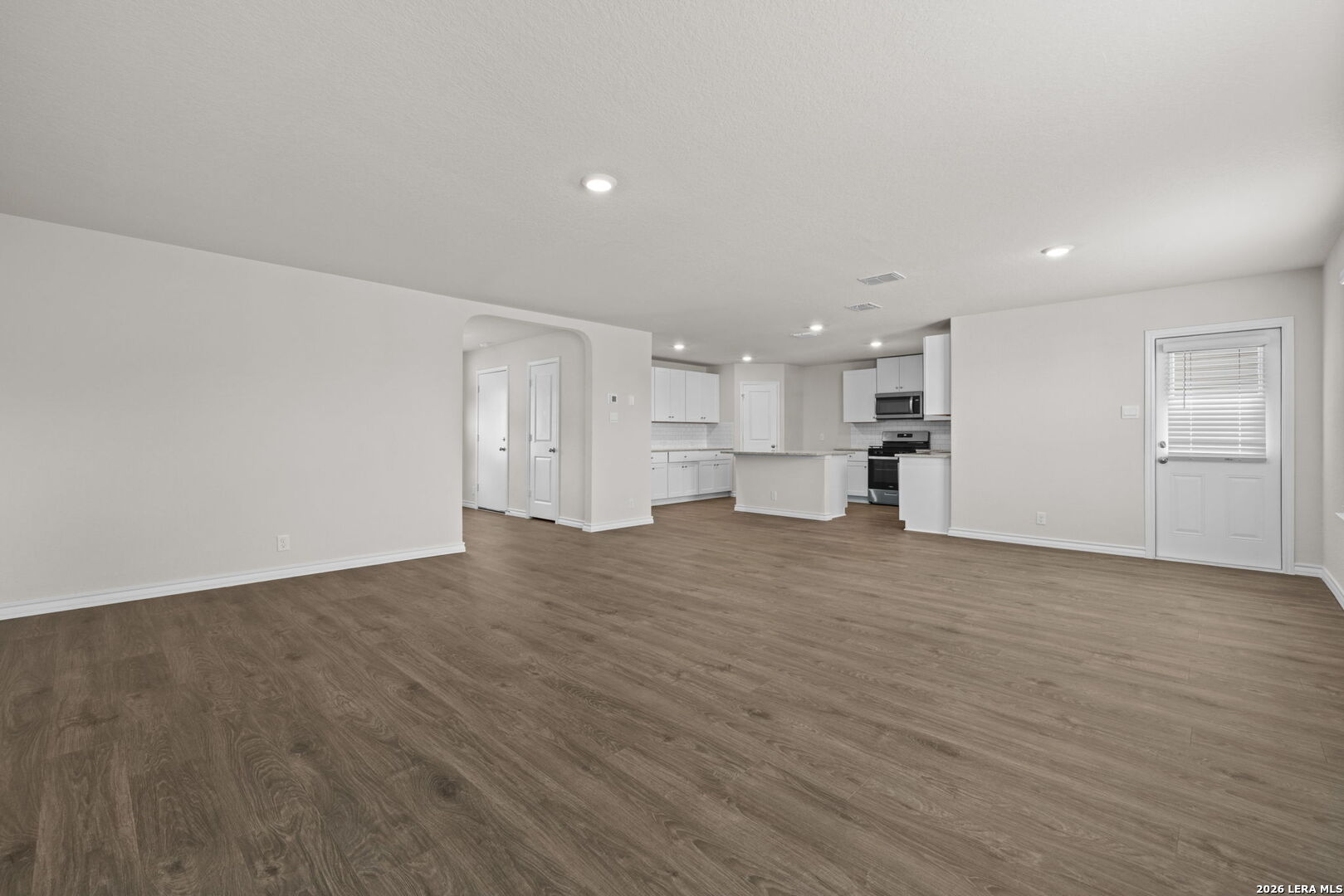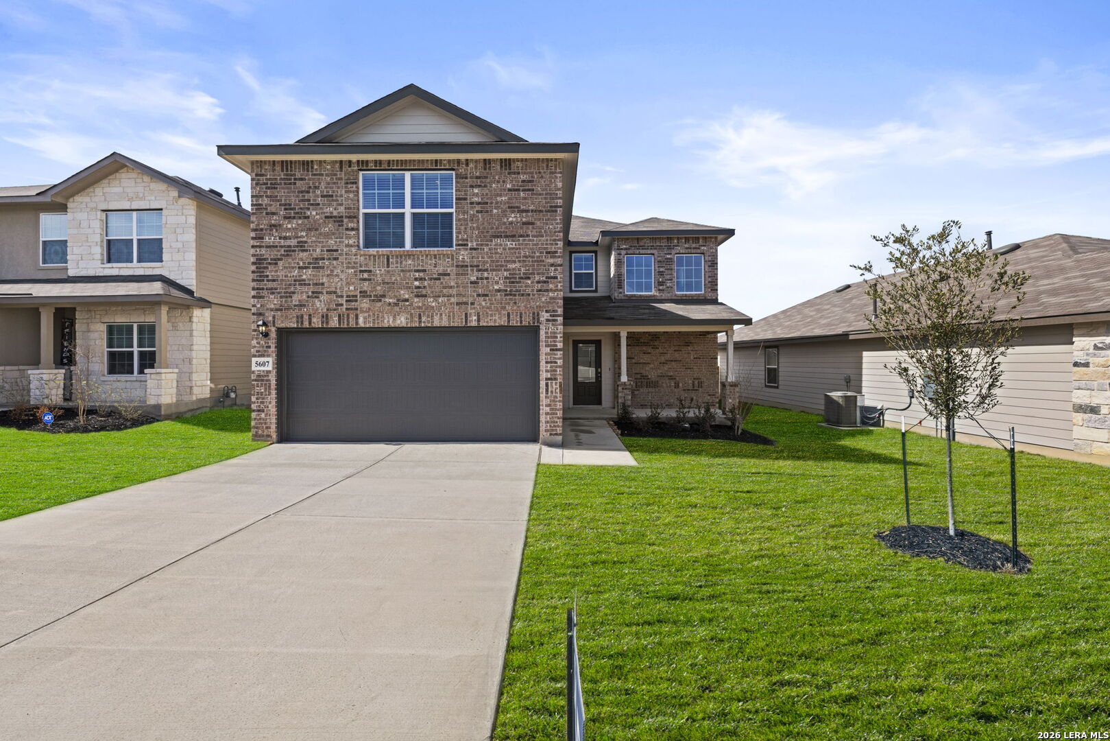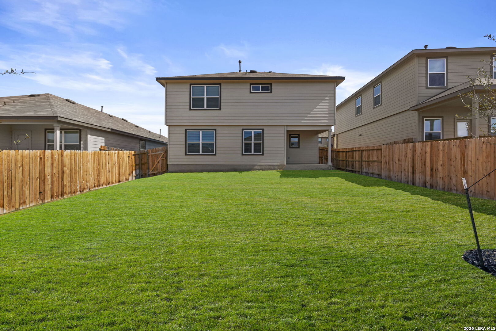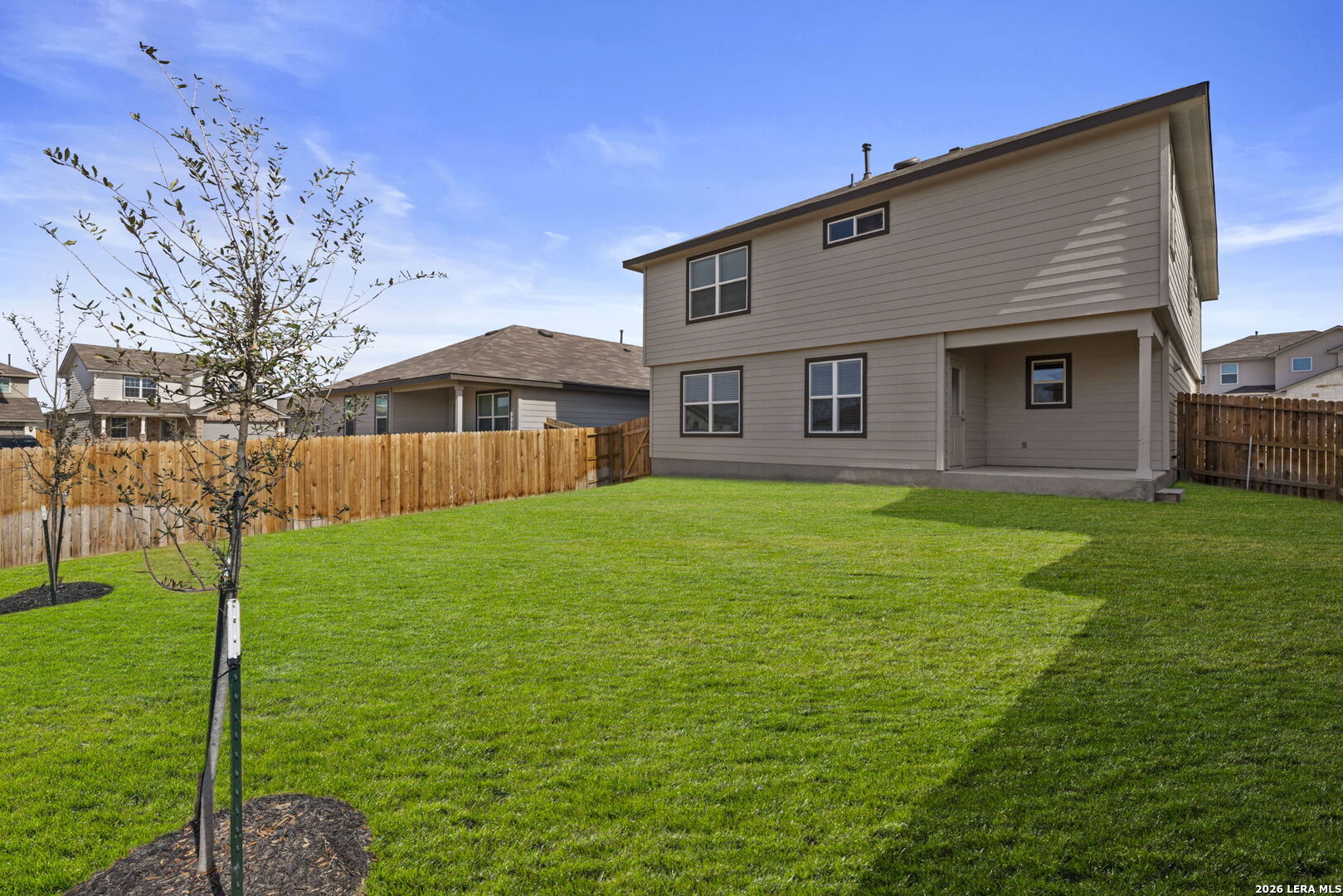 Seller is willing to assist with closing costs or a rate buy-down through preferred lender with an acceptable offer. The Bowen is a 2-story home featured at Stonehill in San Antonio, TX. 3 bedrooms, 2.5 bathrooms and 2-car garage spread across 2241 square feet of living space. Usher guest through a covered front porch and into a front foyer which leads into a grand, open-concept living, dining, and kitchen with tons of cabinet storage and quartz countertop space. Your kitchen also includes a spacious kitchen island, stainless steel appliances, classic white subway tile backsplash, and a deep single basin kitchen sink that faces a large window overlooking your fully landscaped and irrigated backyard. The second story opens into a large and versatile loft space with plenty of natural light, an upstairs utility room, a full bath, and all three bedrooms. A decorative nook located off the stairway guides you to the large main bedroom and ensuite bathroom, secluded from the other bedrooms. Your main bedroom features a semi-vaulted ceiling, a separate garden tub, a tiled walk-in shower, double vanity sinks, and a spacious walk-in closet. The Bowen floor plan is perfect if you want a place to entertain downstairs and a private retreat to relax in upstairs. Additional features include, 9-foot ceilings, 2-inch faux wood blinds throughout the home, luxury vinyl plank flooring in entryway, living room, kitchen, and dining area, ceramic tile at all bathrooms and utility room, pre-plumb for water softener loop, and a relaxing covered back patio located off the living room.