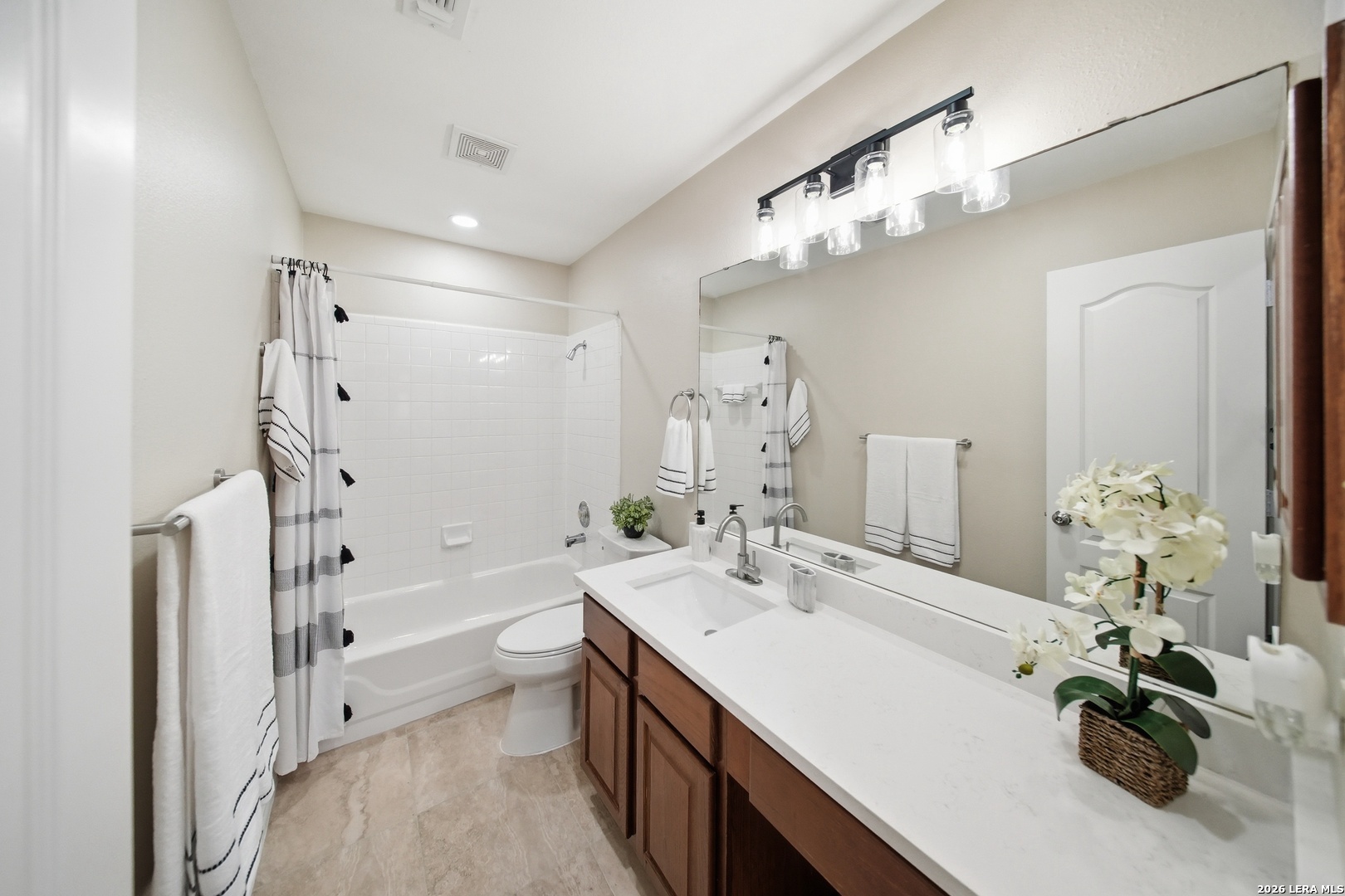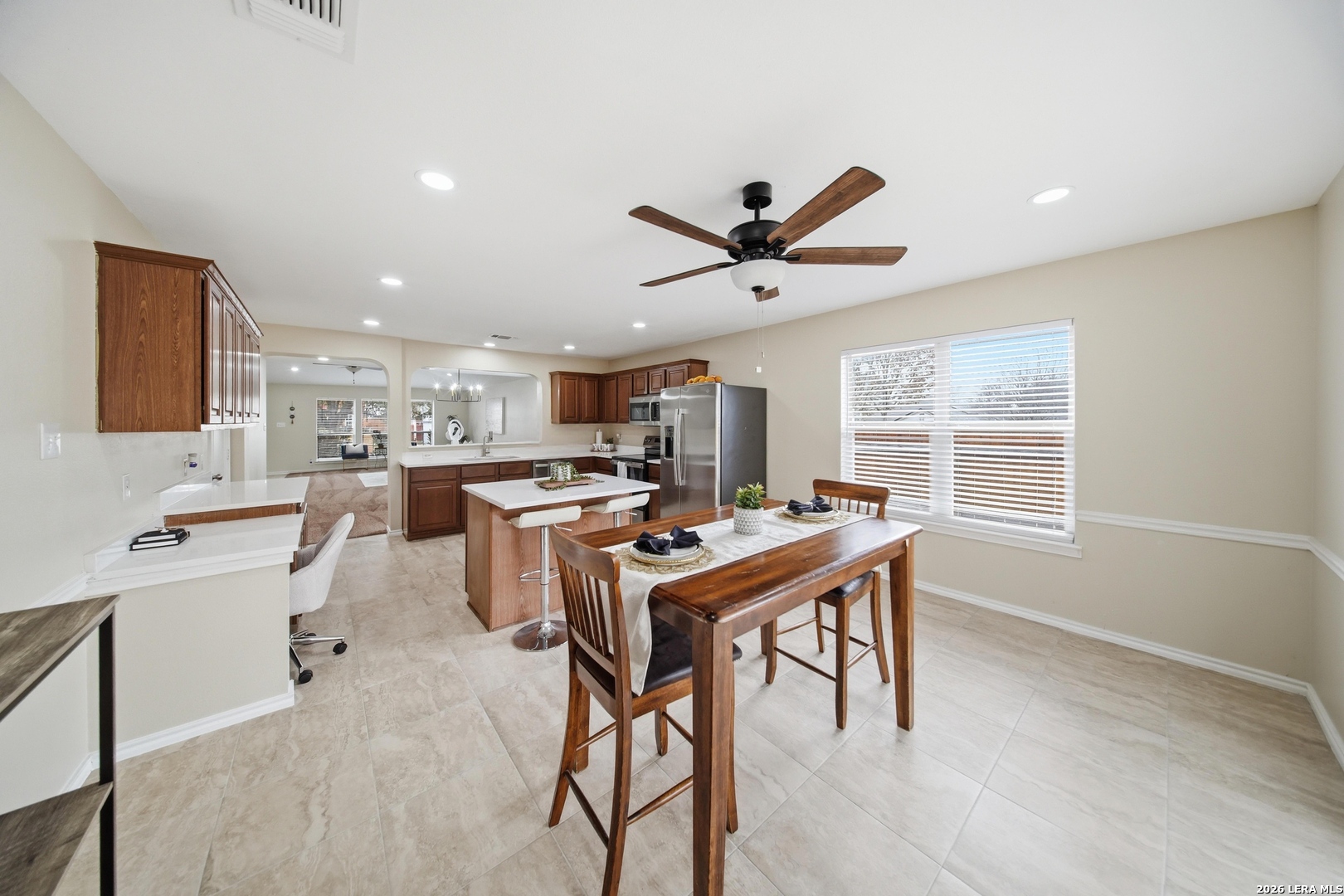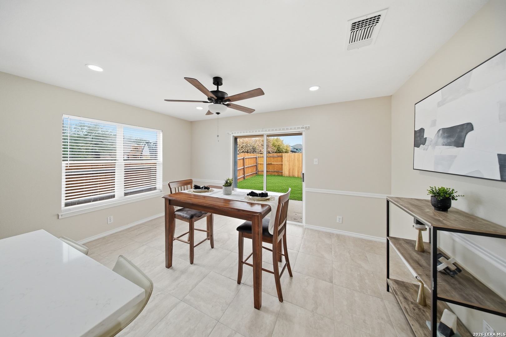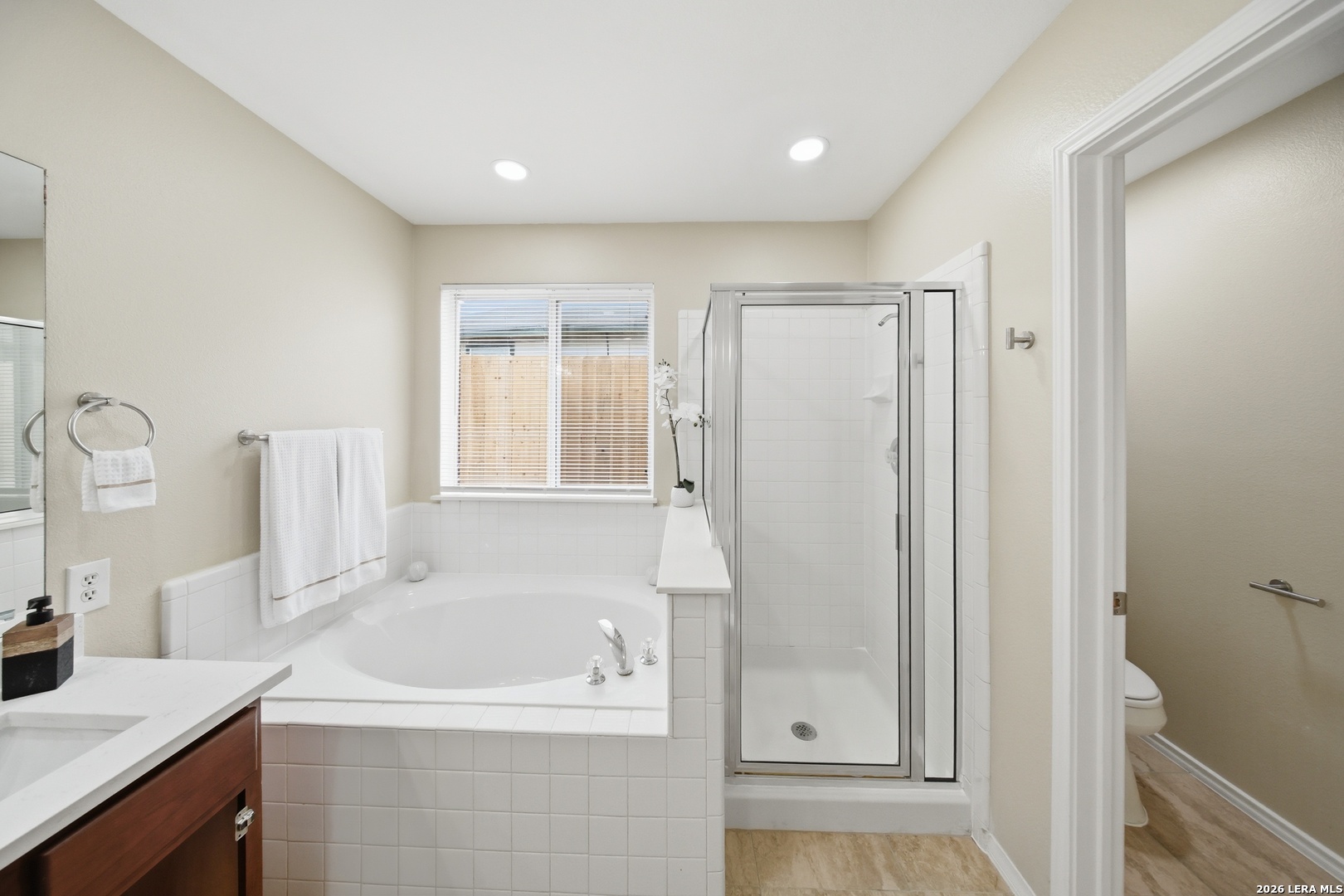 OPEN HOUSE Sat 4/4 3pm-5;30pm. Fully updated, move-in ready, and located in a gated community! Located in the highly sought-after gated community of Villas at Spring Creek in San Antonio this beautifully updated 4-bedroom, 2-bath residence offers almost 2,100 square feet of thoughtfully designed living space and is completely turn-key and move-in ready. Step inside to discover a bright, refreshed interior featuring new recessed lighting with dual-switch functionality, allowing you to set the perfect ambiance whether you prefer full illumination or a relaxing ceiling-fan setting. The home has been freshly painted throughout, creating a clean and modern aesthetic that complements any design style you may have. The kitchen was designed to be both functional and inviting. Showcasing 16" x 16" ceramic tile flooring in all wet areas, new timeless quartz countertops, this space offers plenty of room for meal preparation, entertaining, and everyday living. A kitchen island provides additional prep space and seating-perfect for gathering with family or guests while cooking. Don't forget the dedicated study nook, creating the ideal spot for working from home, homework time, or managing daily tasks while still staying connected to the main living area. New appliances complete the kitchen, delivering both efficiency and modern convenience. The primary suite is huge and designed for comfort, offering the perfect retreat at the end of the day. The spa-like primary bathroom features a separate soaking tub and walk-in shower , a double vanity sink with quarts countertops and his & hers closets providing plenty of closet storage and personal space. Major exterior improvements provide peace of mind for years to come, including a roof replaced in 2025, a new privacy fence and retaining wall, a foundation warranty provided to the next owner and an HVAC system that was regularly serviced. Situated in the highly acclaimed Northeast ISD, this home is zoned to Madison High School and offers convenient access to shopping, dining, major highways, and everything San Antonio has to offer. Homes in this prime location within a gated community rarely stay on the market for long. Schedule your private tour today and experience all that 5607 Spring Quail has to offer.