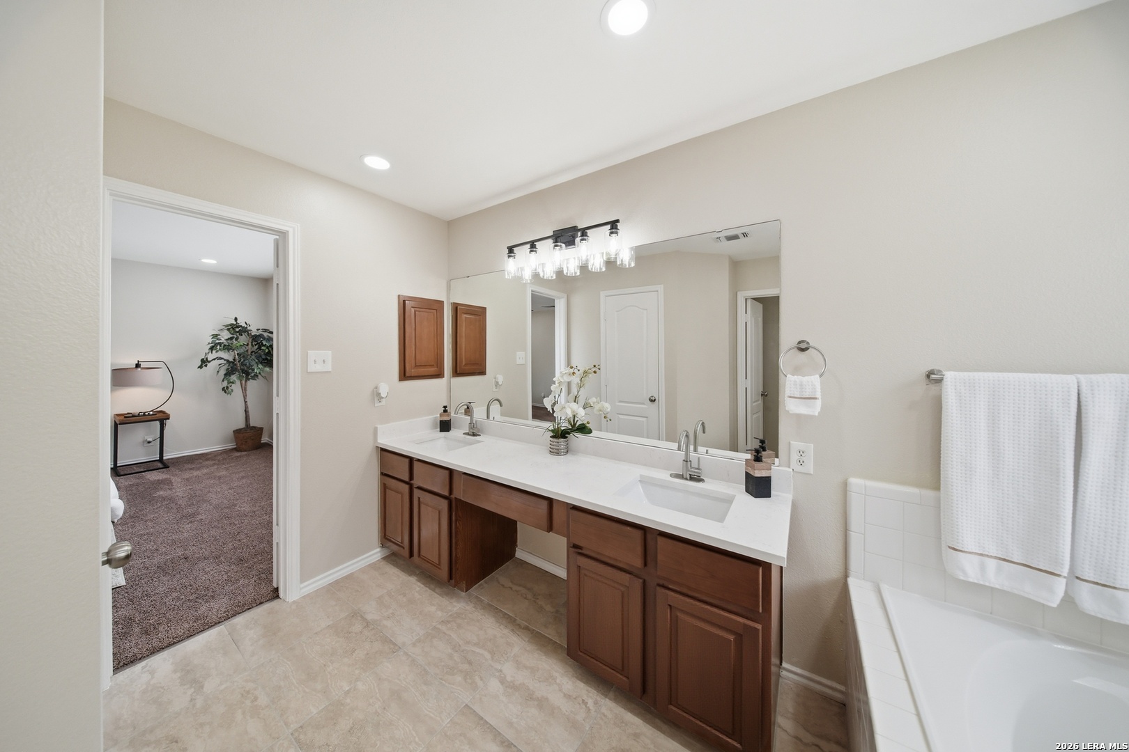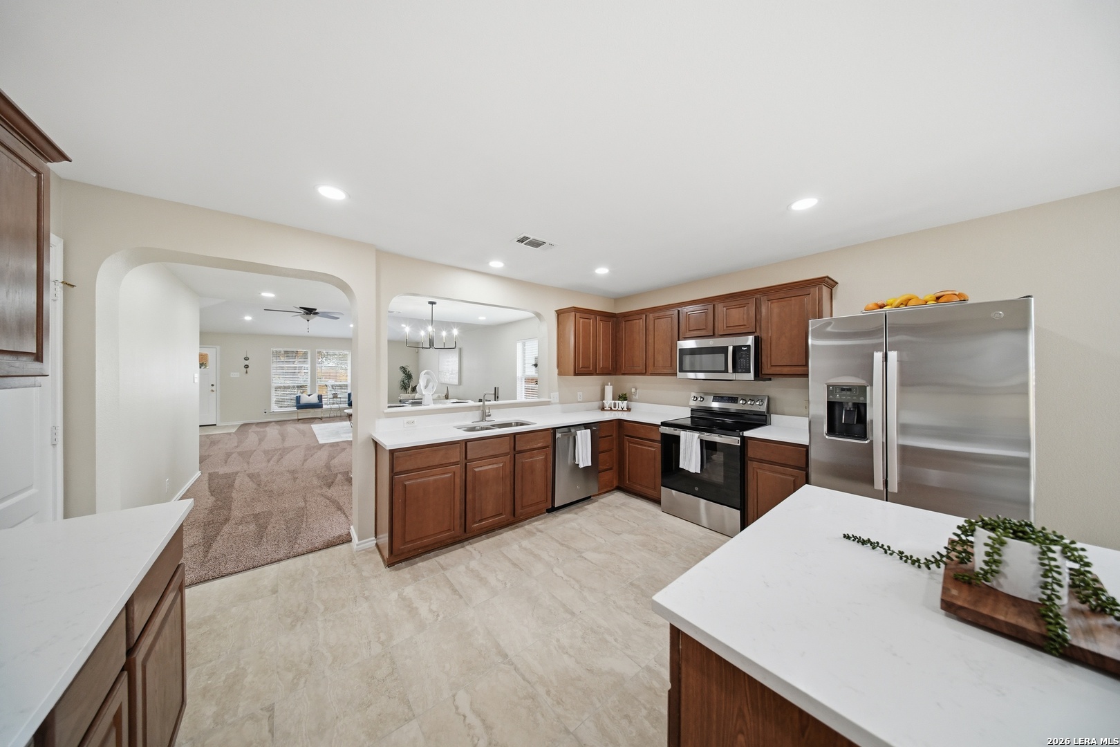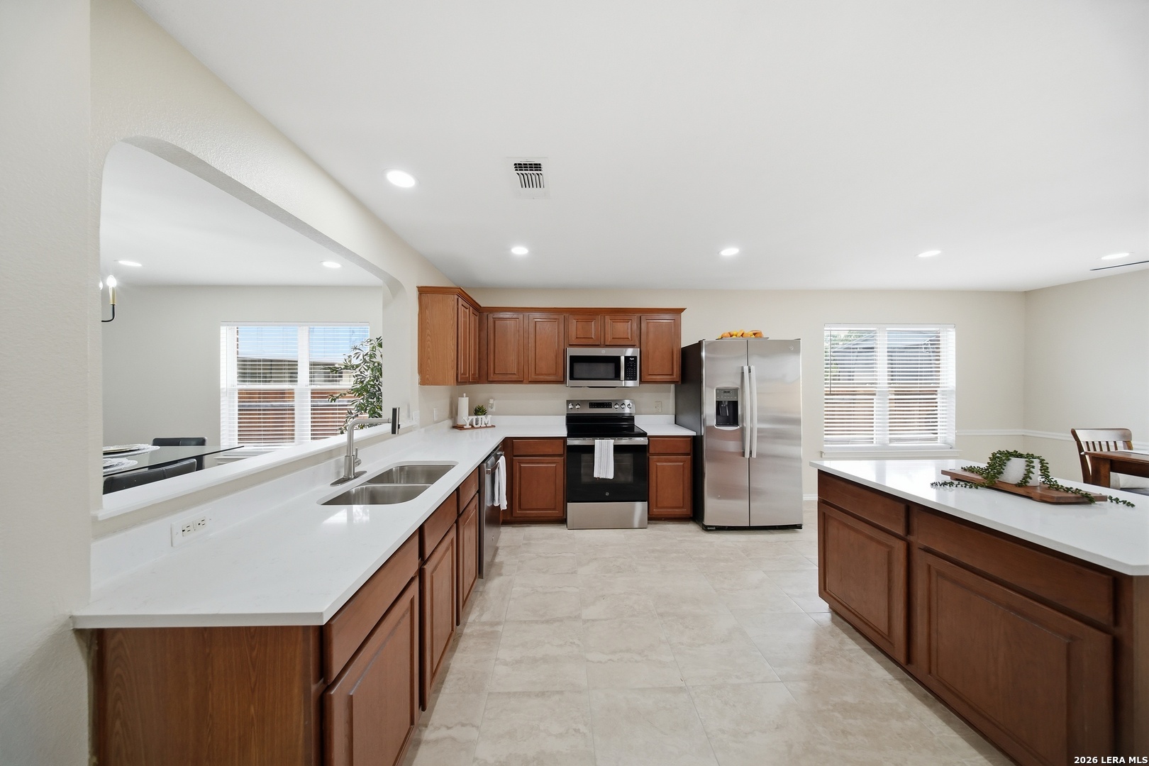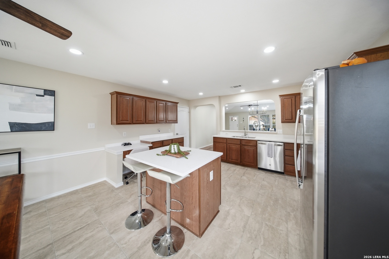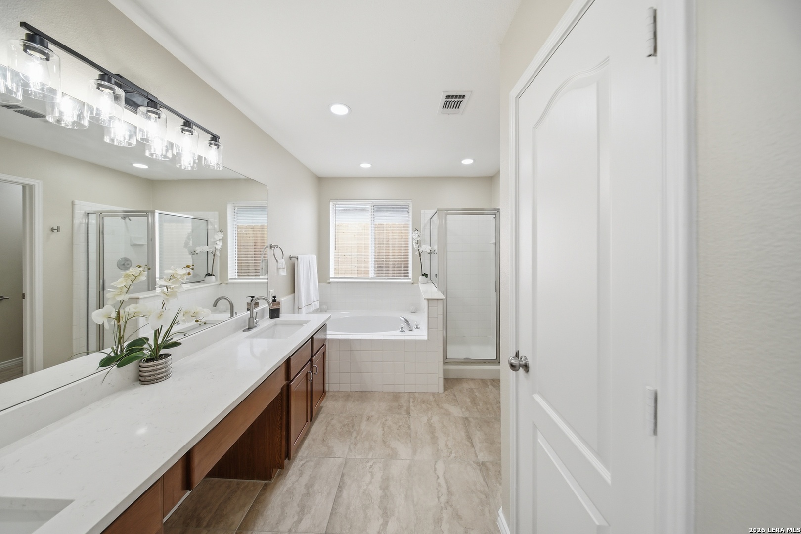 OPEN HOUSE Sat 4/4 3pm-5;30pm. Fully updated, move-in ready, and located in a gated community! Located in the highly sought-after gated community of Villas at Spring Creek in San Antonio this beautifully updated 4-bedroom, 2-bath residence offers almost 2,100 square feet of thoughtfully designed living space and is completely turn-key and move-in ready. Step inside to discover a bright, refreshed interior featuring new recessed lighting with dual-switch functionality, allowing you to set the perfect ambiance whether you prefer full illumination or a relaxing ceiling-fan setting. The home has been freshly painted throughout, creating a clean and modern aesthetic that complements any design style you may have. The kitchen was designed to be both functional and inviting. Showcasing 16" x 16" ceramic tile flooring in all wet areas, new timeless quartz countertops, this space offers plenty of room for meal preparation, entertaining, and everyday living. A kitchen island provides additional prep space and seating-perfect for gathering with family or guests while cooking. Don't forget the dedicated study nook, creating the ideal spot for working from home, homework time, or managing daily tasks while still staying connected to the main living area. New appliances complete the kitchen, delivering both efficiency and modern convenience. The primary suite is huge and designed for comfort, offering the perfect retreat at the end of the day. The spa-like primary bathroom features a separate soaking tub and walk-in shower , a double vanity sink with quarts countertops and his & hers closets providing plenty of closet storage and personal space. Major exterior improvements provide peace of mind for years to come, including a roof replaced in 2025, a new privacy fence and retaining wall, a foundation warranty provided to the next owner and an HVAC system that was regularly serviced. Situated in the highly acclaimed Northeast ISD, this home is zoned to Madison High School and offers convenient access to shopping, dining, major highways, and everything San Antonio has to offer. Homes in this prime location within a gated community rarely stay on the market for long. Schedule your private tour today and experience all that 5607 Spring Quail has to offer.