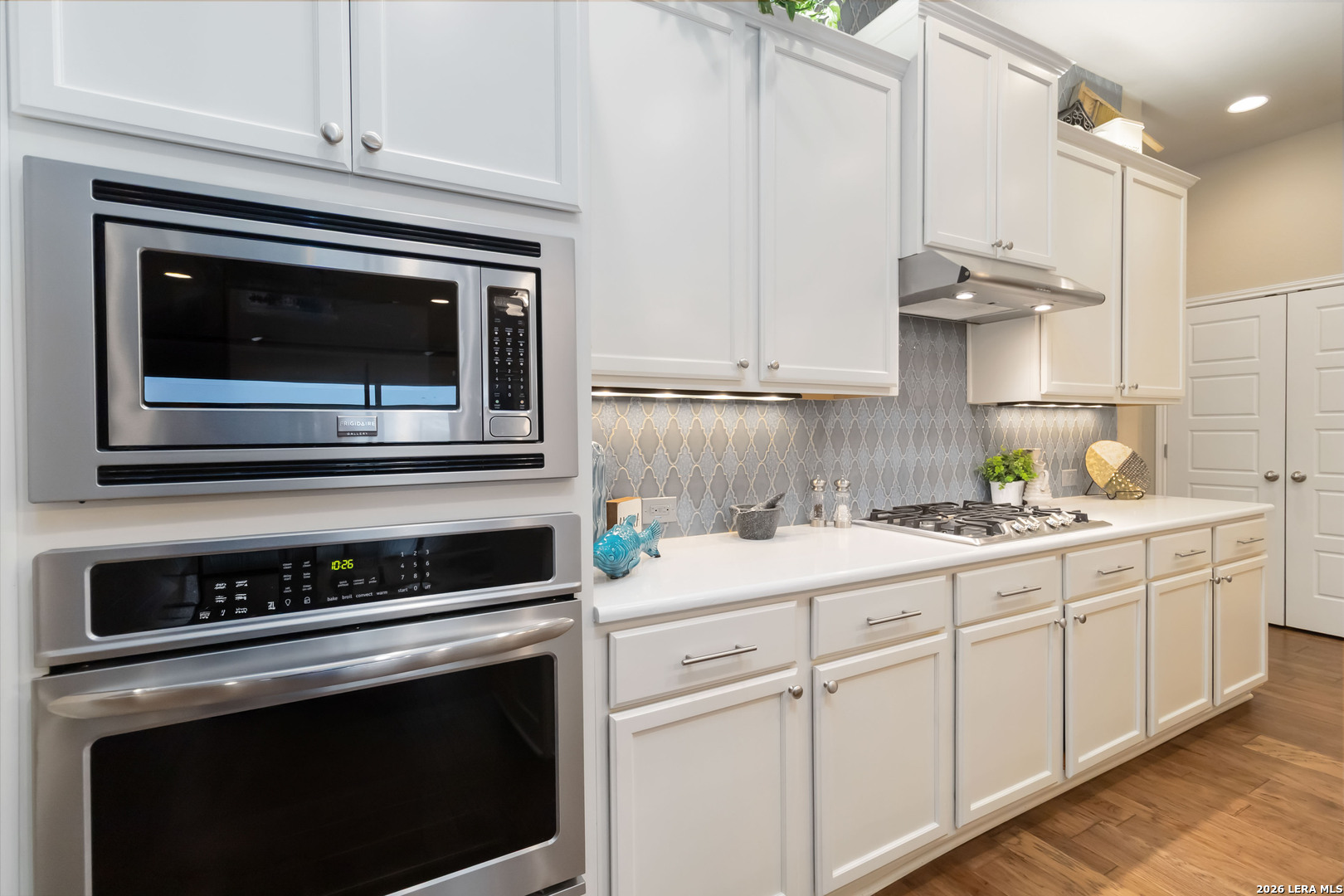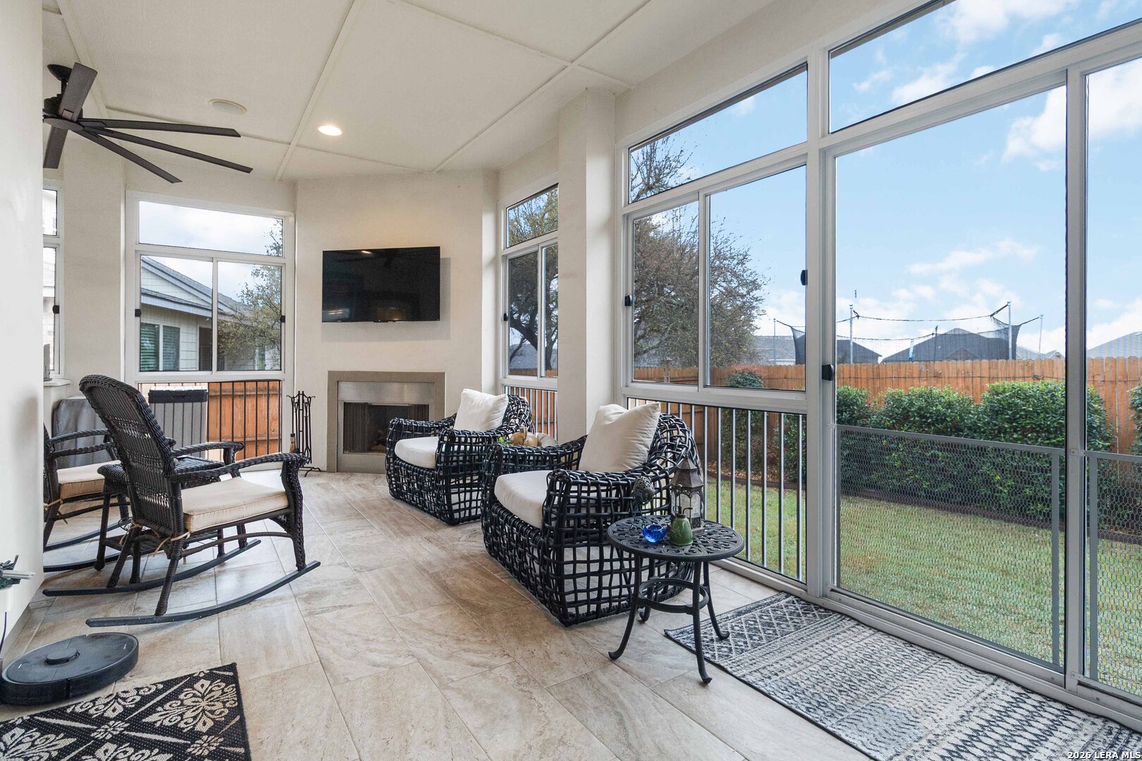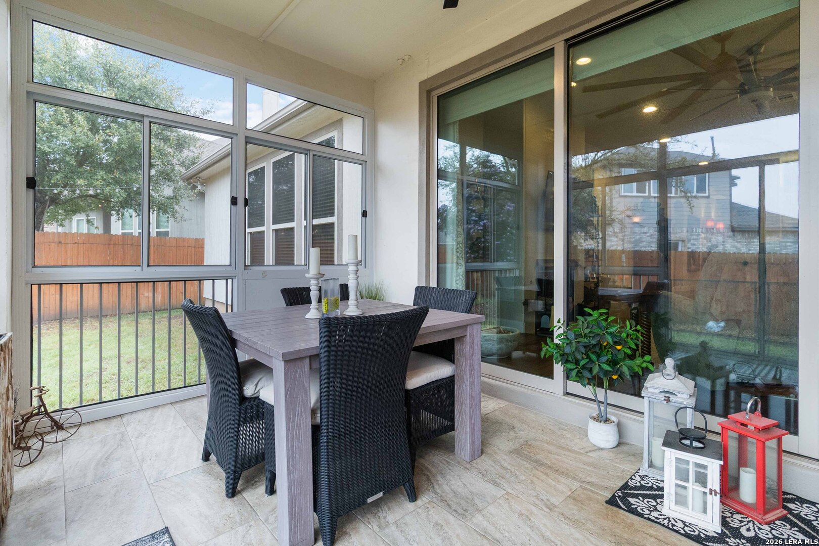 Located in the highly sought-after The Preserve at Singing Hills, this stunning 4-bedroom, 3-full bath home plus a media or bonus room showcases exceptional design and craftsmanship with upgrades at every turn. From the moment you enter the grand foyer, you'll notice the 10-foot ceilings, wide hallways, upgraded lighting and beautiful hickory wood flooring that create a bright and spacious feel throughout. The kitchen is a showstopper with a full-height backsplash extending to the ceiling, soft close doors, separate dining with butler's pantry and an open layout perfect for entertaining. The home seamlessly blends indoor and outdoor living with an upgraded sliding glass wall with powered shades that opens to a beautifully enclosed patio featuring tile flooring, gas fireplace, a complete outdoor kitchen and a custom screened enclosure, allowing you to grill and entertain comfortably year-round. A whole-home natural gas standby generator insures comfort in any scenario. Every bedroom offers walk-in closets and the home features thoughtful upgrades including custom paint and wallpaper in neutral tones, a whole-home audio system, smart home technology fully controlled from your phone, permanent holiday lighting, a water softener system, hot water recirculation system and abundant storage throughout. Even the oversized 3-car garage has been elevated with central heating and air conditioning, recessed lighting, built-in shelving and epoxy flooring-a rare feature that adds both comfort and functionality. While the home feels peacefully tucked away with beautiful Hill Country views, it remains conveniently located near shopping centers and local favorites like The Branch Neighborhood Grill, Screaming Goat Yard & Tap, and The Desert Spoon, as well as the beloved H-E-B for everyday conveniences. Outdoor lovers will also appreciate the Guadalupe River State Park and Canyon Lake are just minutes away. This home truly spares no detail and cuts no corners, offering every luxury, comfort, and functionality available in one of the area's most desirable communities.