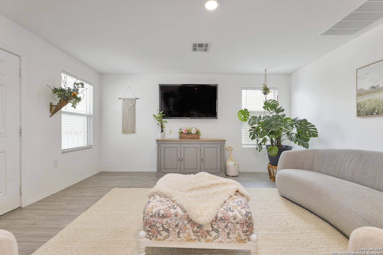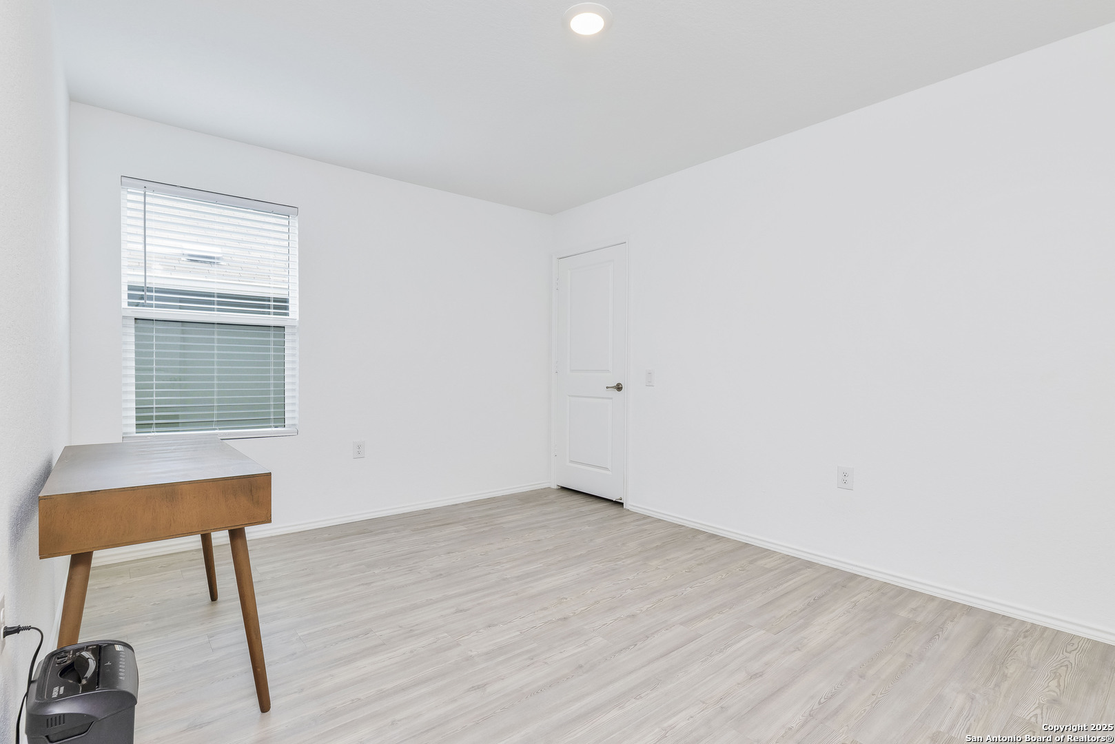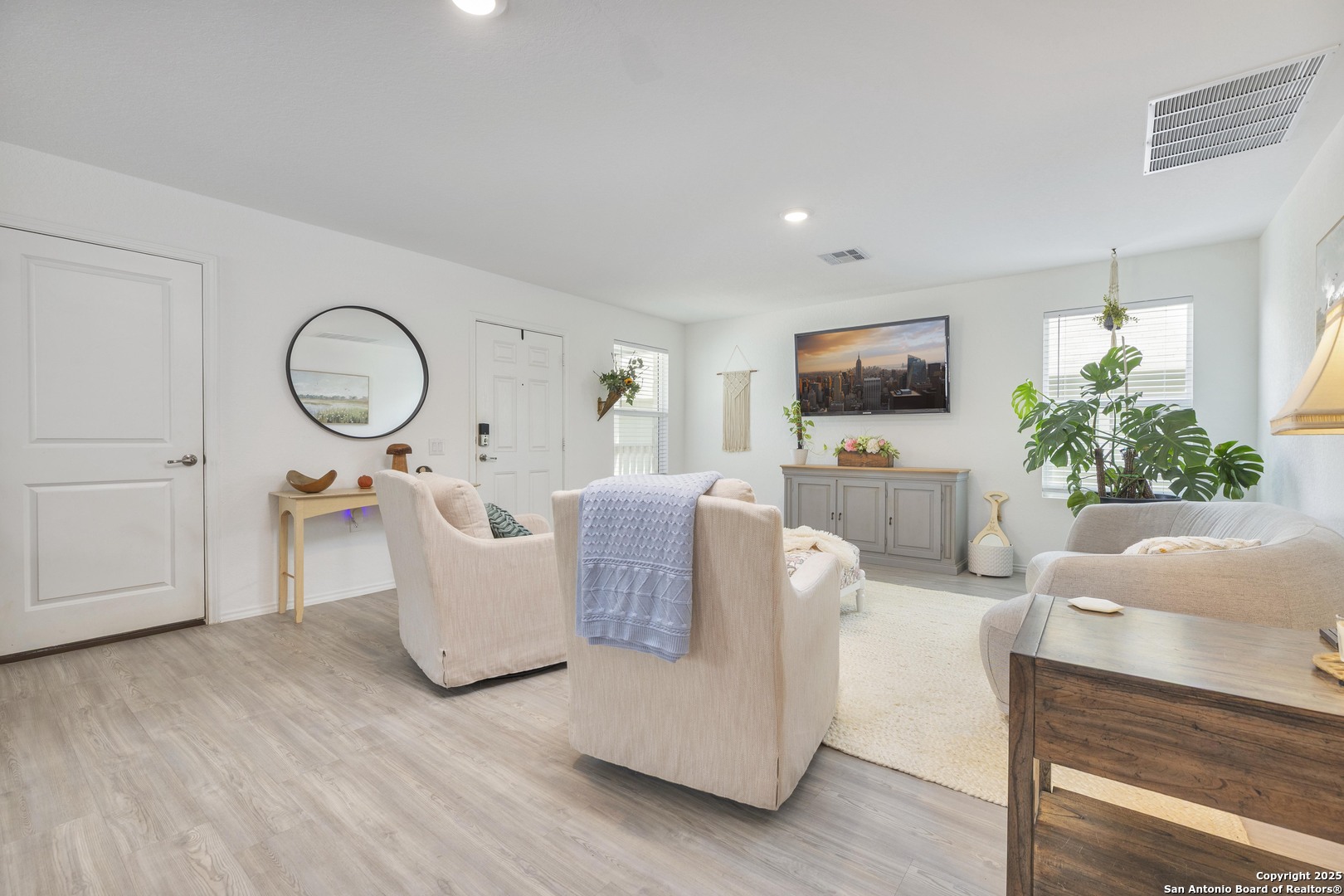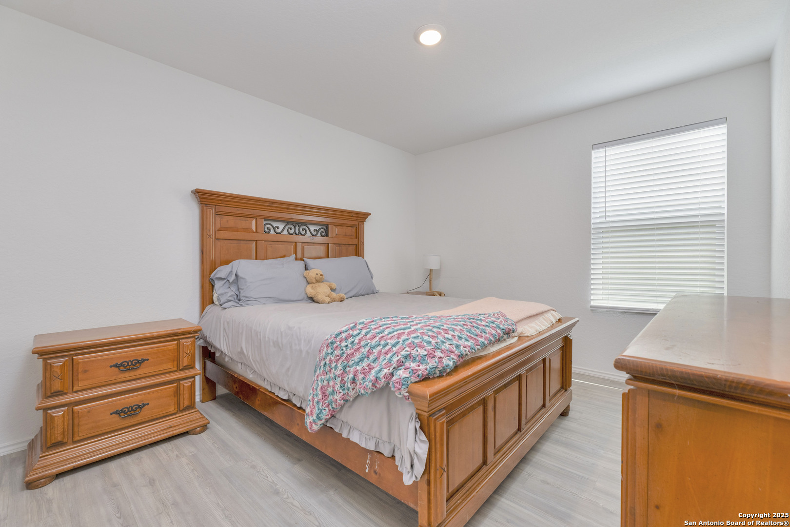 Welcome to this modern single-story home in Northeast Crossing. Built in 2021, this move-in ready 3-bedroom, 2-bath layout offers clean design, open space, and low-maintenance living. Step inside to an open-concept living and dining area with upgraded wood-look flooring and abundant natural light. The kitchen features granite countertops, white cabinetry, stainless appliances, and a gas range - perfect for home chefs and everyday ease. The spacious primary suite includes a walk-in closet and private bath with granite vanity and shower/tub combo. Two additional bedrooms provide flexibility for guests, kids, or a home office. Enjoy a fully fenced backyard, ideal for pets or play, plus a 2-car garage and wide driveway. The neighborhood is tucked into NEISD with no city taxes and convenient access to Loop 410, I-35, and Fort Sam.
