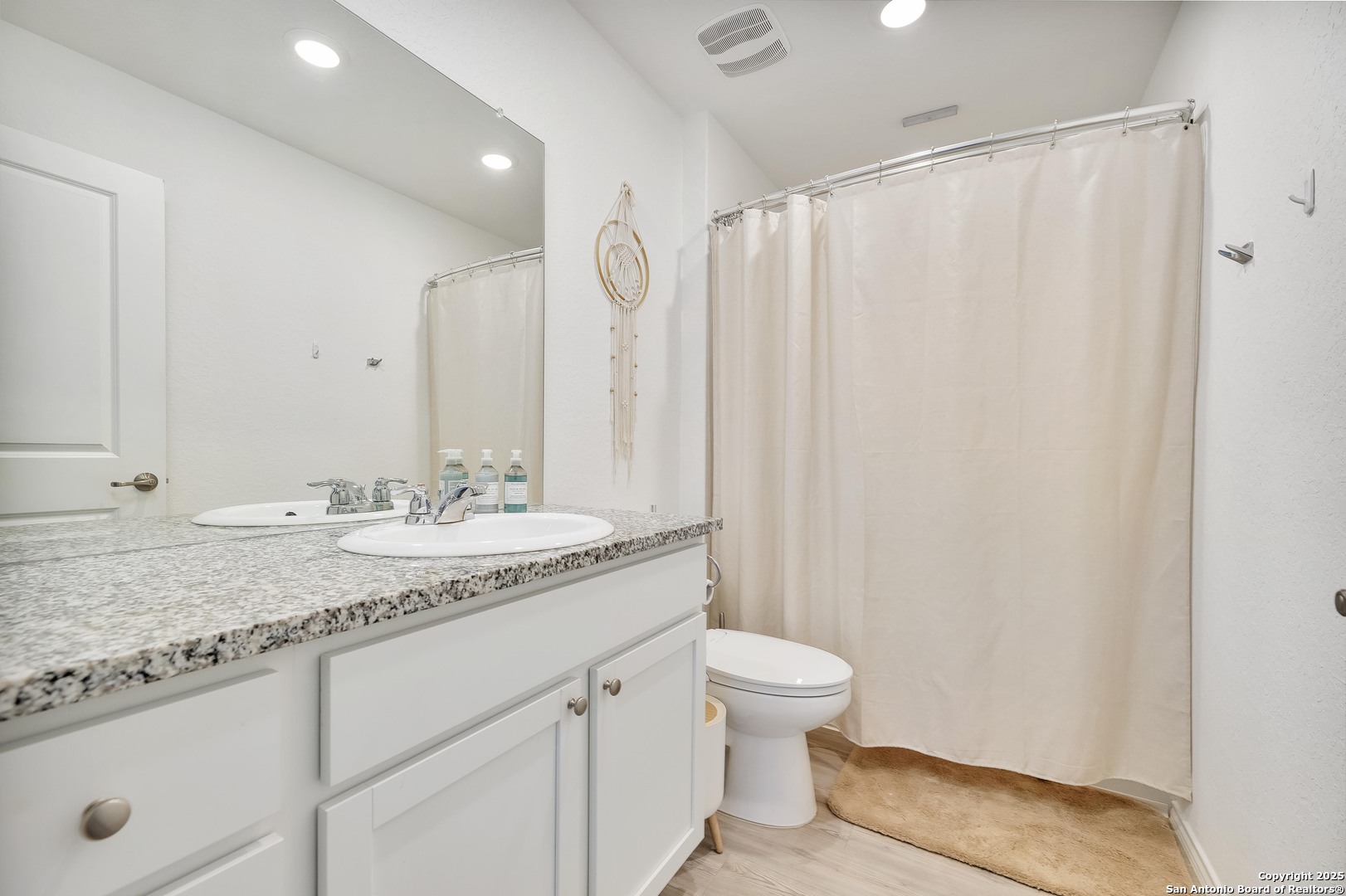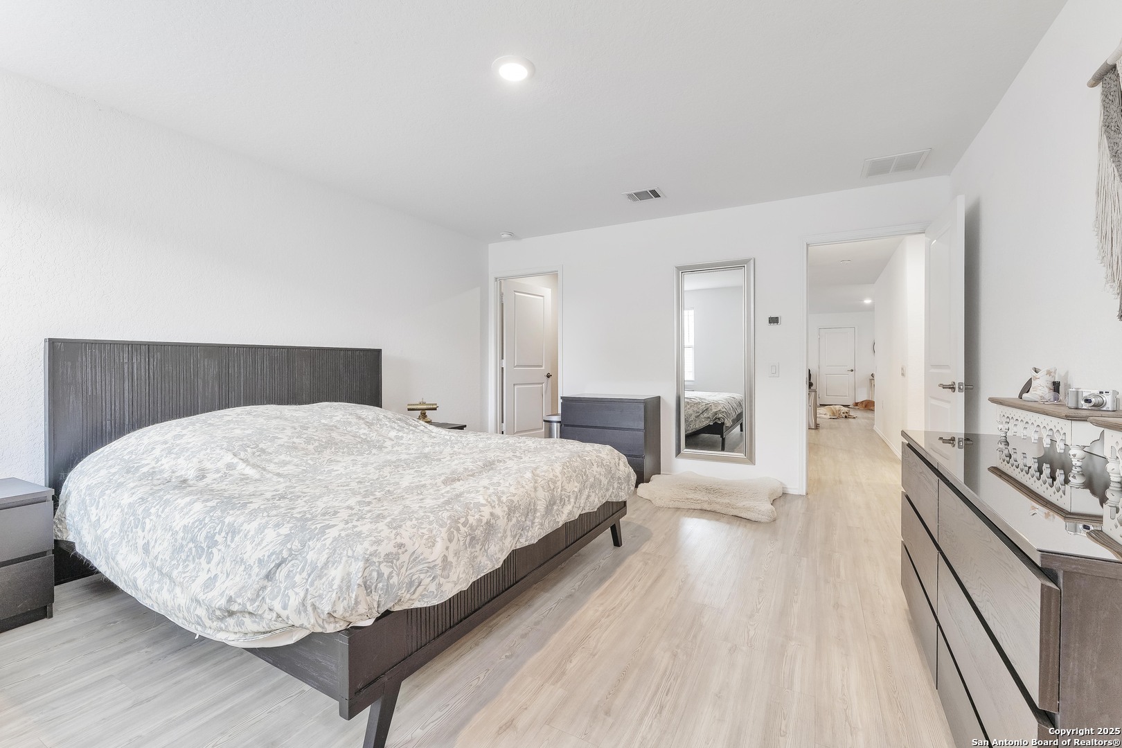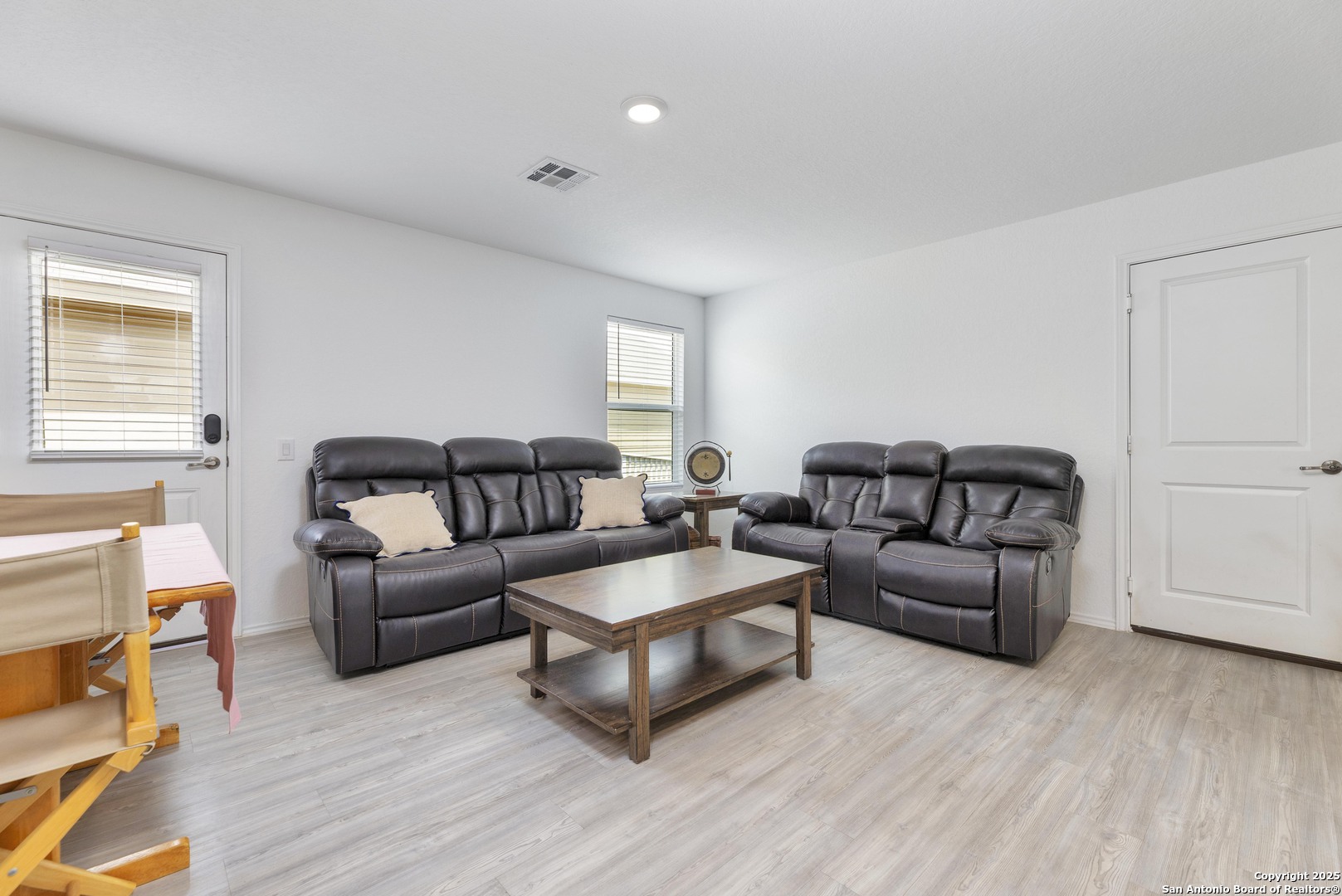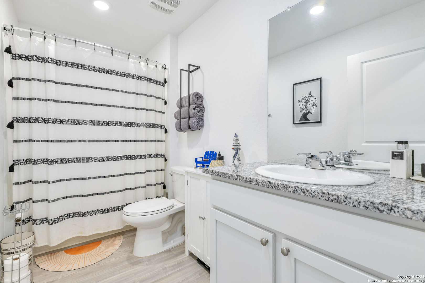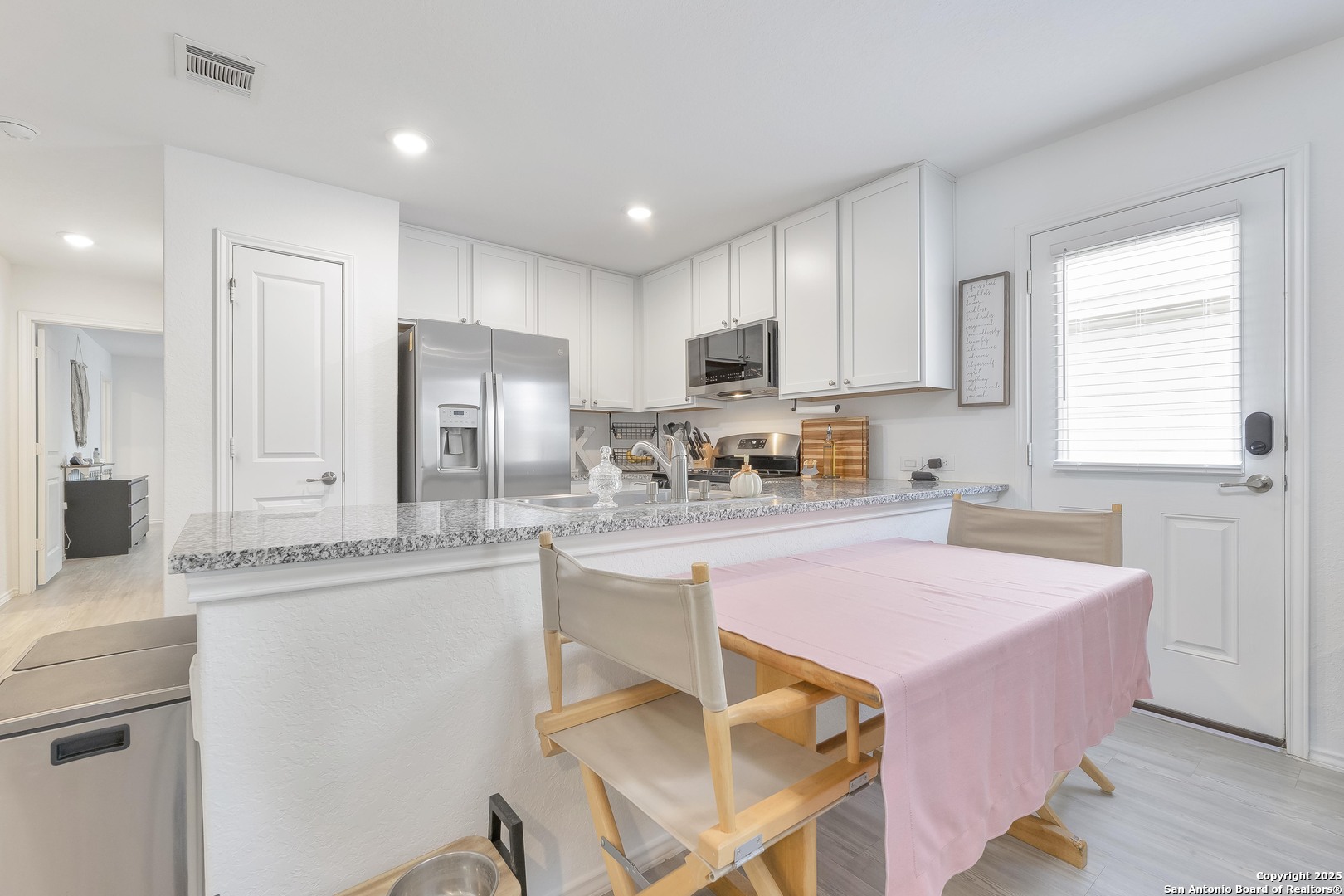 Welcome to this modern single-story home in Northeast Crossing. Built in 2021, this move-in ready 3-bedroom, 2-bath layout offers clean design, open space, and low-maintenance living. Step inside to an open-concept living and dining area with upgraded wood-look flooring and abundant natural light. The kitchen features granite countertops, white cabinetry, stainless appliances, and a gas range - perfect for home chefs and everyday ease. The spacious primary suite includes a walk-in closet and private bath with granite vanity and shower/tub combo. Two additional bedrooms provide flexibility for guests, kids, or a home office. Enjoy a fully fenced backyard, ideal for pets or play, plus a 2-car garage and wide driveway. The neighborhood is tucked into NEISD with no city taxes and convenient access to Loop 410, I-35, and Fort Sam.
