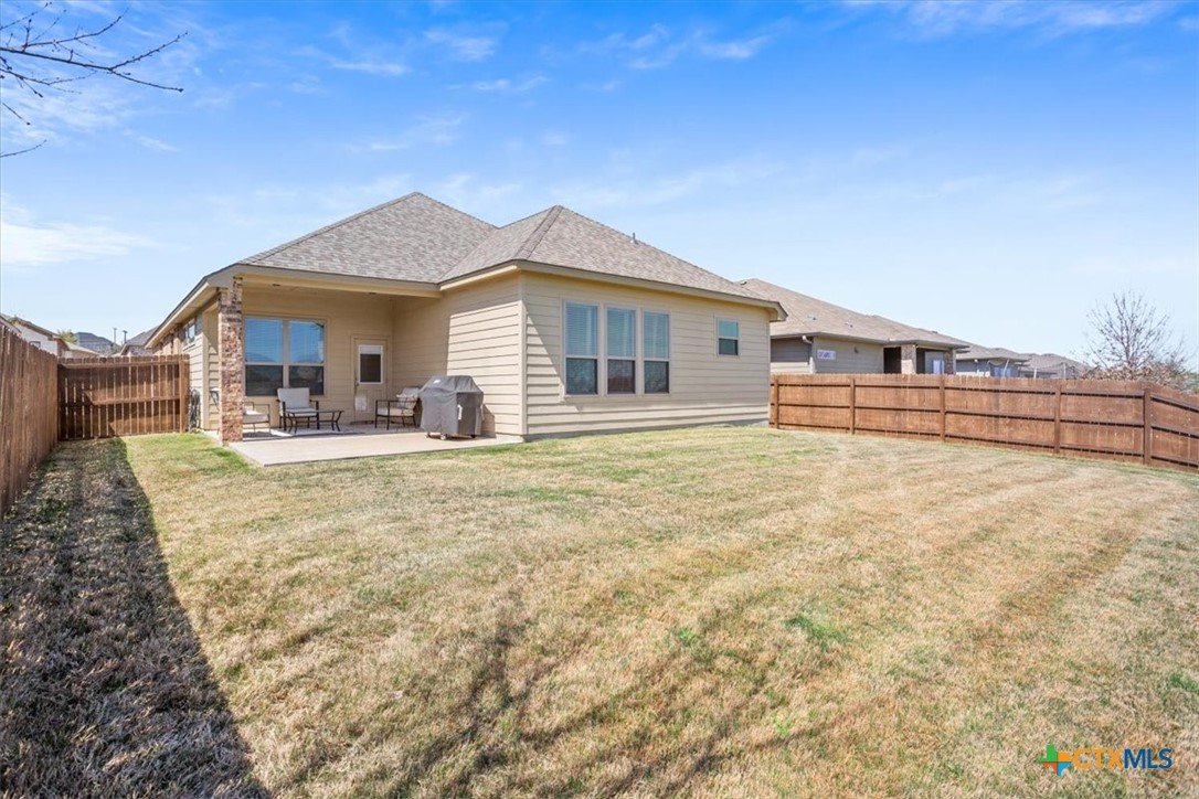 This 3 bedroom, 2 bath Craftsman style home in Academy ISD features a functional split floor plan that flows seamlessly between the living, dining, and kitchen areas. The kitchen features granite countertops and abundant cabinet space, perfect for everyday living and entertaining. An outstanding feature of this home is the exceptional privacy offered by the backyard, which adjoins an open green space with no direct rear neighbors. You can enjoy the views from the covered back patio or use the back gate for direct access to the community trail and a short walk to the neighborhood pool. The home is conveniently located with quick access to Loop 363 and I-35, providing an easy commute to Temple, Belton, and Fort Hood.