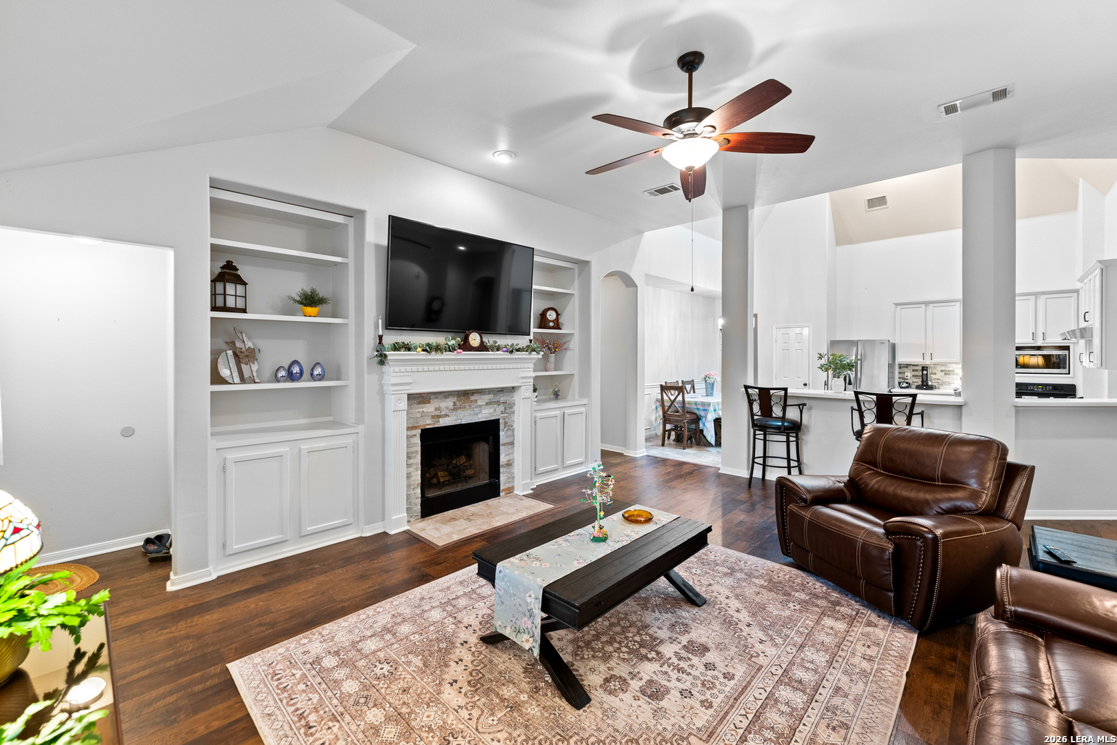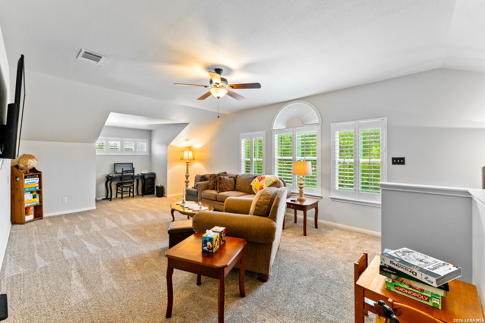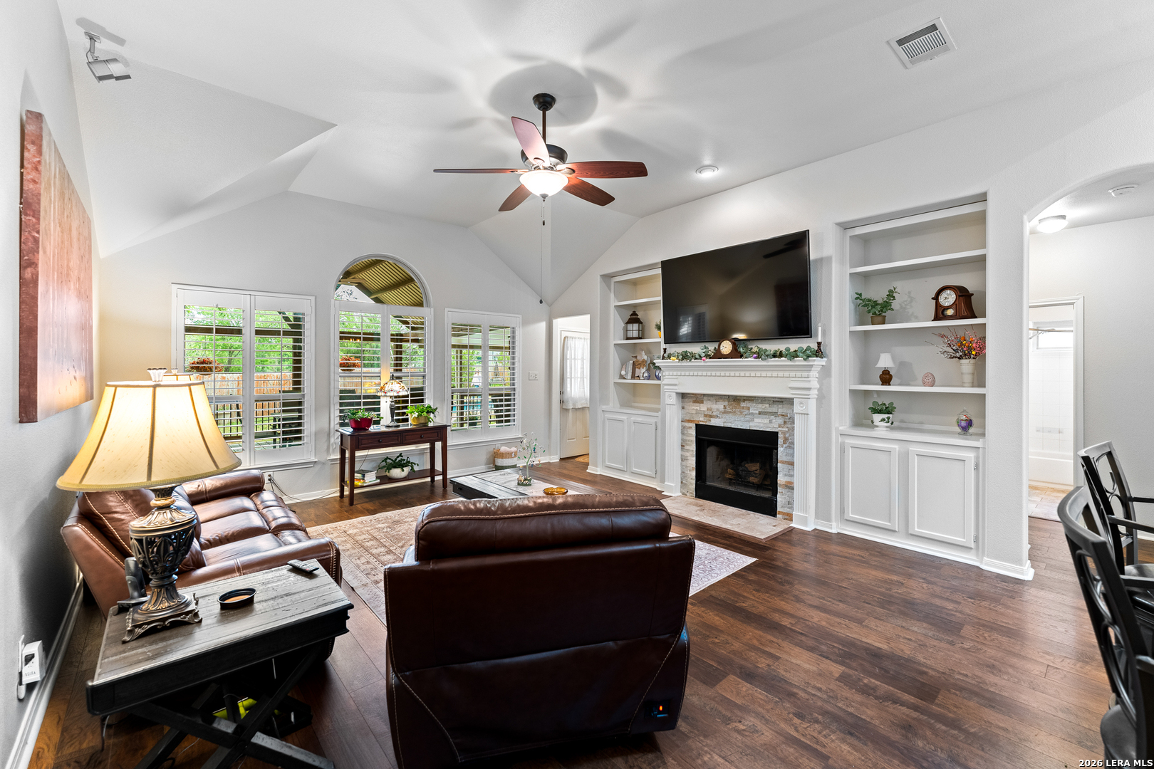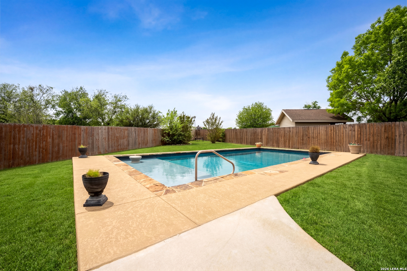 Updated, tons of space, no HOA, and a location that puts you close to schools, shopping, downtown New Braunfels, parks, and miles of scenic hike-and-bike trails. Walk out your backdoor to the hiking and biking trail that connect you to Fischer Park! This house is on an oversized lot in an established neighborhood just minutes from historic downtown New Braunfels, offering a sense of space and privacy that's hard to find this close to town. It's a setting that feels calm and comfortable, with plenty of room to enjoy the outdoors. The 1.5-story layout lives like a true one-story, with all bedrooms and main living spaces downstairs and a bonus room upstairs that easily adapts to whatever life needs next, game room, second living area, hobby space, or a quiet retreat. On the main floor a formal dining room offers space for hosting, while the large kitchen is filled with natural light thanks to overhead skylights. The family room features high ceilings, walls of windows, built-in bookcases, and a fireplace that anchors the space and makes it easy to picture relaxed nights at home. Recent updates include new HVAC 2023, all new windows, plantation shutters, corian countertops in the kitchen, fresh paint throughout, new light fixtures, vinyl plank flooring, new carpet, and a backyard pool built by Gary Pools, ready for long Texas summers and weekend get-togethers. The split-bedroom layout offers privacy, with a fourth bedroom that works just as well as a home office. The primary suite is tucked away at the back of the home and features a separate shower and garden tub, creating a comfortable space to get your day started. Step outside and you'll see how much flexibility this property offers. A large, covered deck (20x40) overlooks the backyard and pool area, while two storage sheds with electricity have an RV hookup, The backyard is oversized and you could store your RV, boat or other toys in it. An oversized three-car garage adds even more room for storage, projects, or extra vehicles. It's a home that offers space, flexibility, and a lifestyle that feels easy both inside and out.