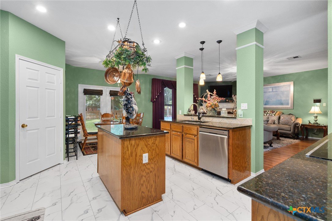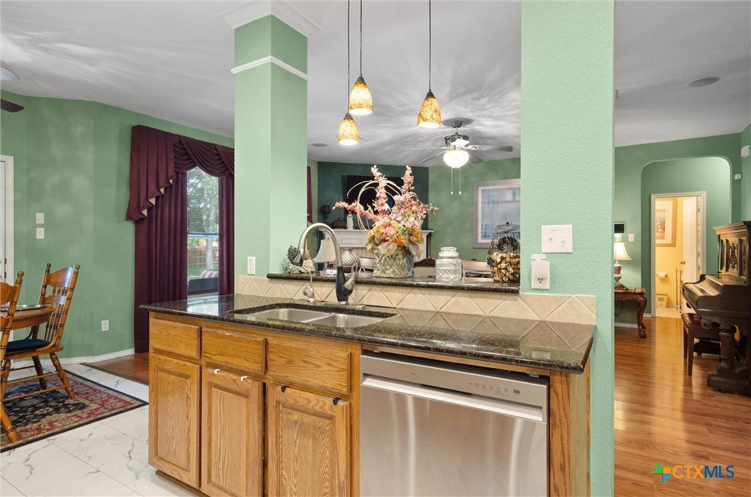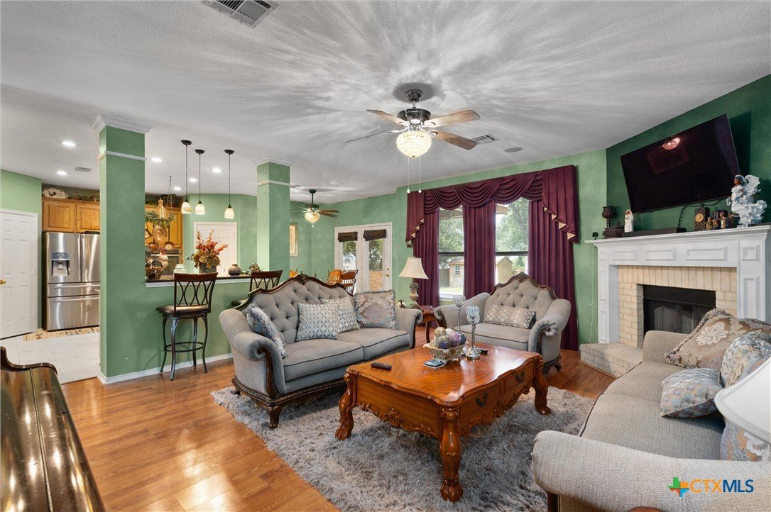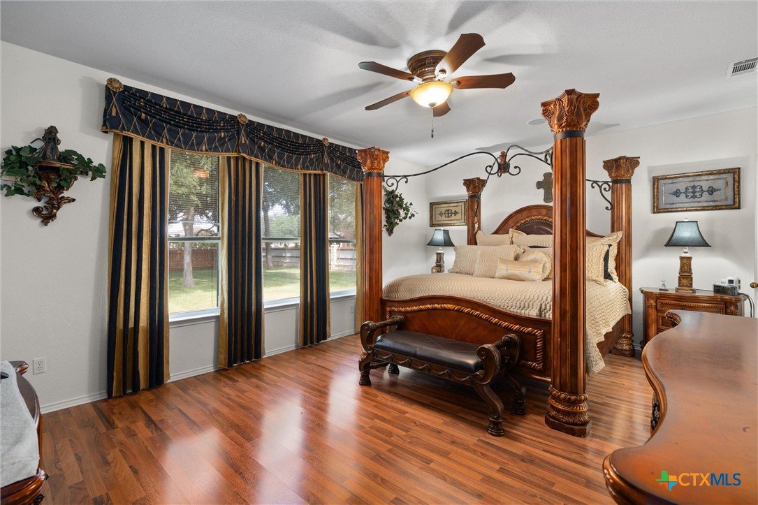 Serene Crossland Estates Retreat with No HOA and Massive Backyard! This spacious home sits on a corner lot among mature oak trees, outside city limits for lower taxes and extra privacy. Inside, you’ll find a private home office, flex space for formal dining or living, and a chef’s kitchen with double ovens, stainless appliances, granite counters, breakfast bar, and large pantry—open to the family room with a cozy fireplace. The main-floor primary suite is a true retreat with a spa-like bath and walk-in closet. Upstairs offers a versatile bonus room plus three bedrooms and a remodeled full bath. Step outside to a massive backyard with a covered patio, storage shed, and slab perfect for basketball or picnics. A two-car garage, extended driveway, and brick carport provide ample parking. Water heater is 2 years old. Zoned to top-rated Cavazos elementary school, minutes from shopping, I-14, and Fort Cavazos—this property offers privacy, space, and convenience. Schedule your showing today!