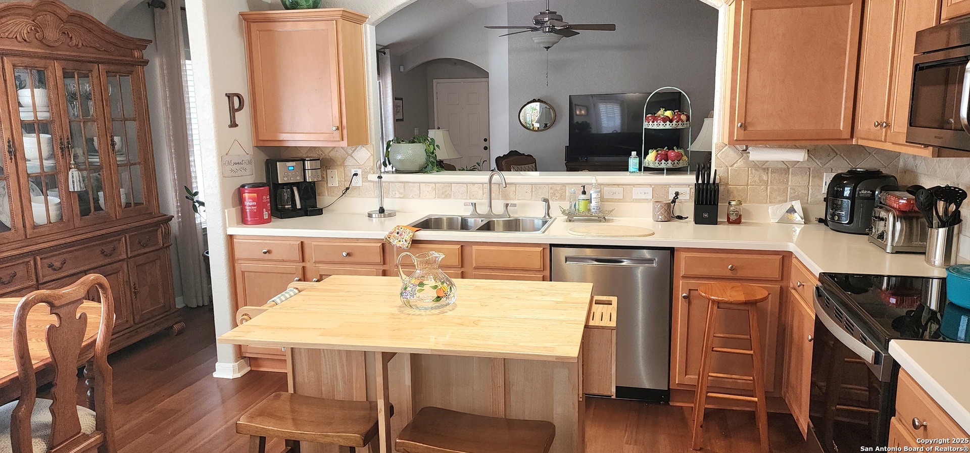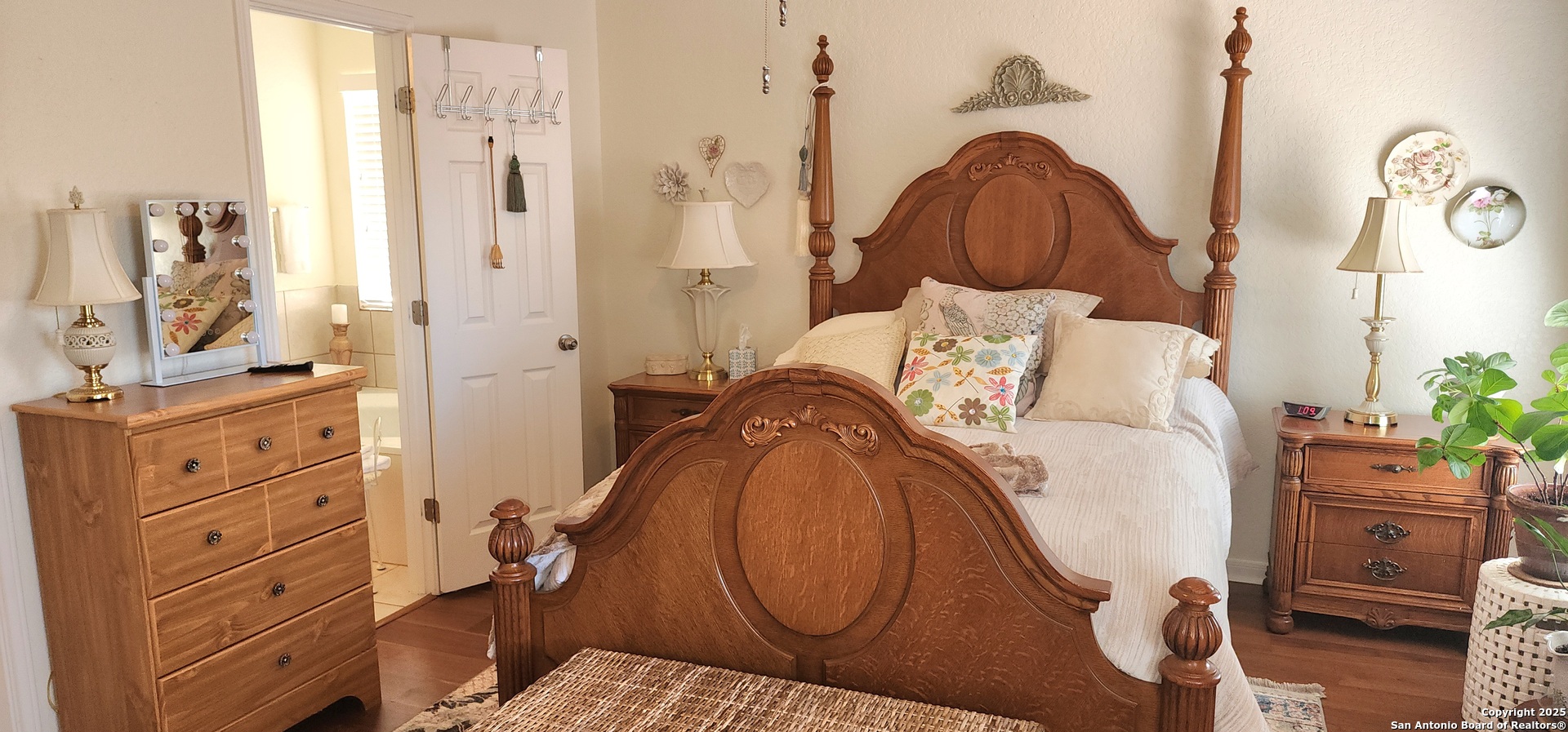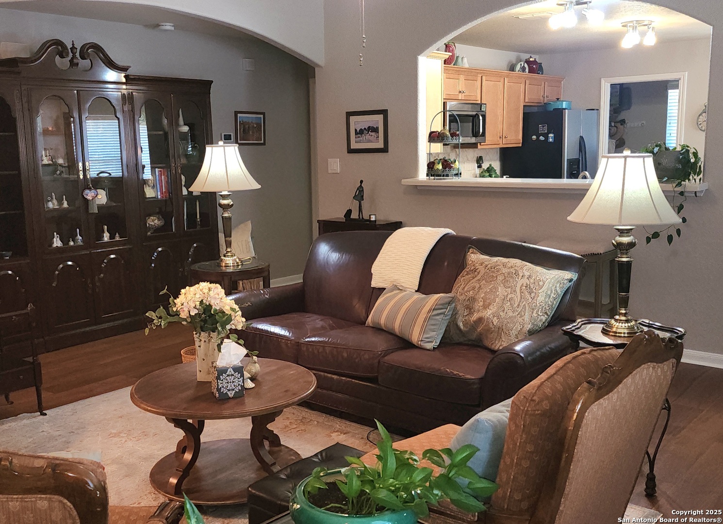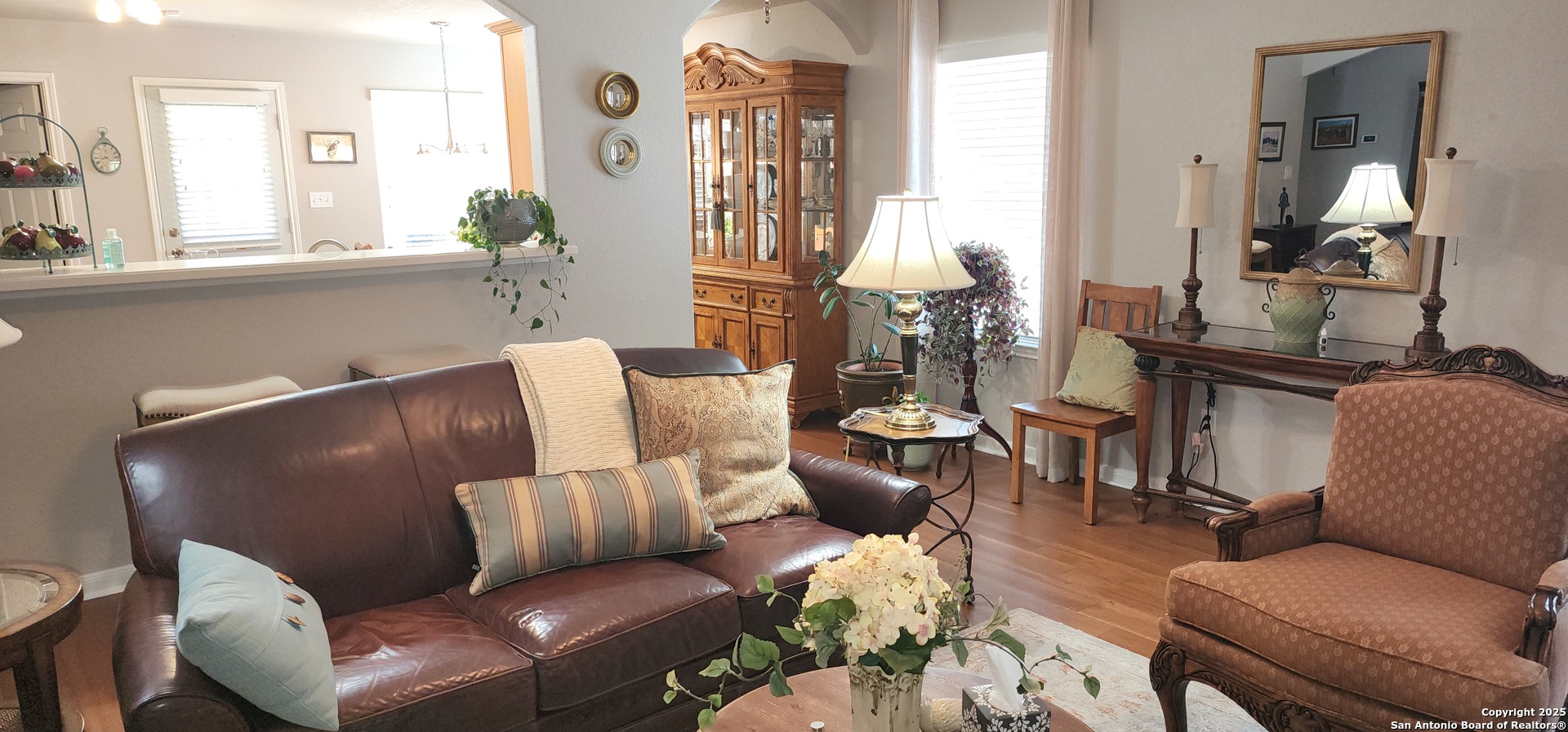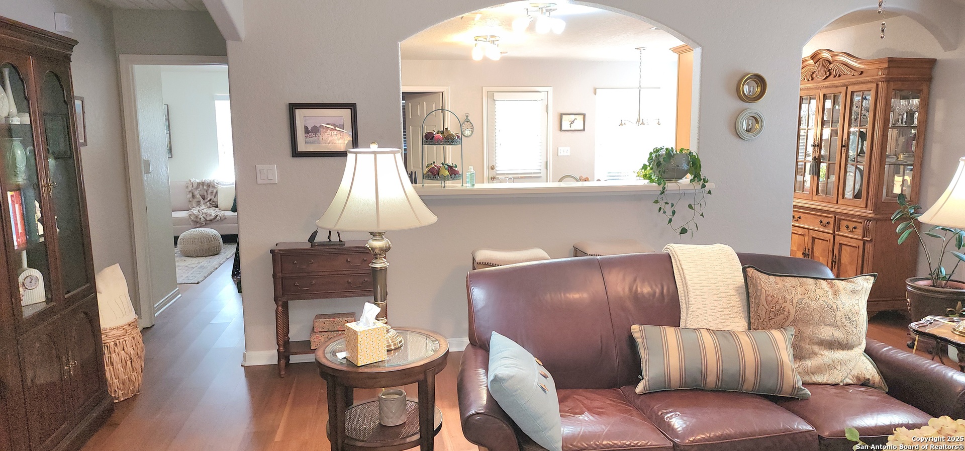 Beautiful maintained home in the desirable Royal Ridge community. Situated on a corner lot with low maintenance yard. The open floor plan includes a cozy living area and a well appointed kitchen. Wood flooring flows through the home with ceramic tile in wet areas. The split master offers privacy and features a walk in closet. Roof is approximately 8 years old. Recent upgrades in 2025 are: water heater, wood flooring and stove. 2023 air handler replaced. Conveniently located near Fort Sam Houston, Randolph AFB and shopping. Royal Ridge Elementary school is within walking distance.