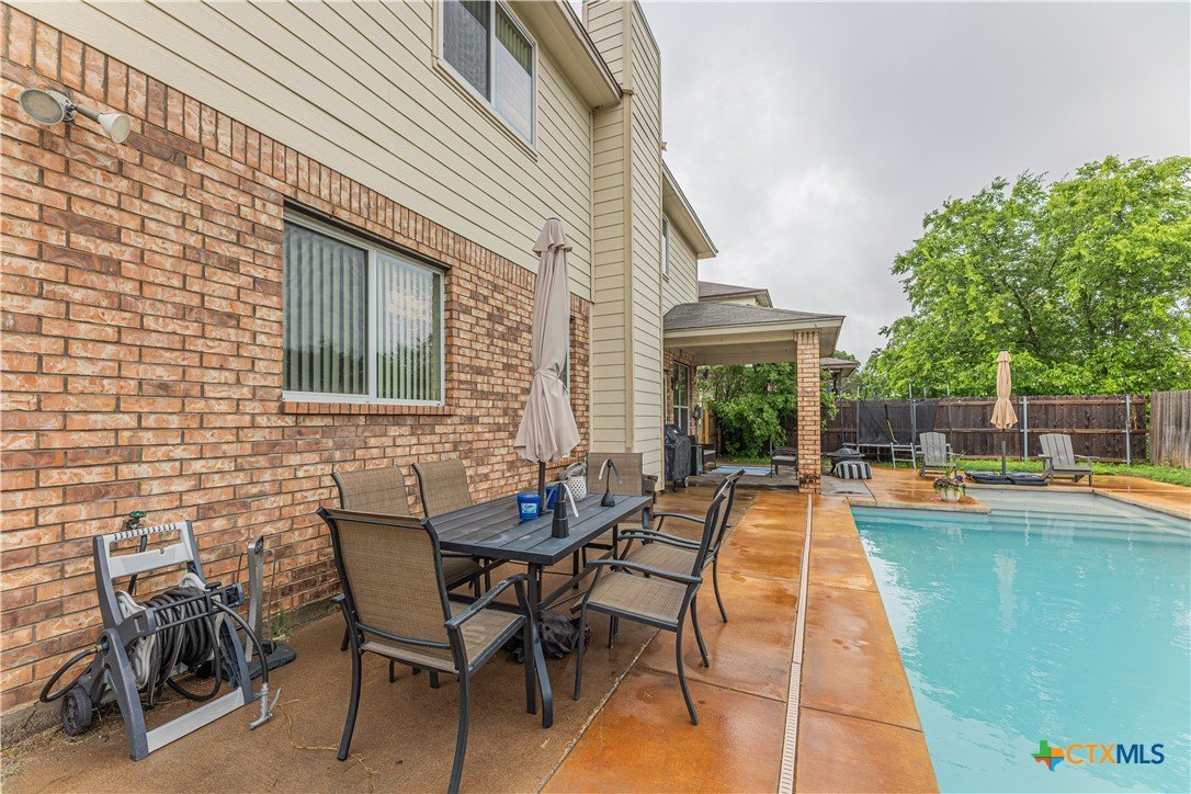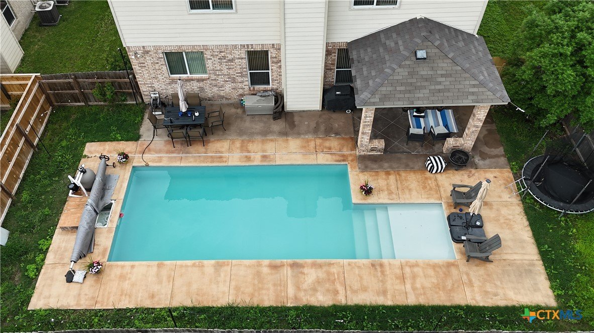 Tucked away in Saegert Ranch, this spacious two-story home offers a thoughtfully designed layout with room to live, gather, and unwind. Multiple living and dining areas create a natural flow for both everyday living and entertaining, while the upstairs loft provides a versatile second living space, game room, or retreat. The kitchen is the heart of the home, featuring generous prep space, an island, and a walk-in pantry, seamlessly connecting to casual and formal dining areas. A downstairs primary suite offers comfort and privacy, with additional bedrooms and living space upstairs for a well-balanced layout. Step outside to your own backyard escape, complete with an in-ground pool and covered patio—perfect for relaxing evenings or hosting friends and family. All set on a spacious lot in a convenient location near schools, shopping, and dining.